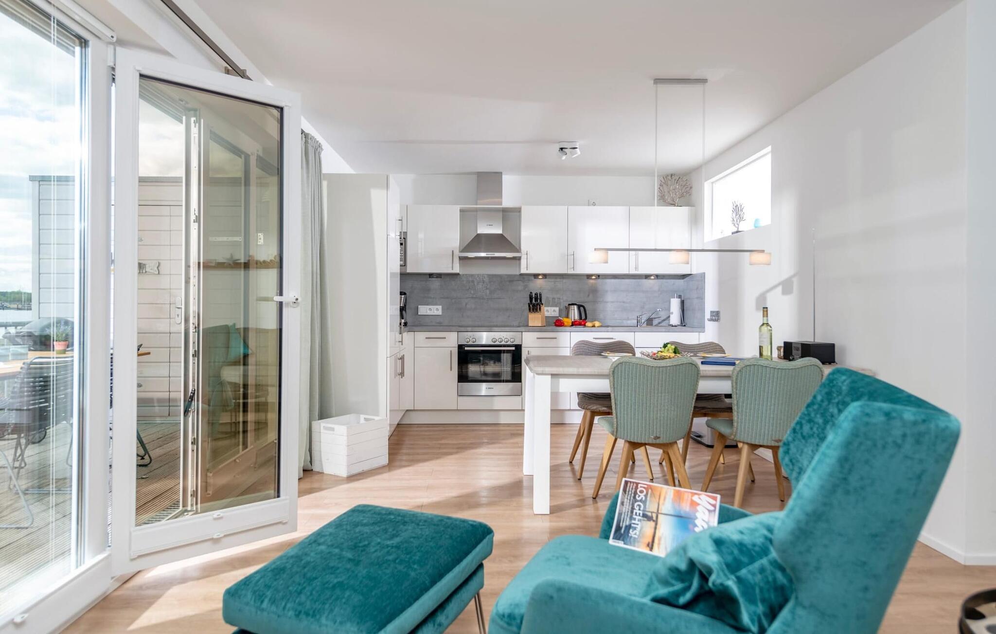 Im Urlaub ist Zeit für kreatives Kochen, die rundum ausgestattete Wohnküche lässt hierbei keine Wünsche offen. Frühstück direkt am Wasser für das pure Urlaubsgefühl.