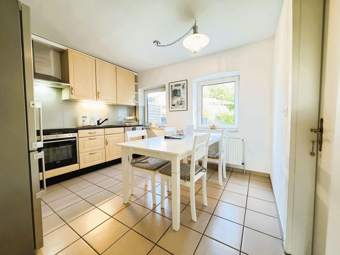 Die Wohnung erstreckt sich über rund 79 Quadratmeter und ist hell, freundlich und komfortabel eingerichtet. Im großzügigen Wohnbereich sorgen große Fenster für ein luftiges Raumgefühl. Zwei bequeme Sofas laden zu gemeinsamer Zeit (am Spielbrett oder vor dem TV) ein. Die Küche ist modern ausgestattet und bietet den Zugang zum privaten Garten mit Terrasse und Grill, sodass die Wege hier kurz sind.