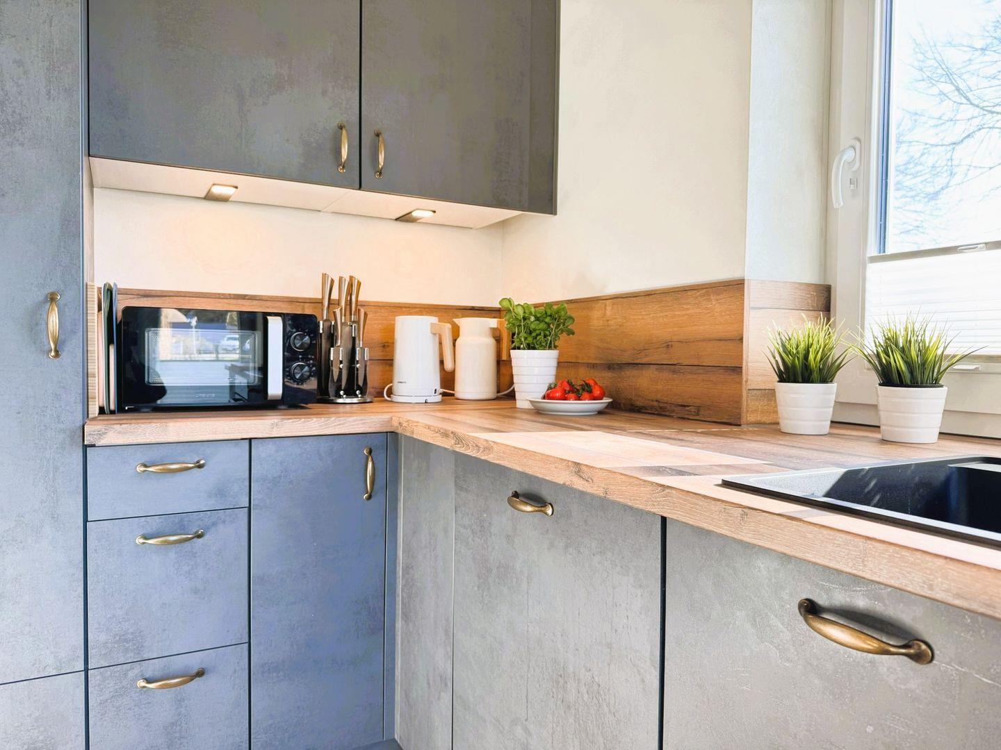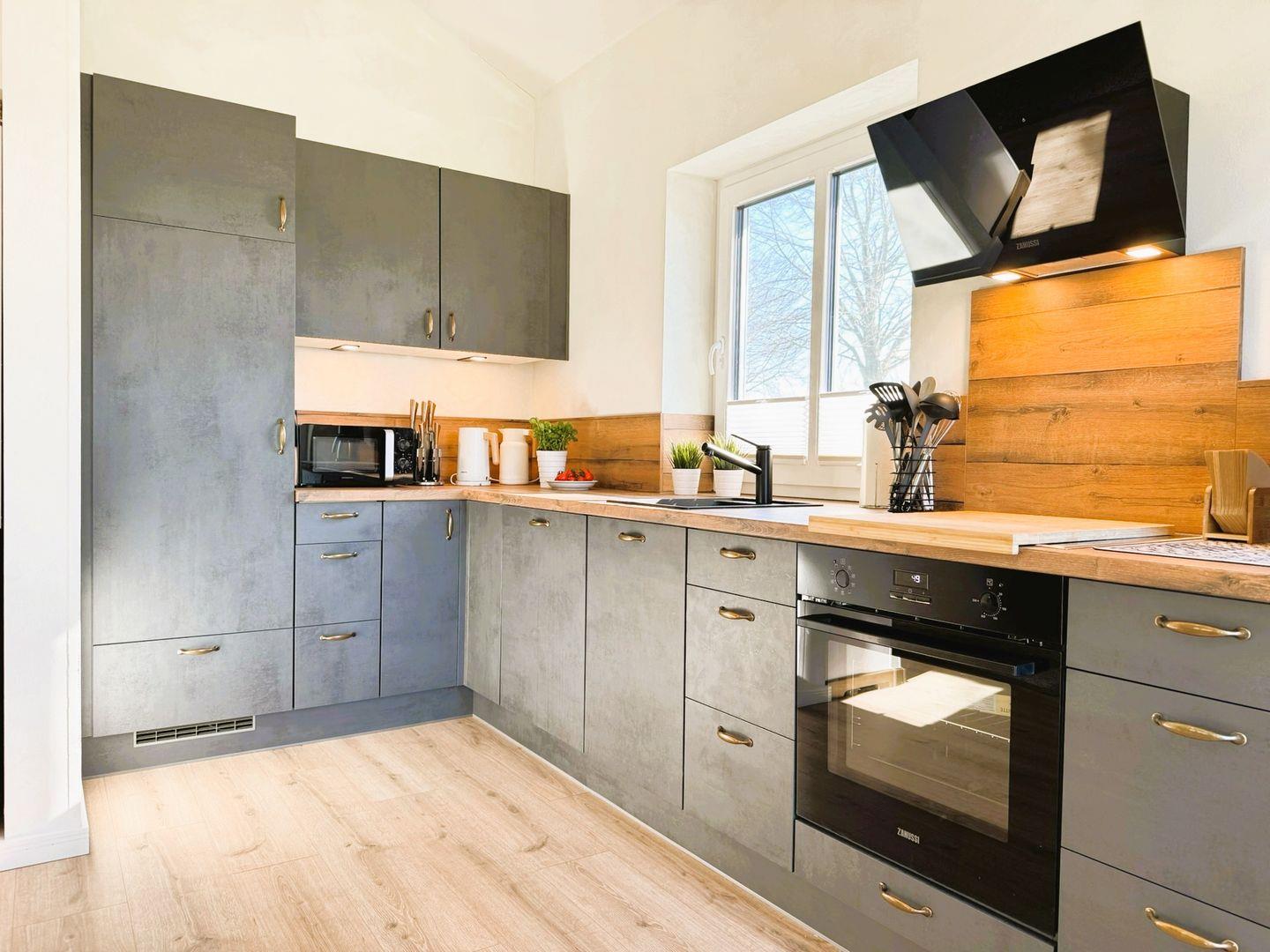 Die Küche verfügt über einen Geschirrspüler, eine Mikrowelle, einen Induktionsherd, Backofen, Kaffeemaschine, Wasserkocher, Waffeleisen, Raclette uvm.