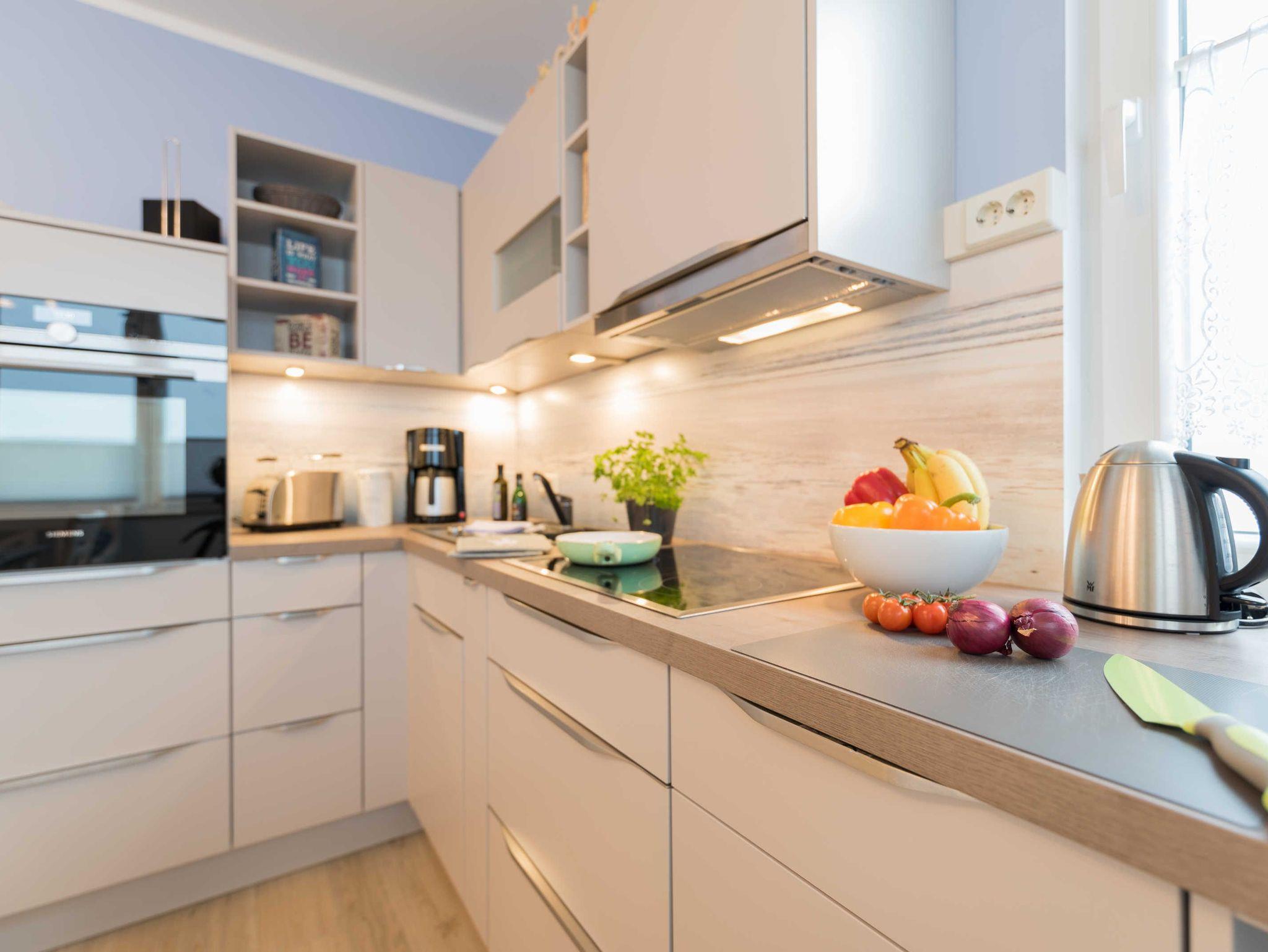 Die Wohnung ist komplett für bis zu 4 Personen ausgestattet und verfügt über eine angenehme Fußbodenheizung in allen Räumen. WLAN steht zur Verfügung.