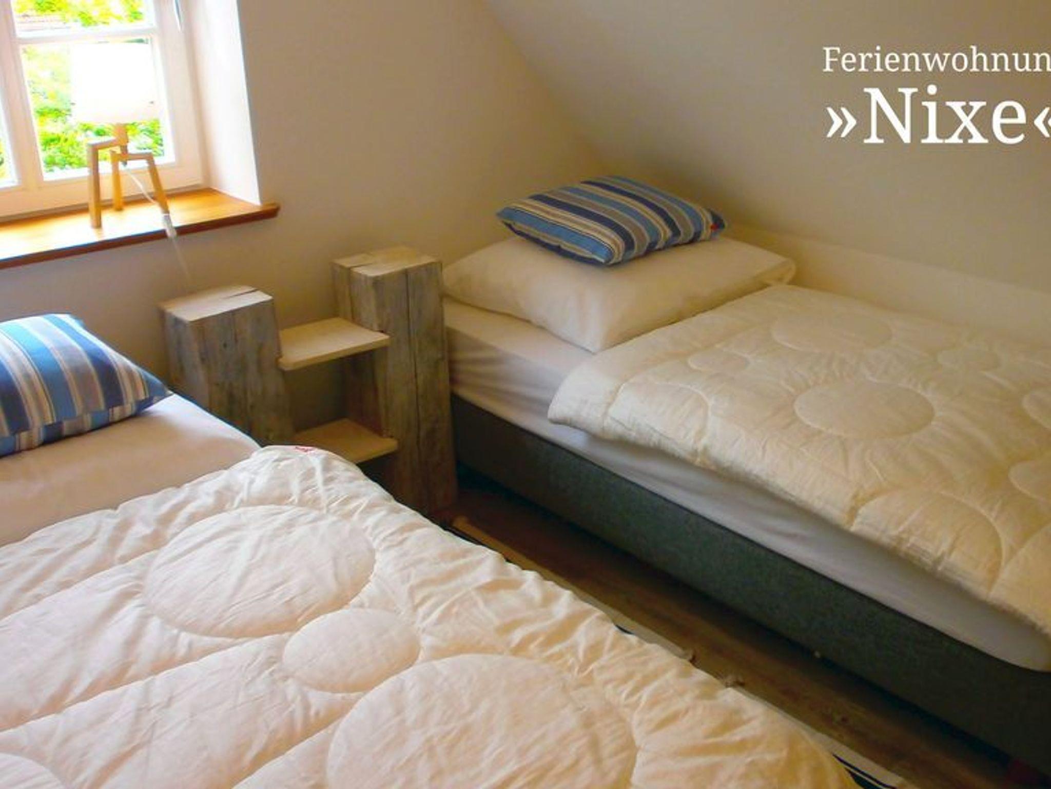Unsere Ferienwohnung NIXE befindet sich im Dachgeschoss und ist über die Außentreppe erreichbar. Wir haben unsere NIXE großzügig und individuell eingerichtet. Sie finden einen gemütlichen Wohn- und Essbereich, eine voll ausgestattete Küche, zwei Schlafzimmer und ein großes Bad mit Wanne, Dusche und Sauna. Ein wunderschön gestaltetes Wohnzimmer mit Schlafcouch, Essecke, Kamin und Flachbild-Sat-TV lädt zum Verweilen ein. Die gesamte Wohnung ist mit WLAN ausgestattet. Die moderne Küche ist mit Spülmaschine, Cerankochfeld, Backofen, Mikrowelle, Kaffee- und Küchenmaschinen ausgestattet und lässt keine Wünsche offen. Unsere Unterkunft ist für Monteure nicht geeignet. Handtücher und Bettwäsche bitten wir mitzubringen. Für Haustiere berechnen wir pro Nacht EUR 20,00.