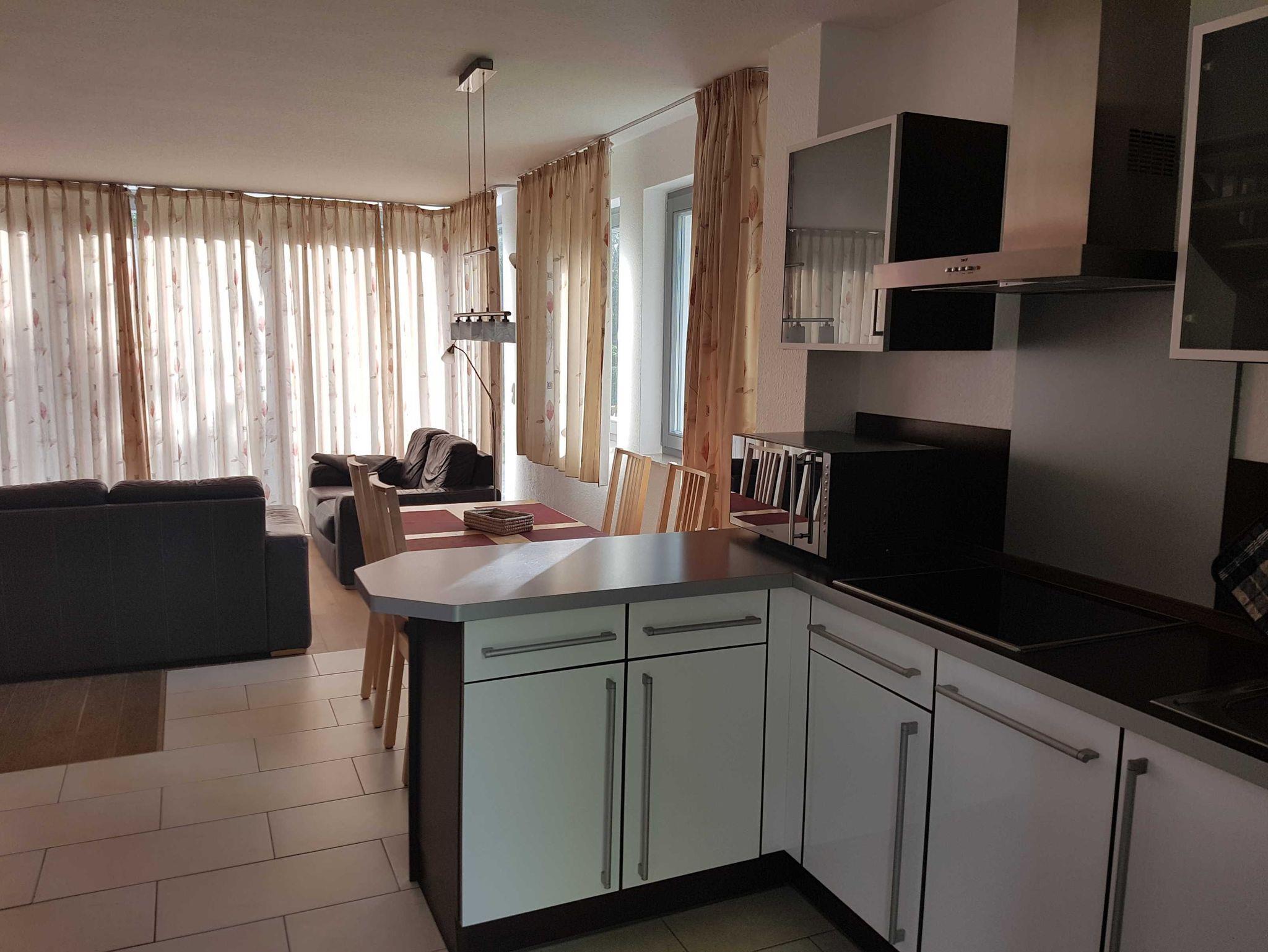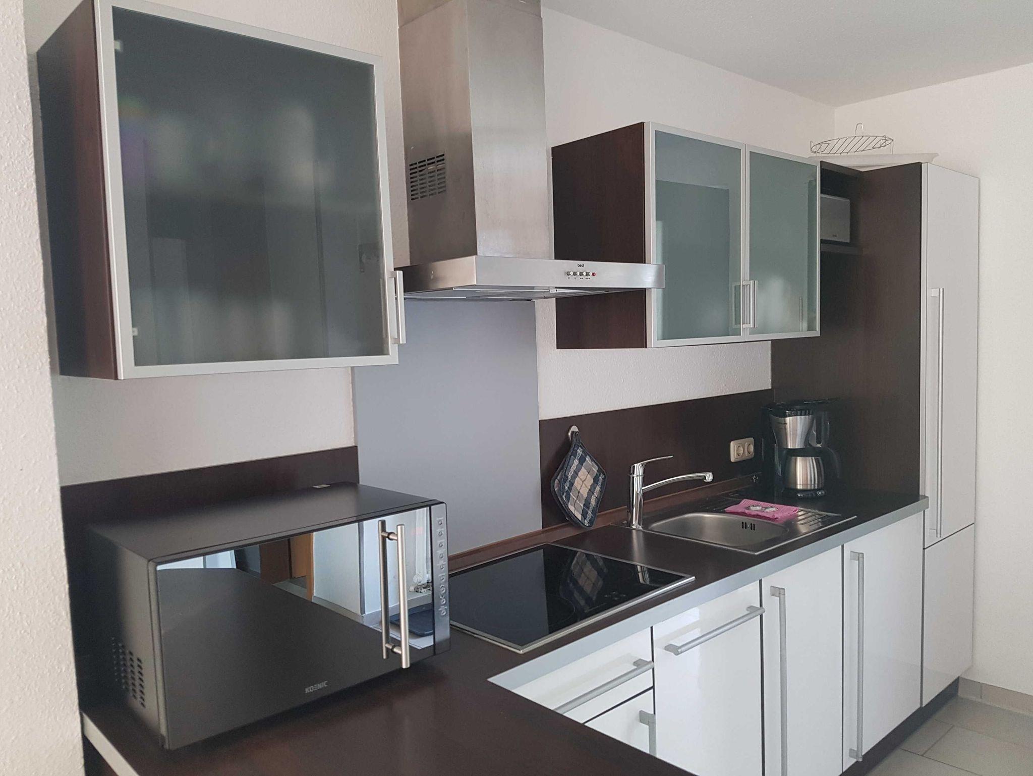 Geschirrspüler, Cerankochfeld, Kühlschrank, Mikrowelle, Toaster und sogar ein moderner Airfryer (Heißluftfritteuse) für schnelle Snacks oder knusprige Pommes ganz ohne Fett.