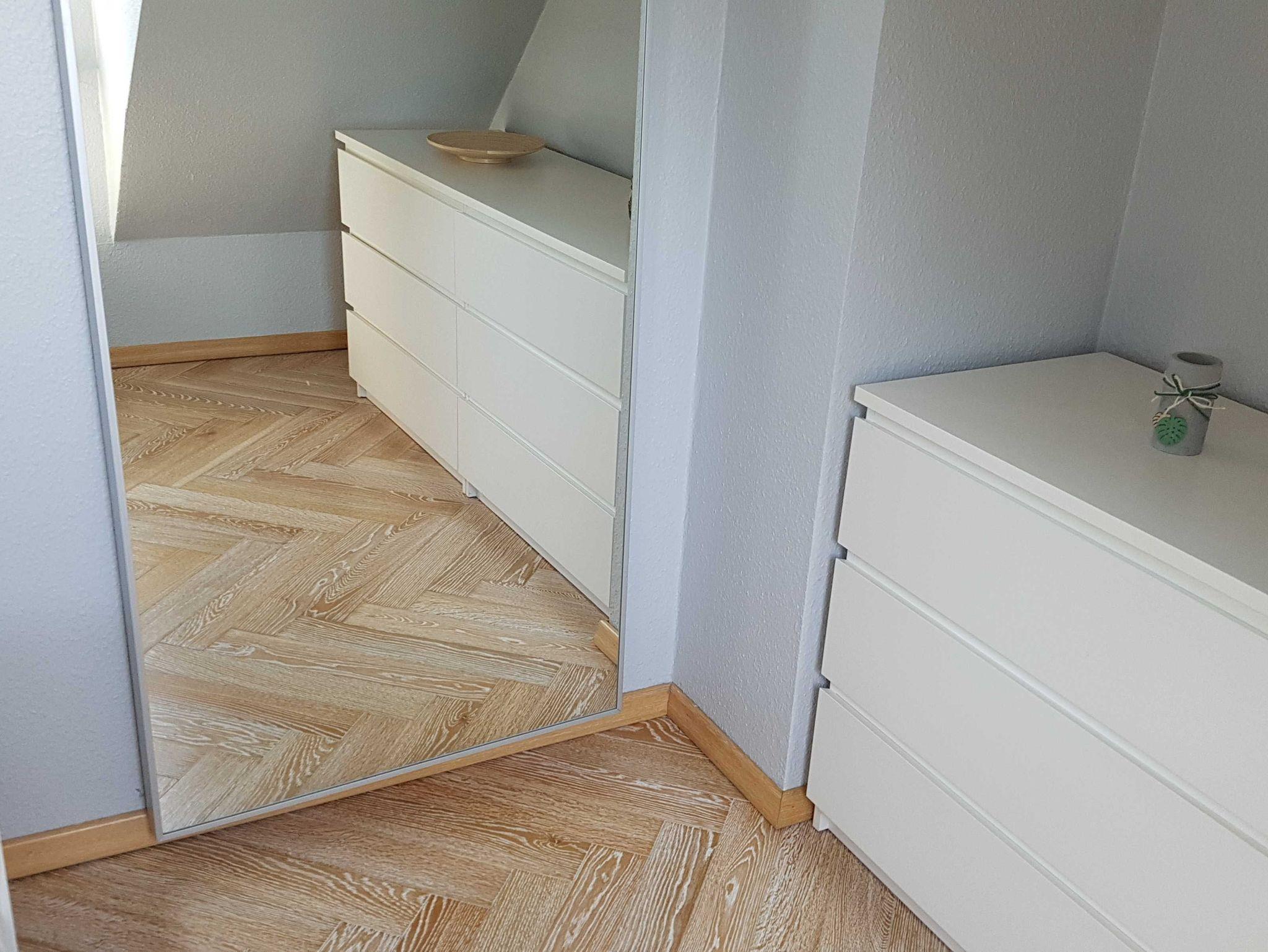 Außerdem findet ihr hier das Badezimmer mit Dusche und WC.