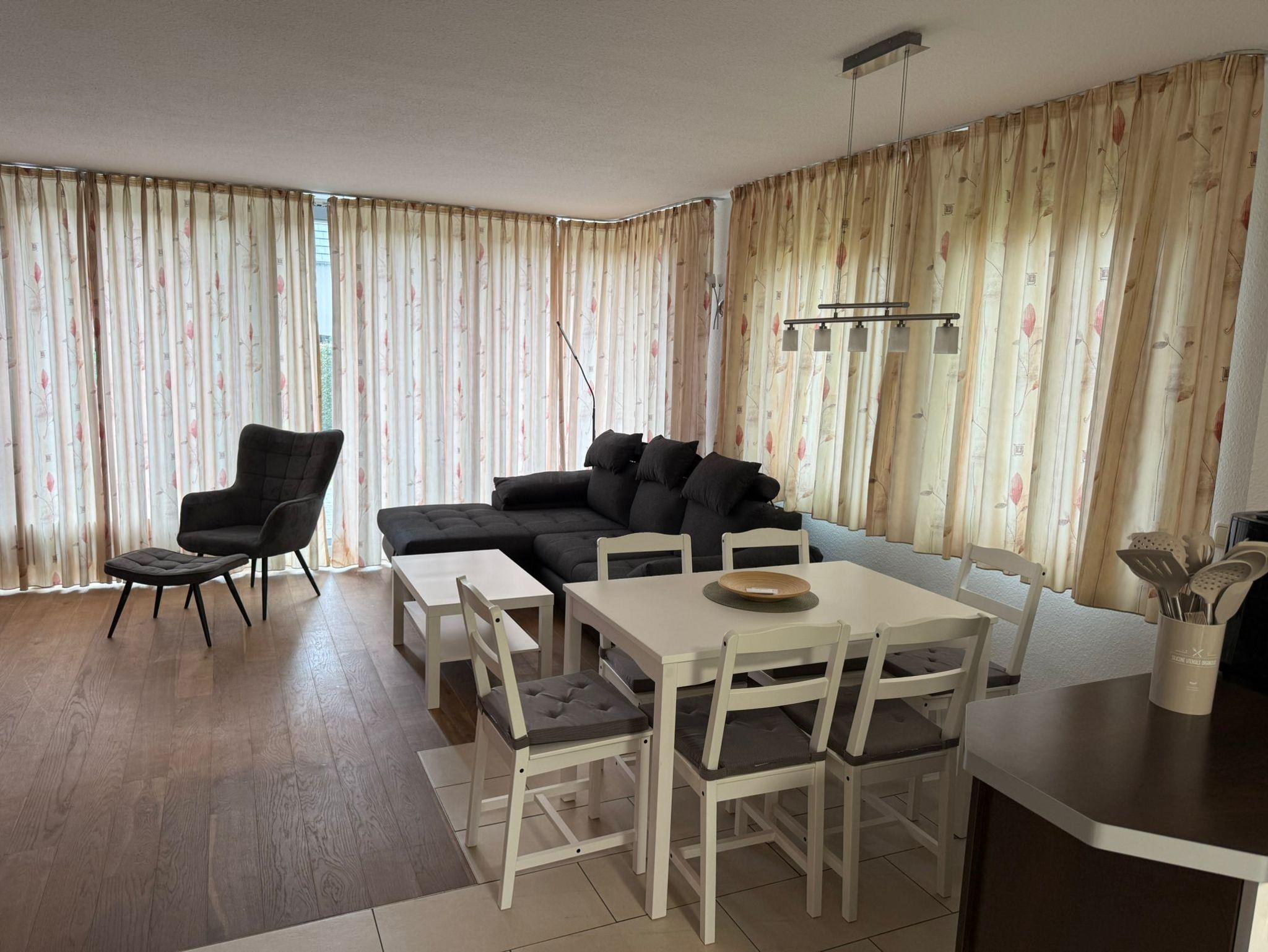 Vom Wohnzimmer gelangt ihr direkt auf die Terrasse mit kleinem Garten perfekt für Frühstück in der Sonne oder einen gemütlichen Abend.