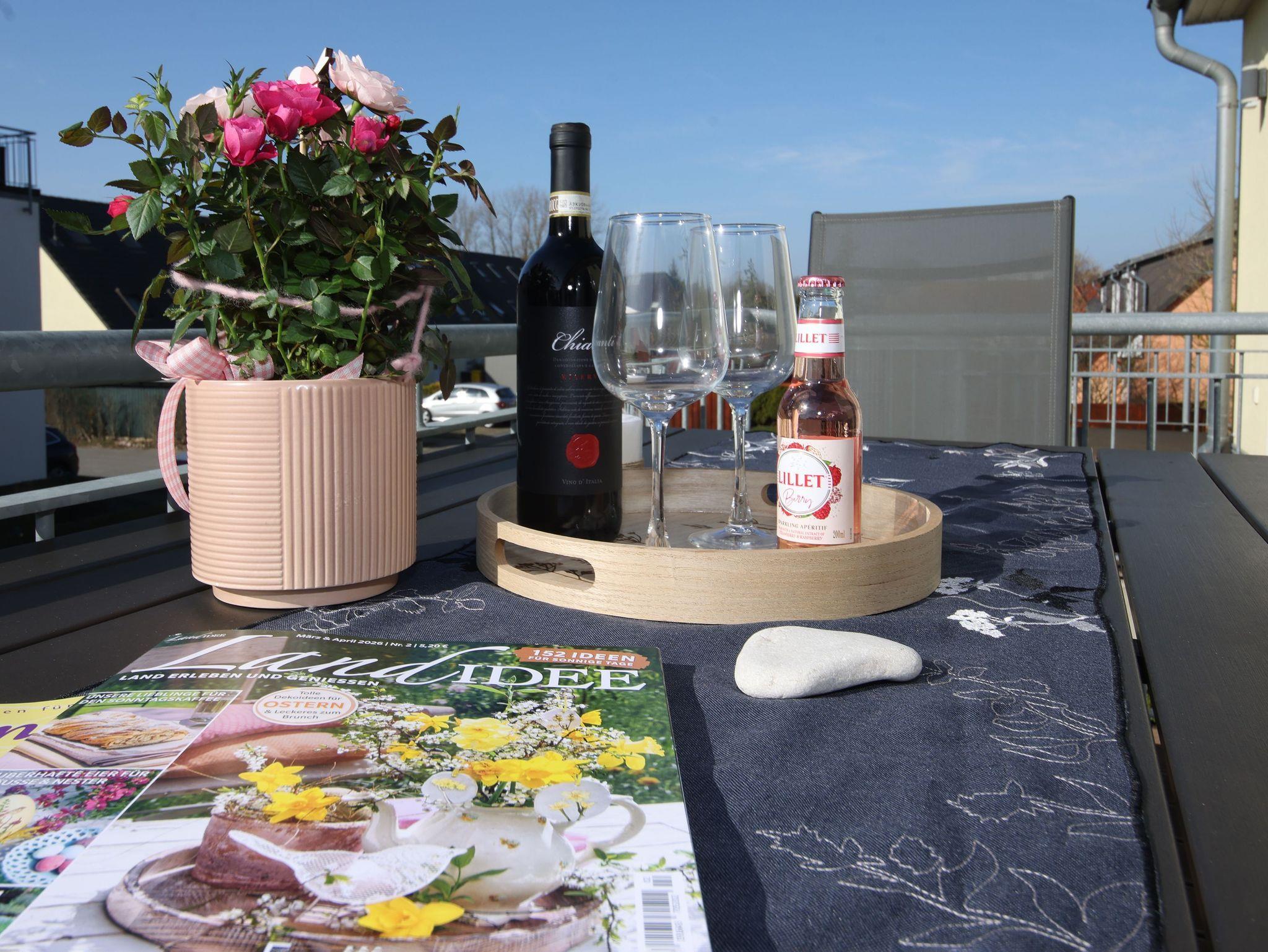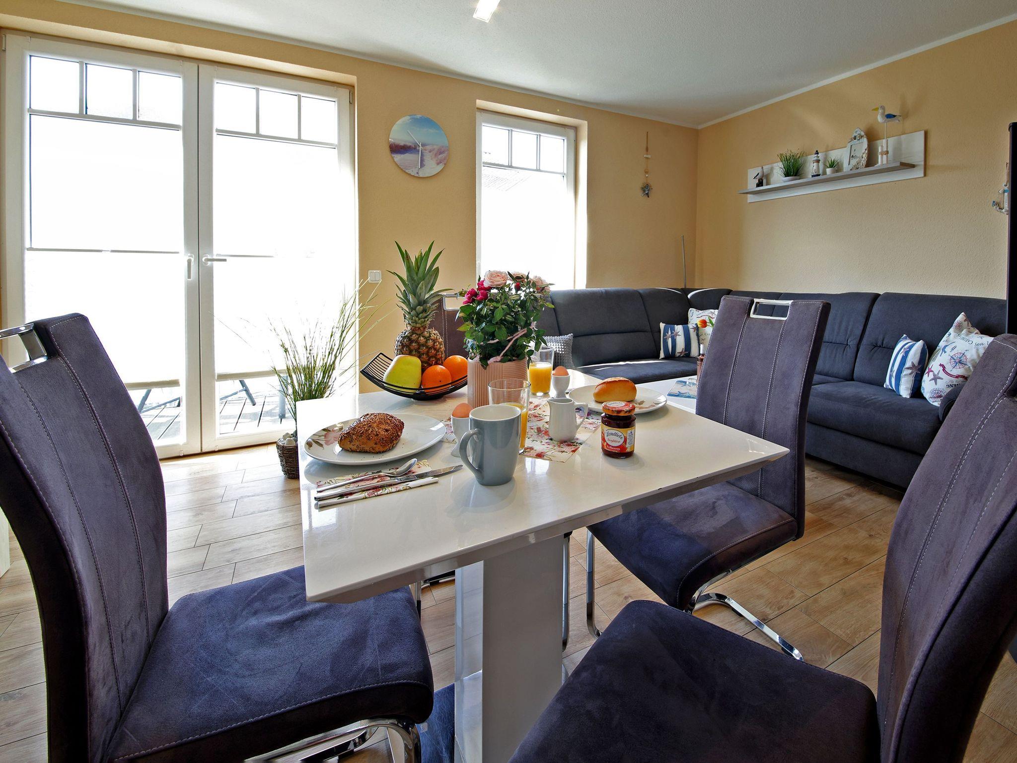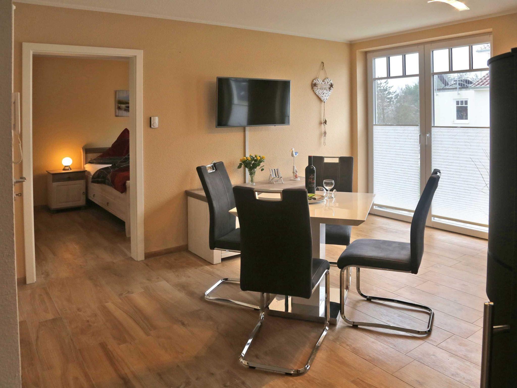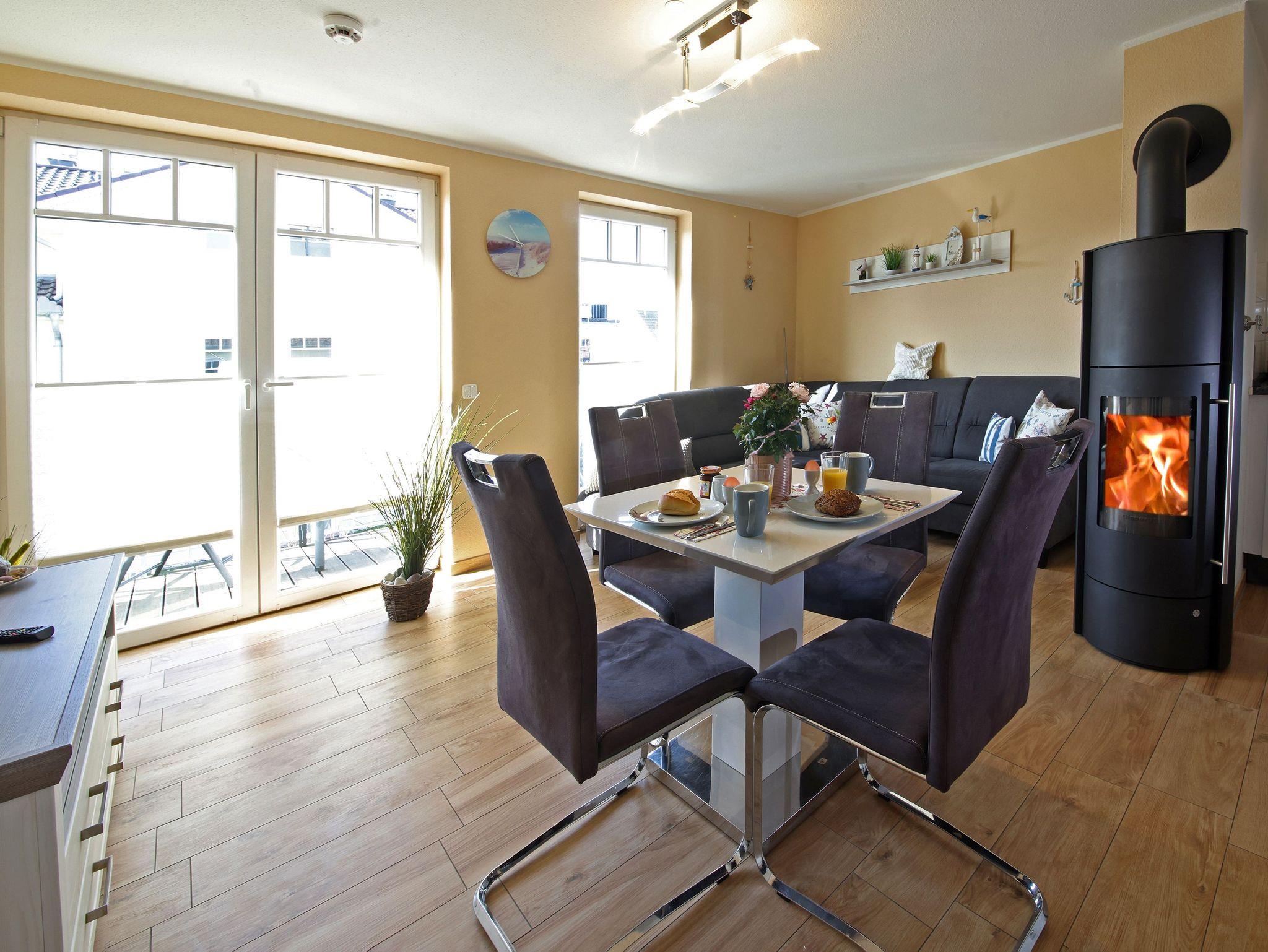 Modernes Appartement Bernstein mit Kamin und Balkon, nur 250 m vom Ostseestrand entfernt, tierfreundlich und familiengerecht.