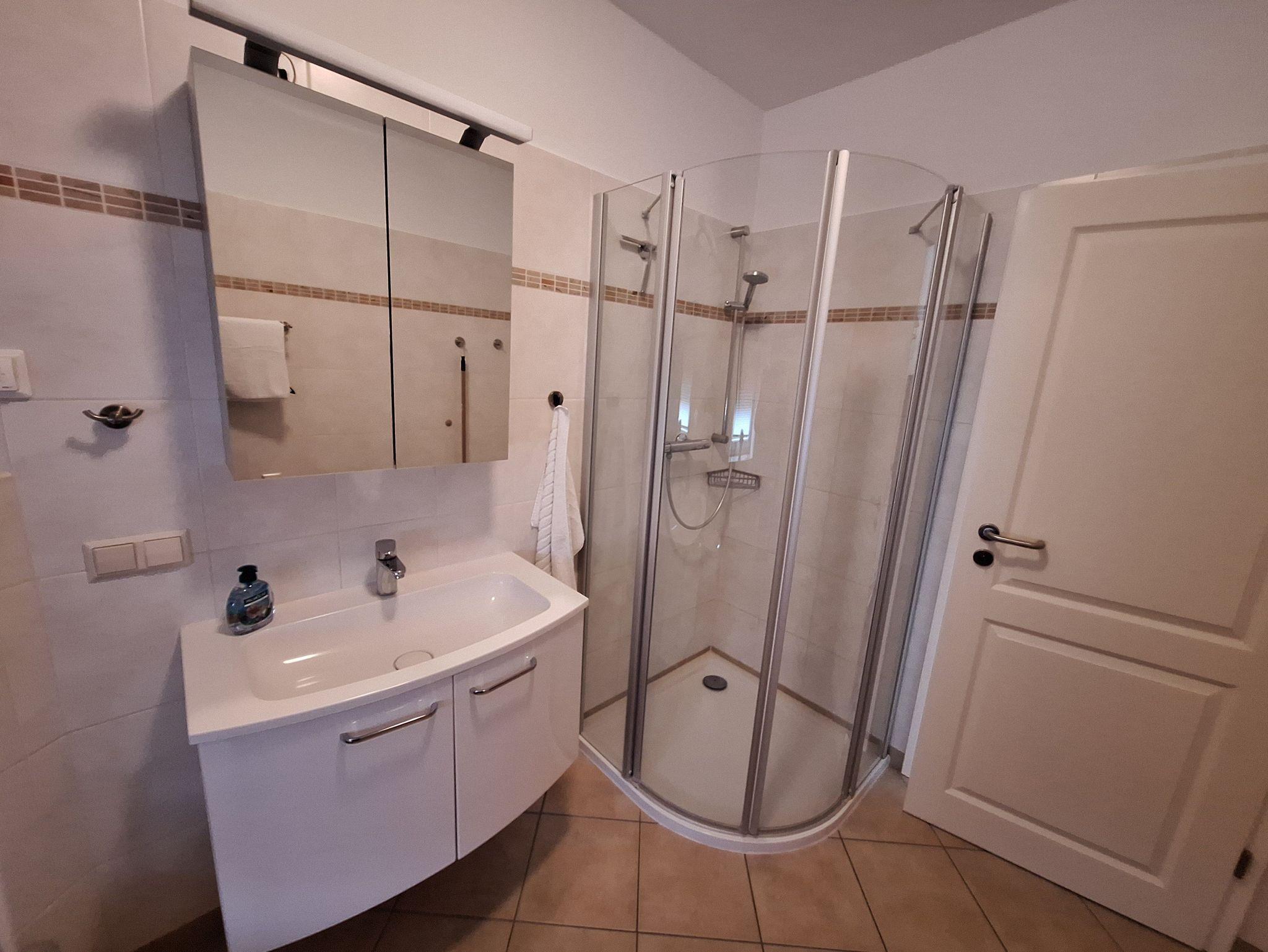 Das geräumige Tageslicht-Bad verfügt über Dusche, WC, Waschbecken, Haartrockner etc. Für Kleinkinder sind ein Reisebettchen und ein Hochstuhl vorhanden. Gartenmöbel und Grill stehen zur Verfügung und laden zur Nutzung auf der sonnigen Terrasse ein.