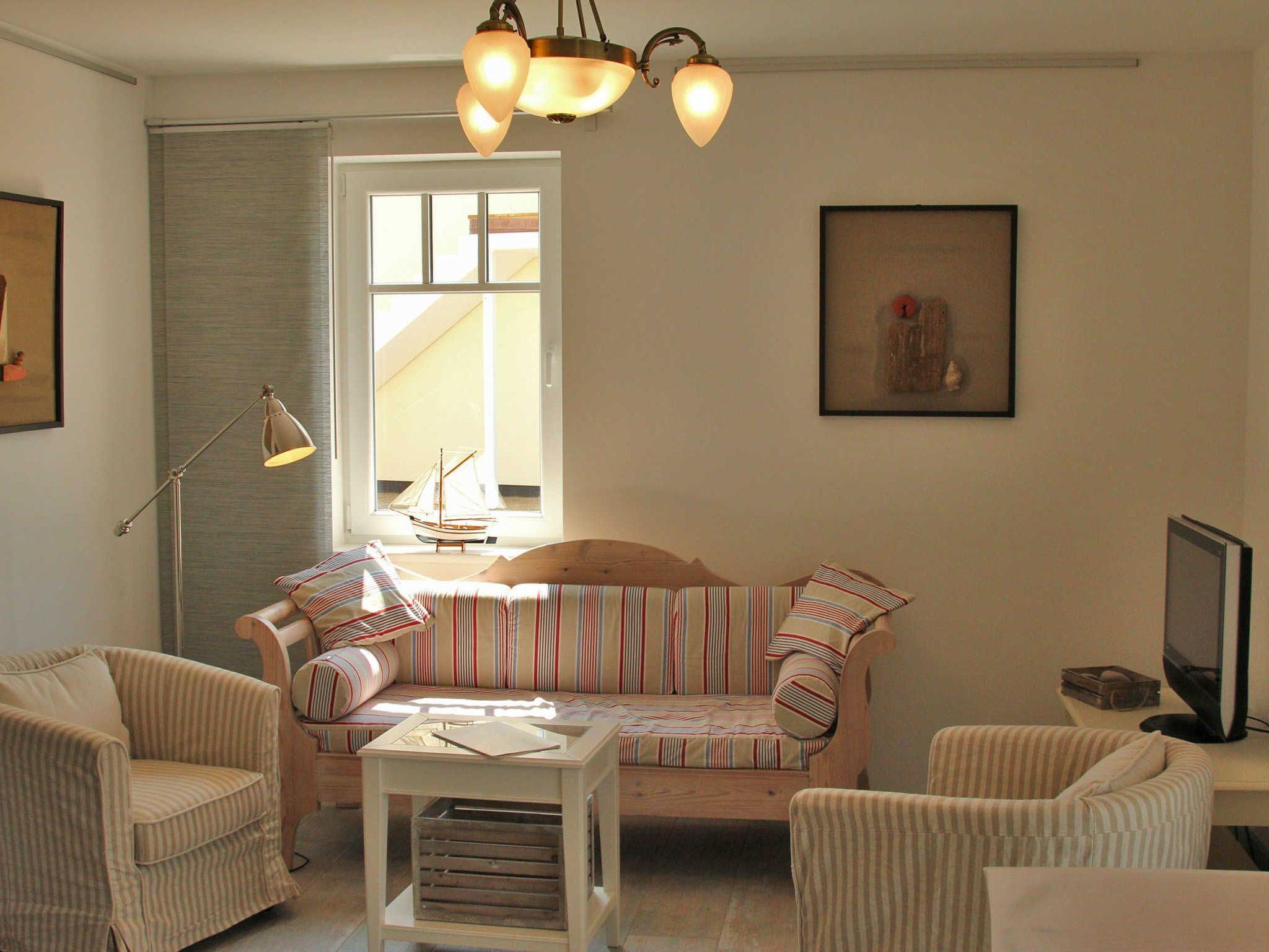 Die Bilder an den Wänden stammen von einem norddeutschen Künstler und unterstreichen den maritimen Charakter der Wohnung.