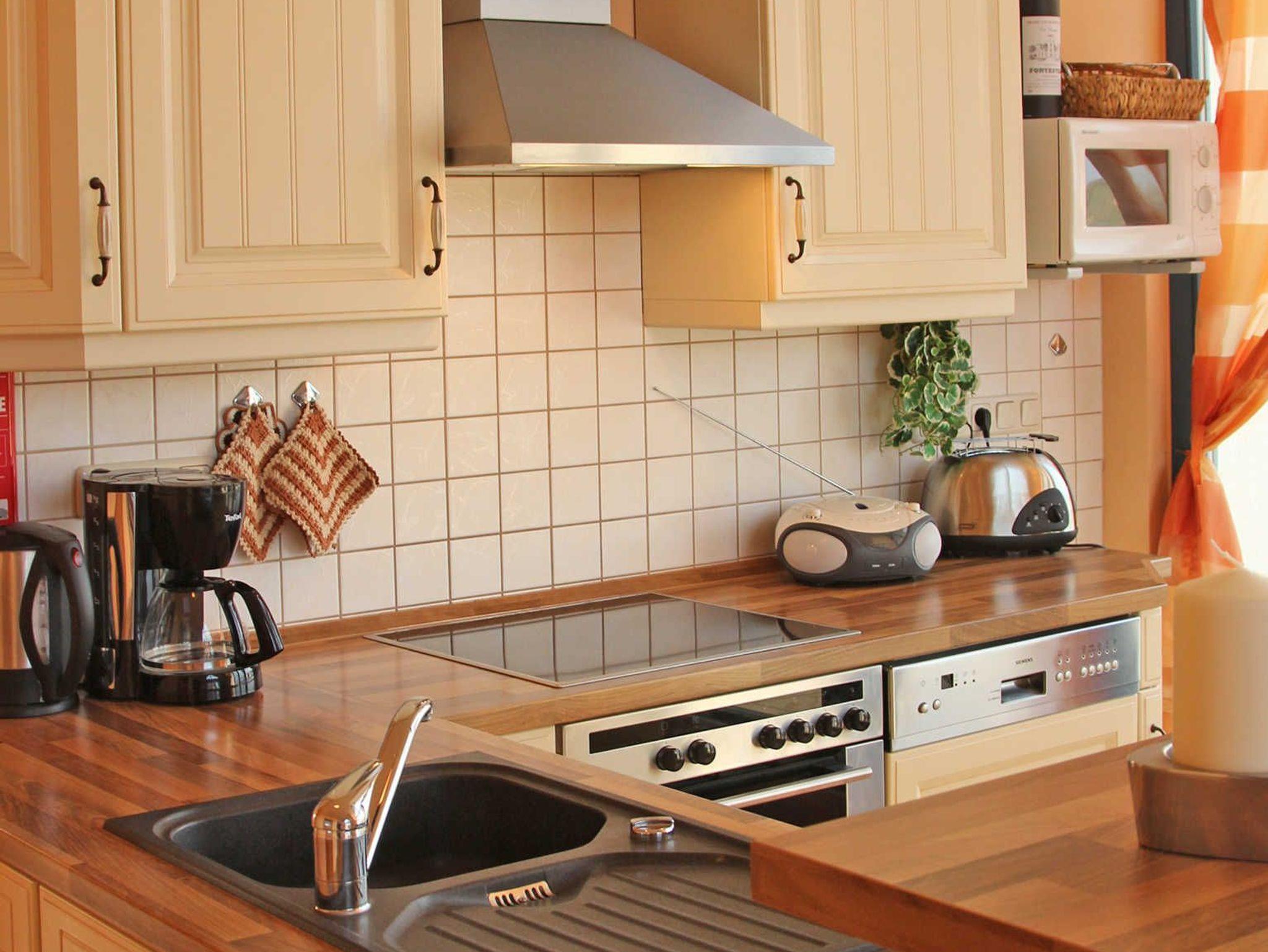 Der offen gestaltete Wohnbereich verfügt über eine hochwertige Einbauküche mit Geschirrspüler, Herd mit Cerankochfeld, Backofen, Wasserkocher, Toaster, Kaffeemaschine sowie Kühlschrank mit Gefriermöglichkeit ? ideal für eine entspannte Selbstversorgung.
