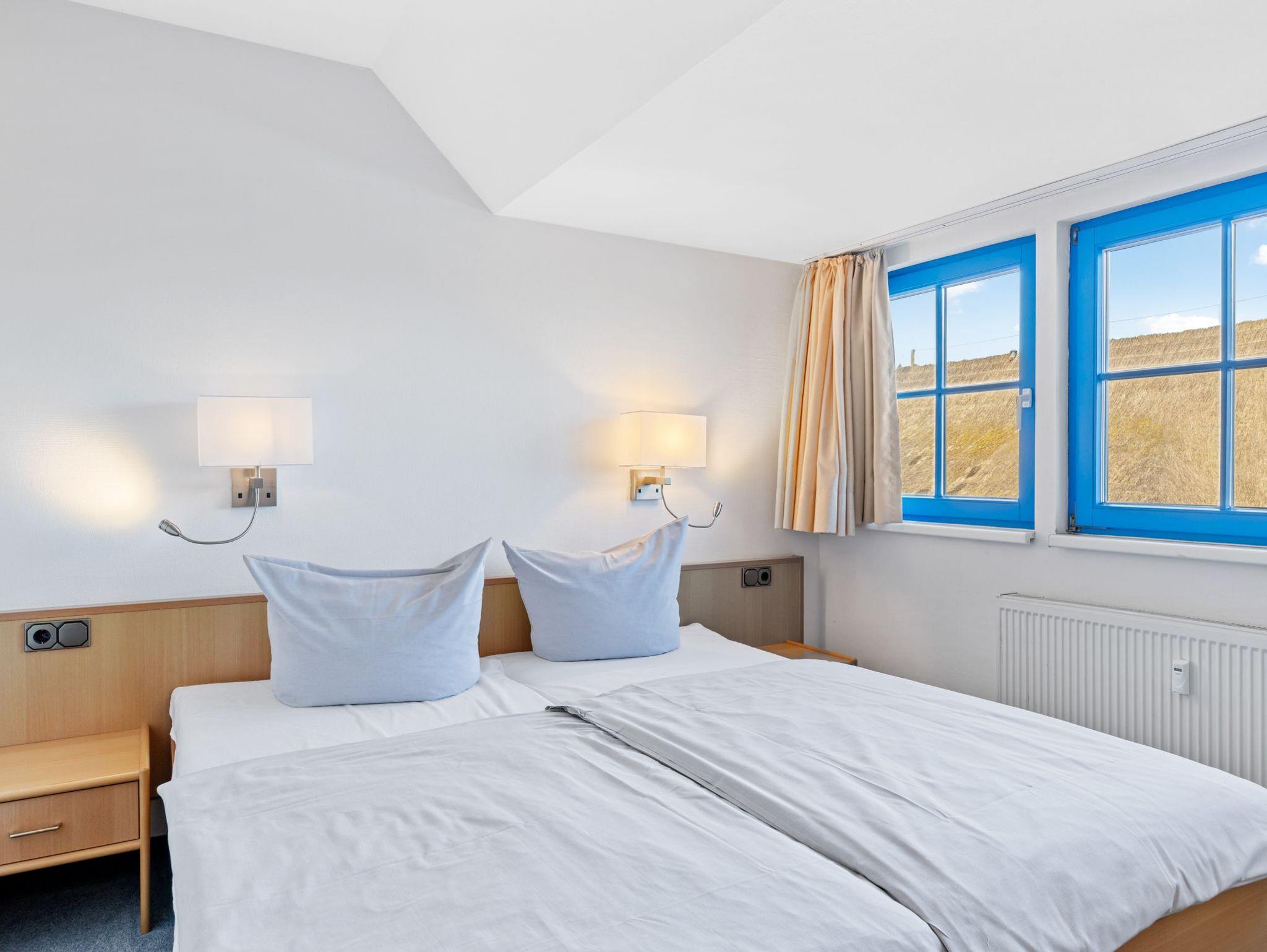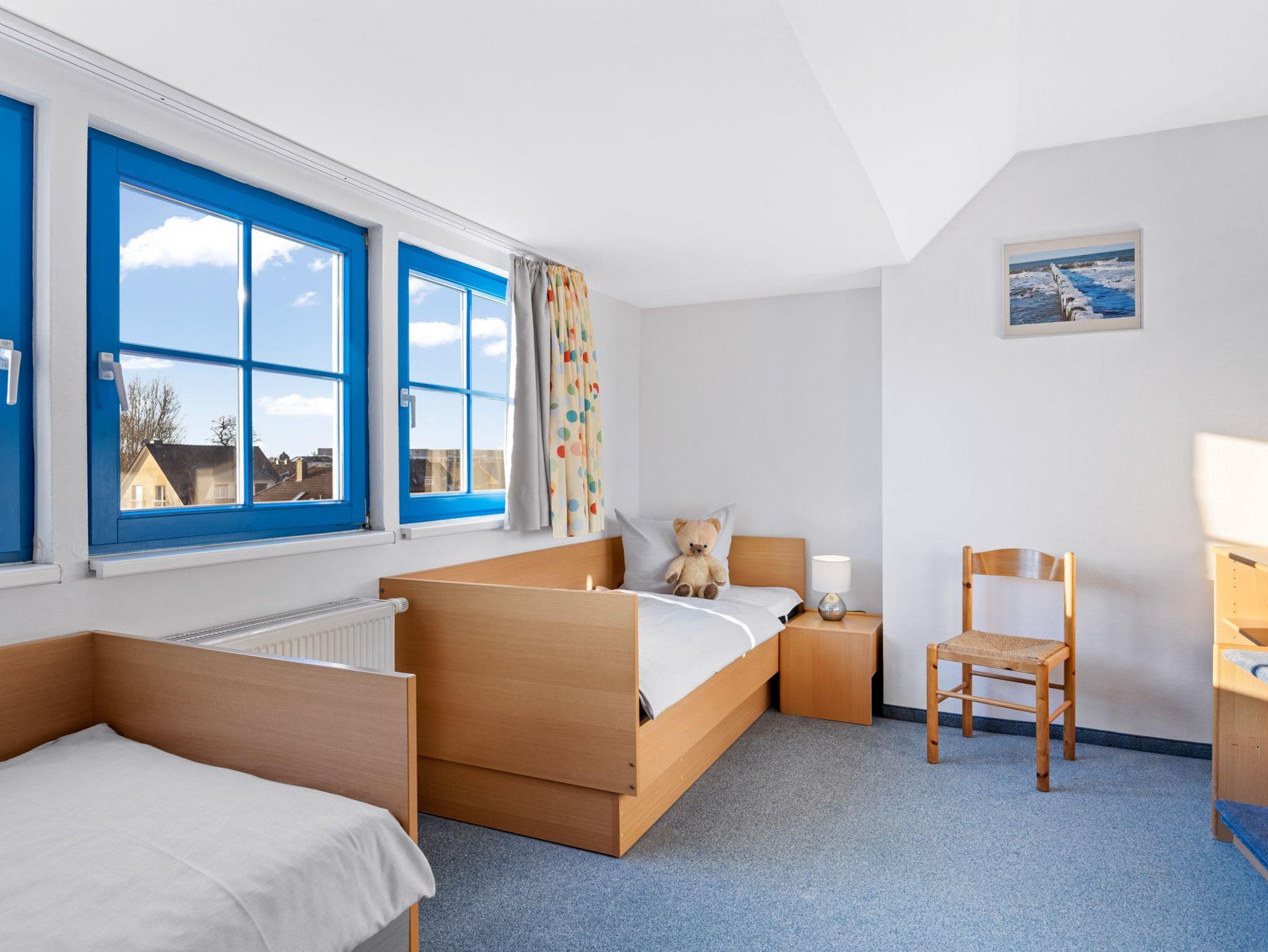 Im oberen Bereich der Wohnung: Schlafzimmer 2 mit 2 Einzelbetten und Kleiderschrank sowie Schlafzimmer 3 mit Doppelbett (1,80 x 2,00m) und Kleiderschrank. Alle Schlafzimmer verfügen über gute Verdunklungsmöglichkeiten.