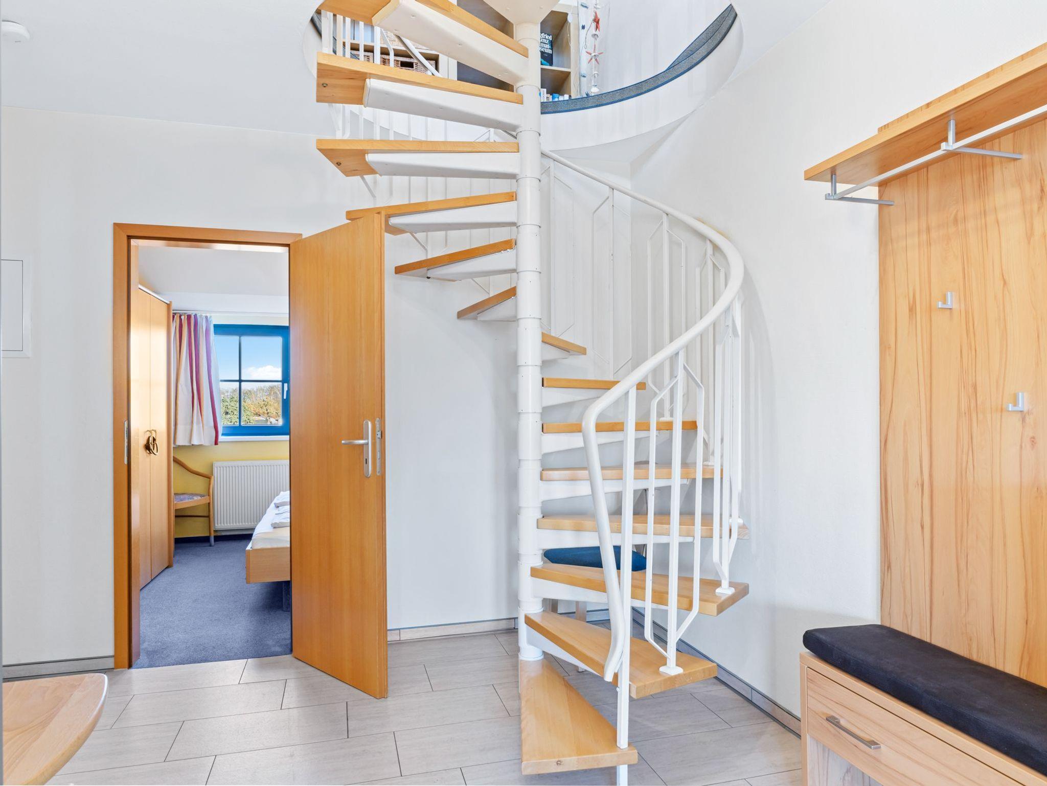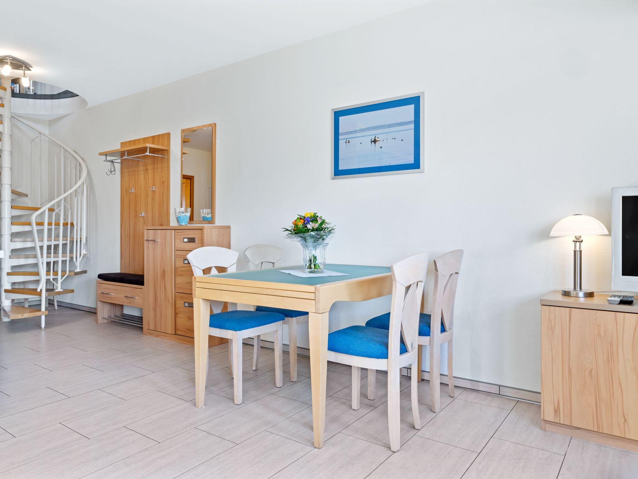 Ferienwohnung Seeschwalbe: drei separate Schlafzimmer auf zwei Etagen, großzügiger und gemütlicher Wohn- Essbereich, Bad mit Dusche und WC.