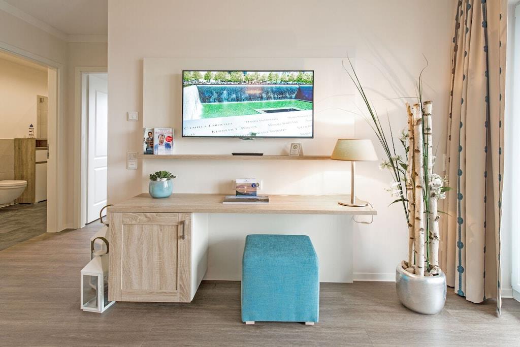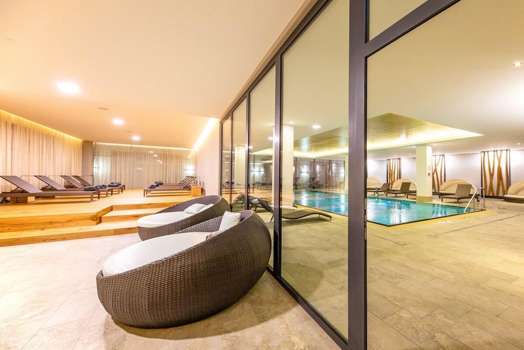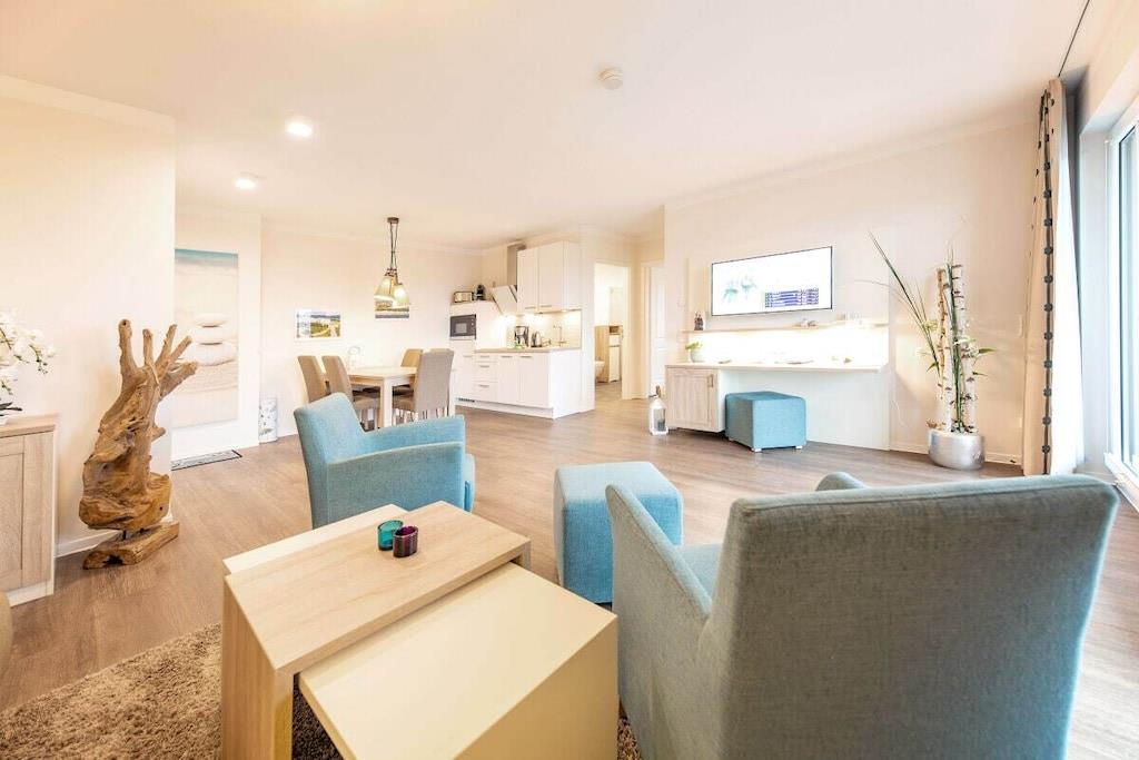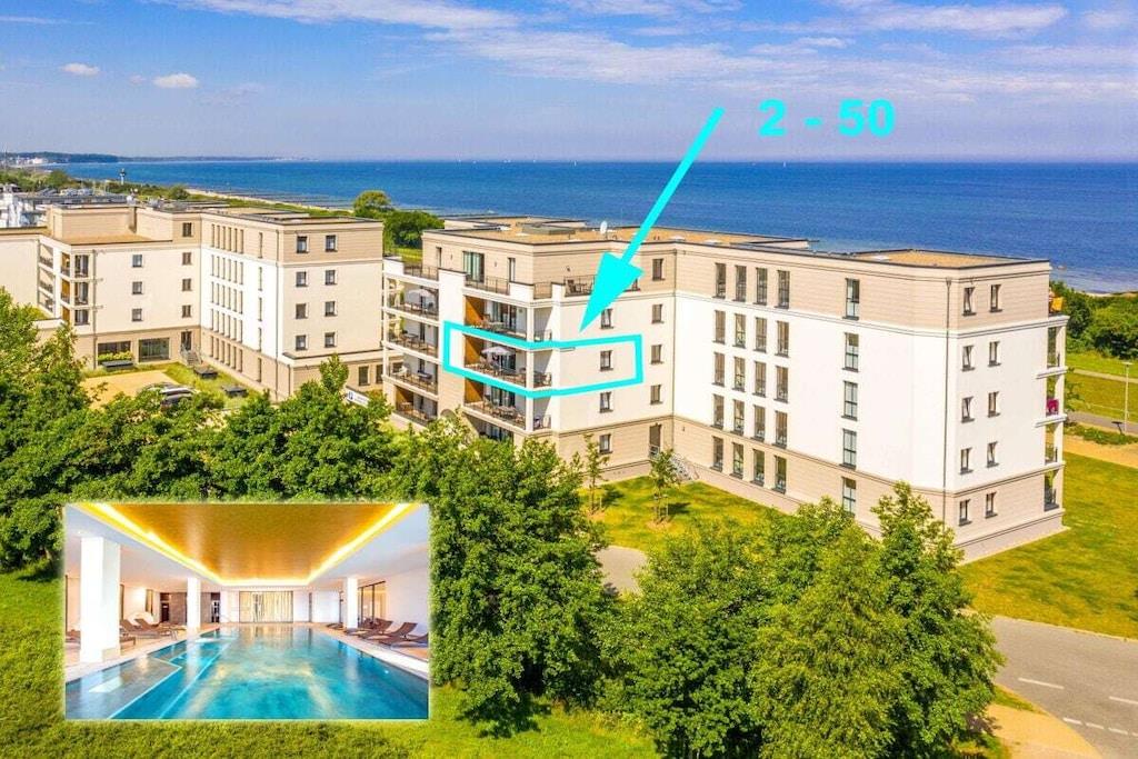 Modernes Nichtraucher-Apartment mit Balkon und Ostseeblick, inklusive Wellnessbereich mit Pool und Sauna.