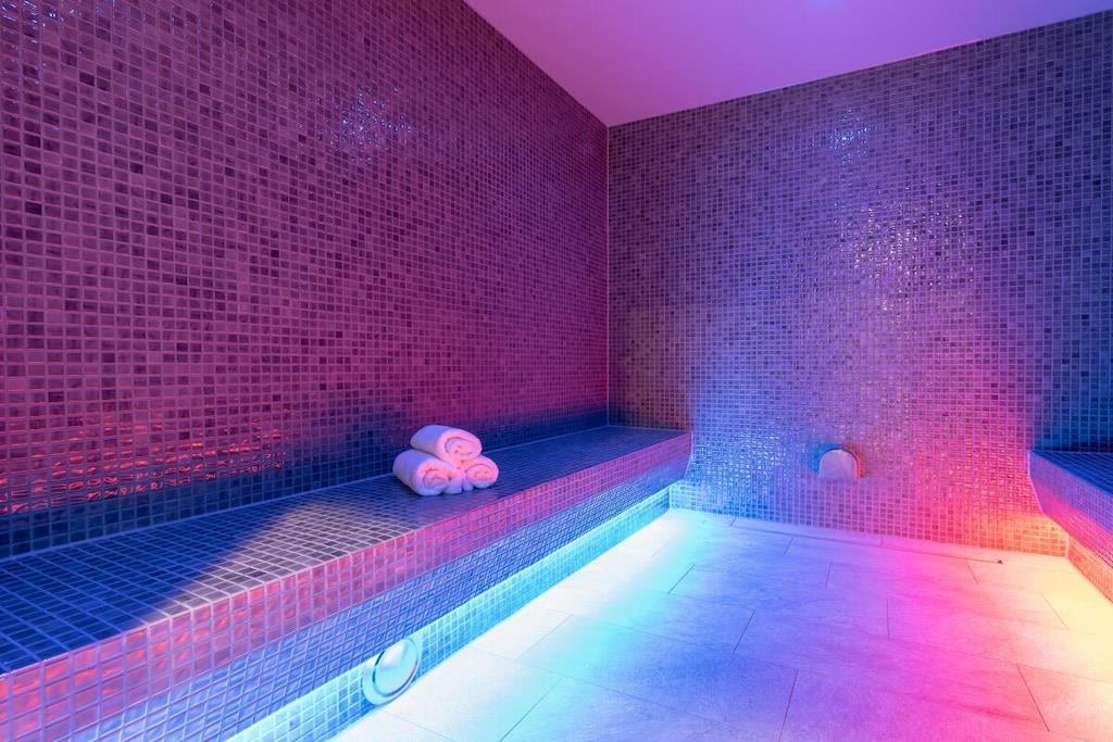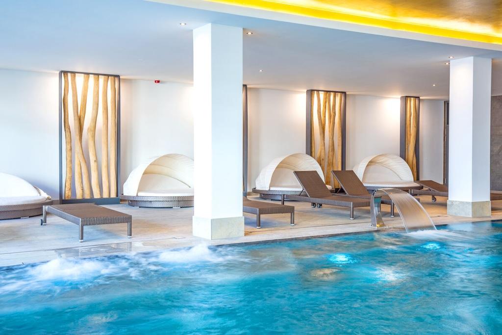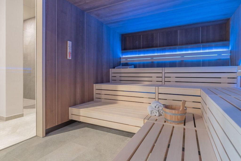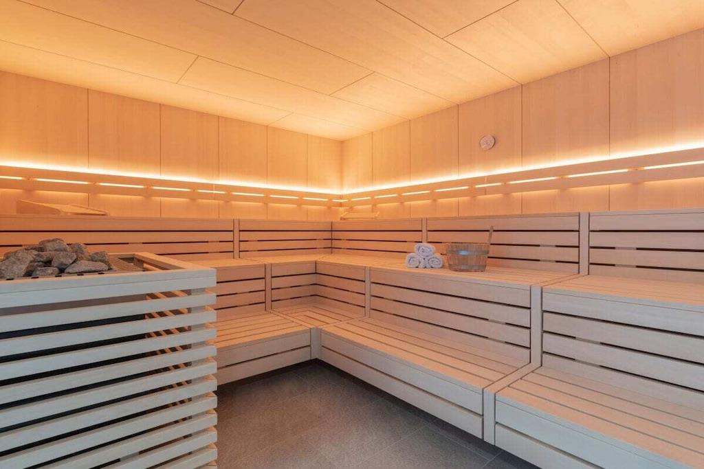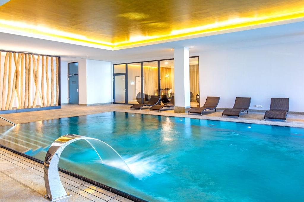 Modernes Nichtraucher-Apartment mit Balkon und Ostseeblick, inklusive Wellnessbereich mit Pool und Sauna.
