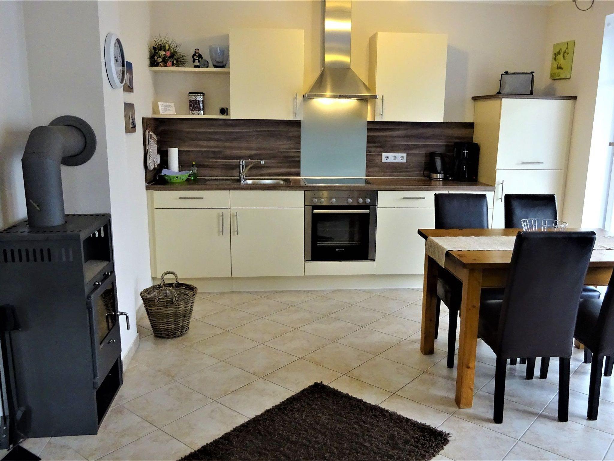 Die nur ca. 150 m vom Badestrand entfernte, gemütliche Erdgeschosswohnung wurde 2011 errichtet. Sie bietet Platz für max. vier Erwachsene und ein Kind (bis drei Jahre) und verfügt neben einer voll möblierten Terrasse auch über einen Garten. Durch die rückwärtige Lage in einer Sackgasse sind Kinder hier besonders geschützt. Genießen Sie die moderne und komfortable Ausstattung im geschmackvollen Wohnzimmer mit offener Wohnküche. Die hochwertige Küche ist umfangreich ausgestattet. Das geräumige Schlafzimmer verfügt über ein großes Doppelbett. Ein kleinerer behaglicher Schlafraum bietet zwei weitere Schlafmöglichkeiten (Ausziehbett). Ein modernes Duschbad rundet die liebevolle Einrichtung der Wohnung ab. Die in der gesamten Wohnung verlegte Fußbodenheizung und ein Kaminofen machen Ihren Urlaub auch im Winter traumhaft gemütlich (Kaminholz wird nicht gestellt.)