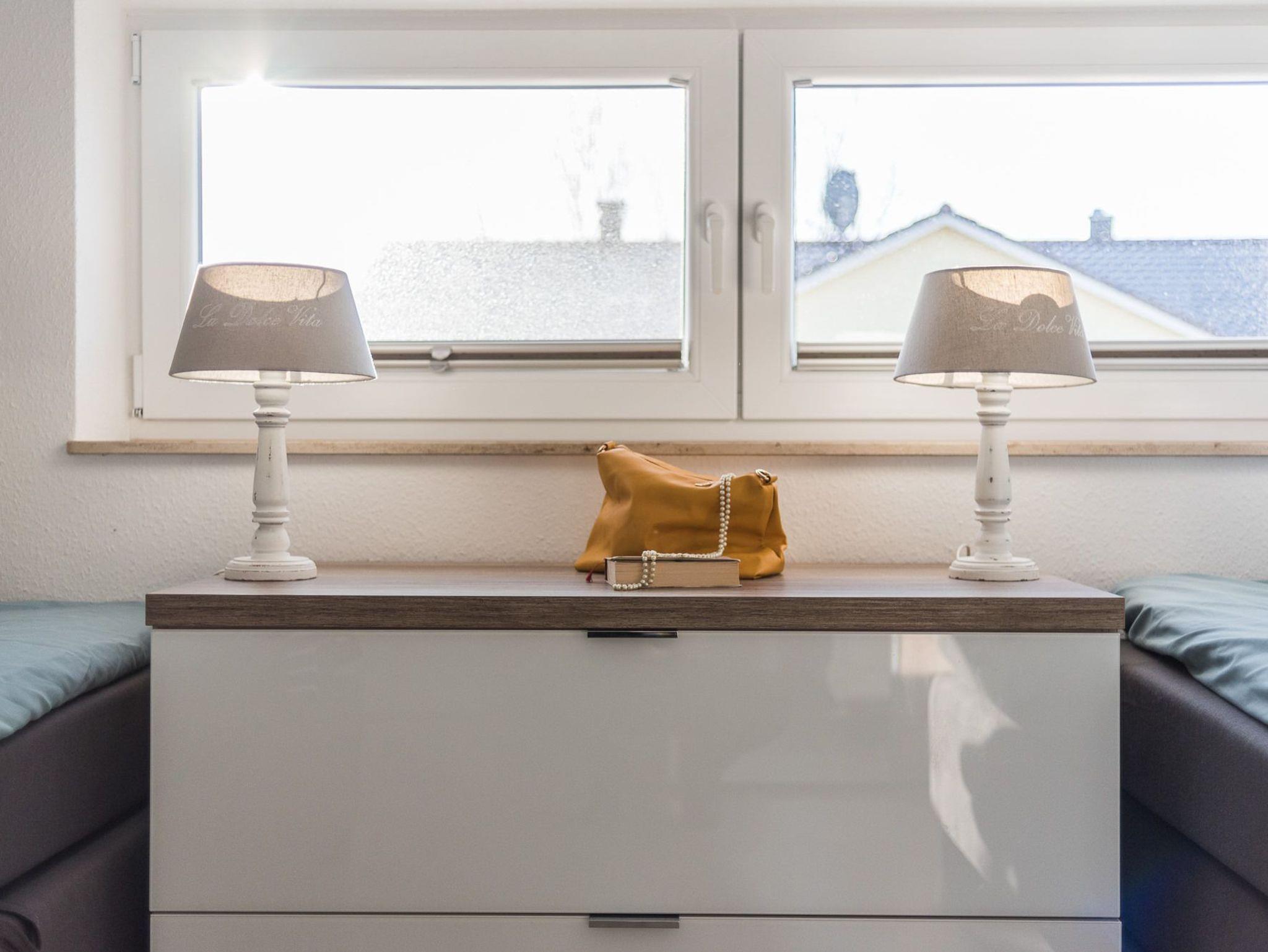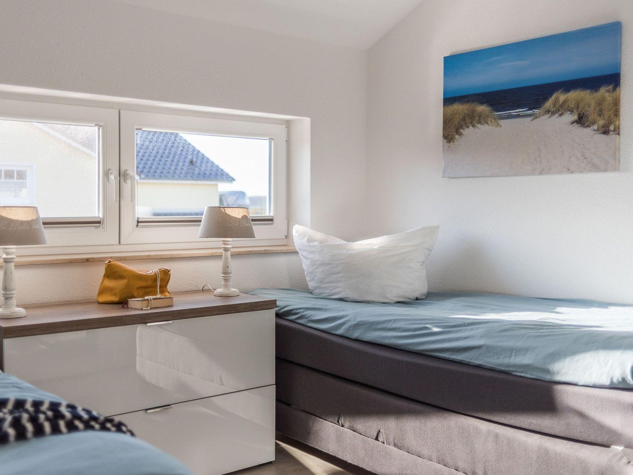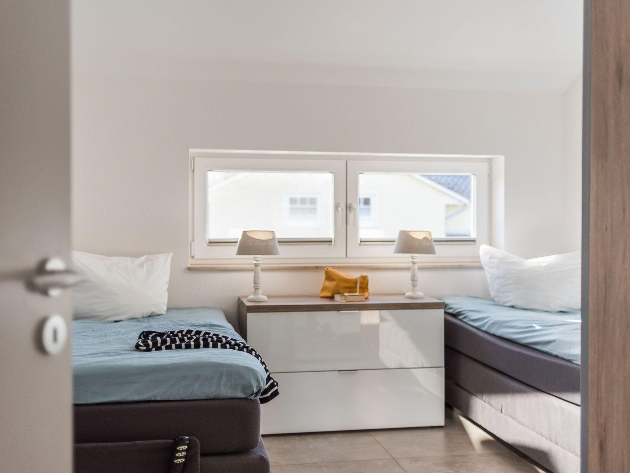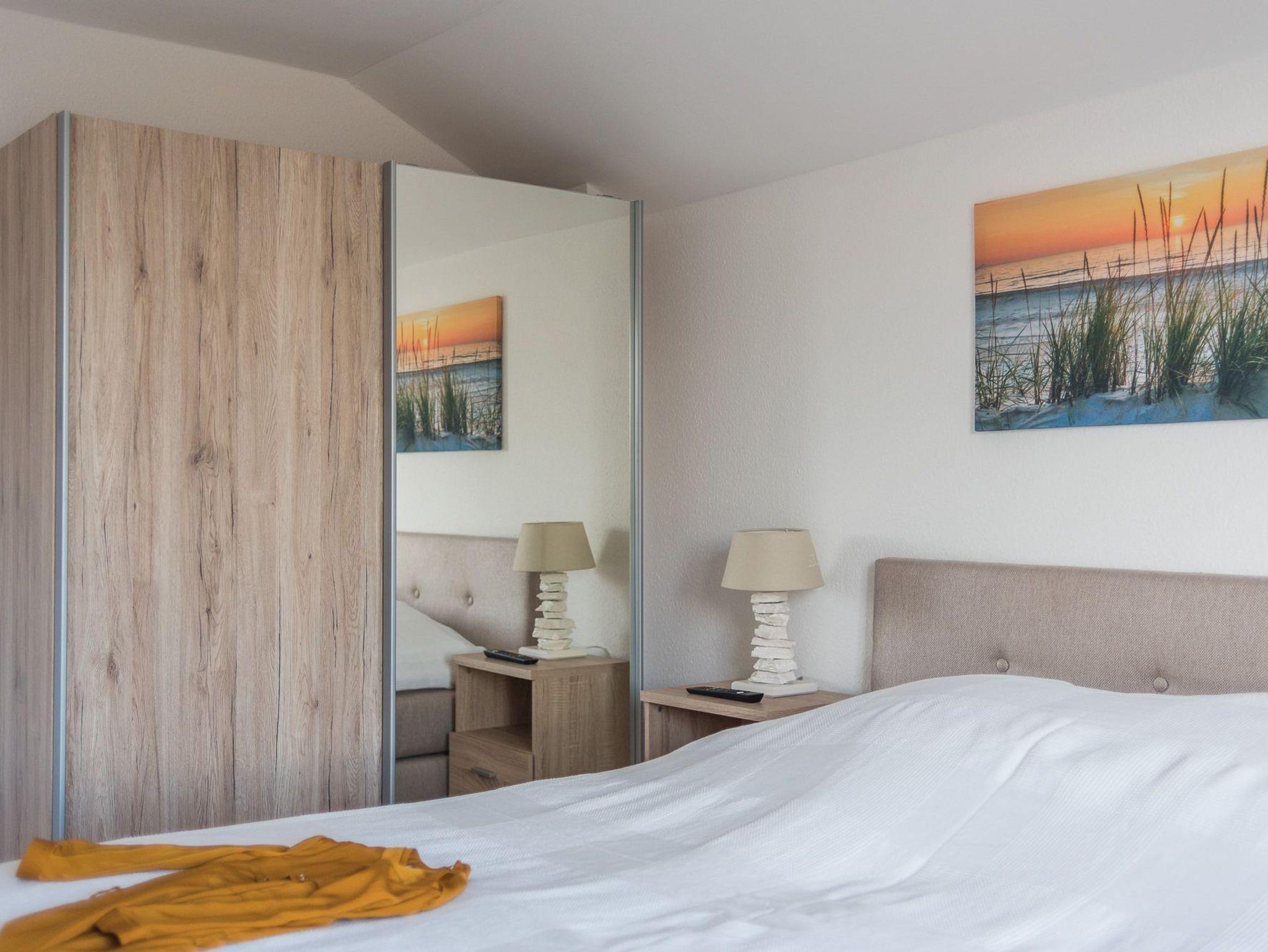 Beide Schlafzimmer bieten Freiraum zum Ausruhen und Entspannen. Das erste Schlafzimmer bietet Ihnen ein großes bequemes Doppelbett (1,80 m x 2,00 m / durchgehende Topper-Auflage). Auch hier steht Ihnen einen moderne Flatscreen TV (inkl. Radiokanal) zur Verfügung. Zugang zur großen Terrasse bietet dieses Zimmer ebenfalls. Im zweiten Schlafzimmer befinden sich zwei super bequeme Einzelbetten, welche elektrisch höhenverstellbar im Kopf, Rücken und Fußbereich sind. Der ideale Rückzugsort also, um der Technik zu entfliehen und ganz entspannt ein Buch zu lesen. Dazu bieten ein Kleiderschrank und eine Kommode ausreichend Stauraum.