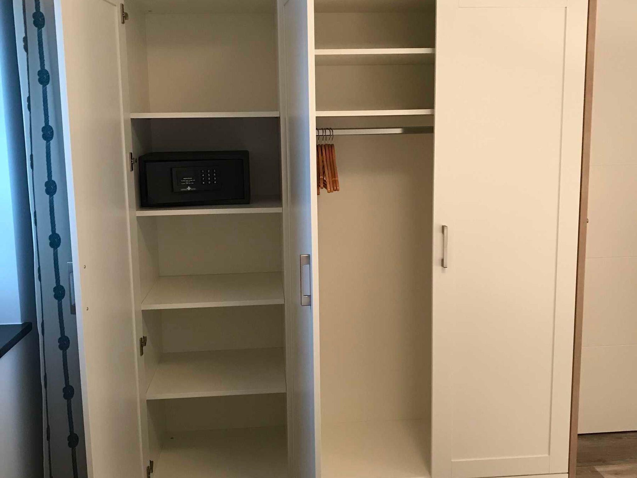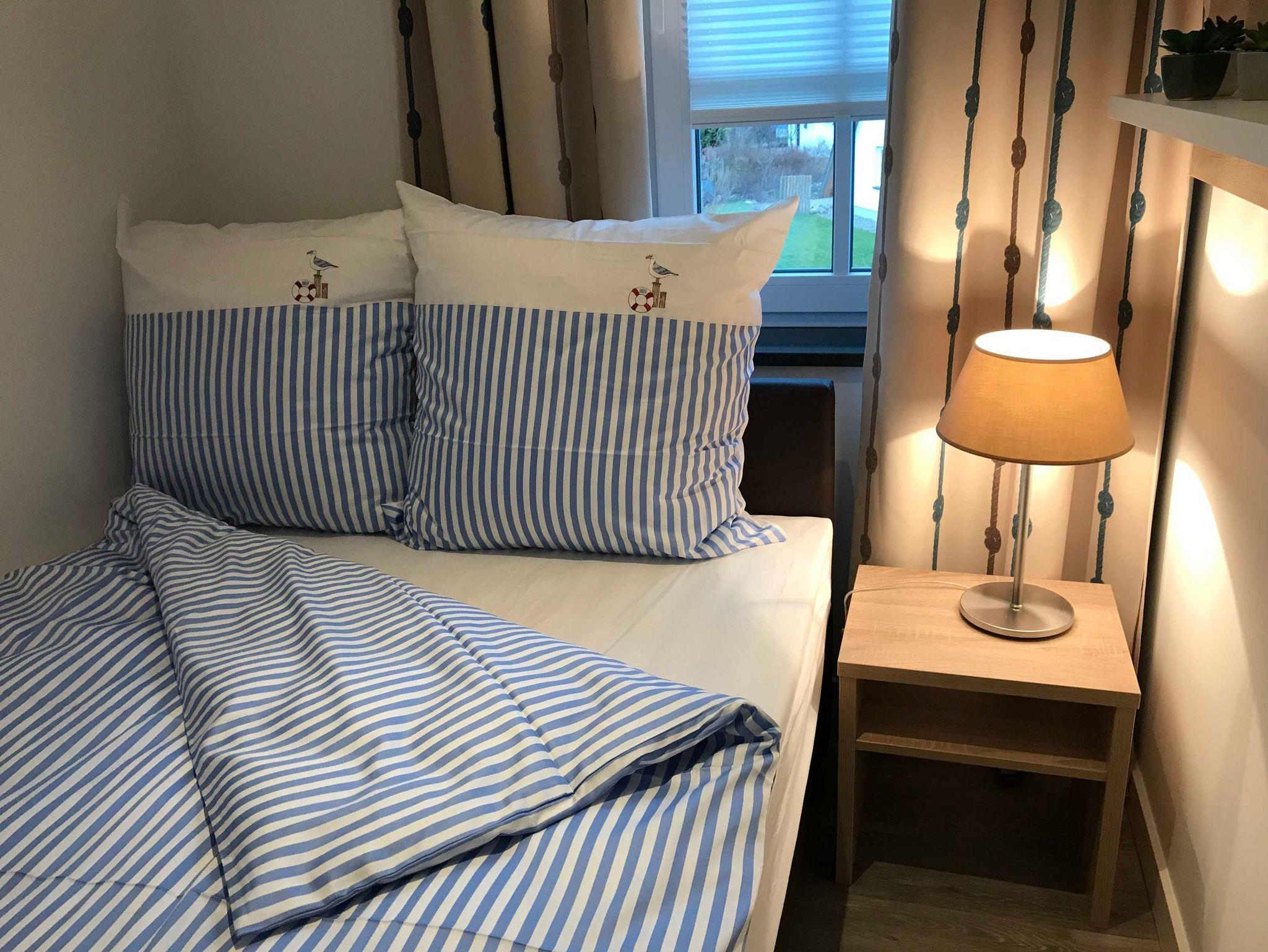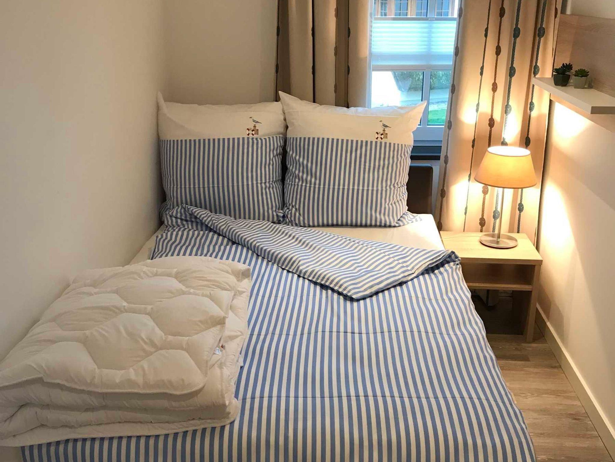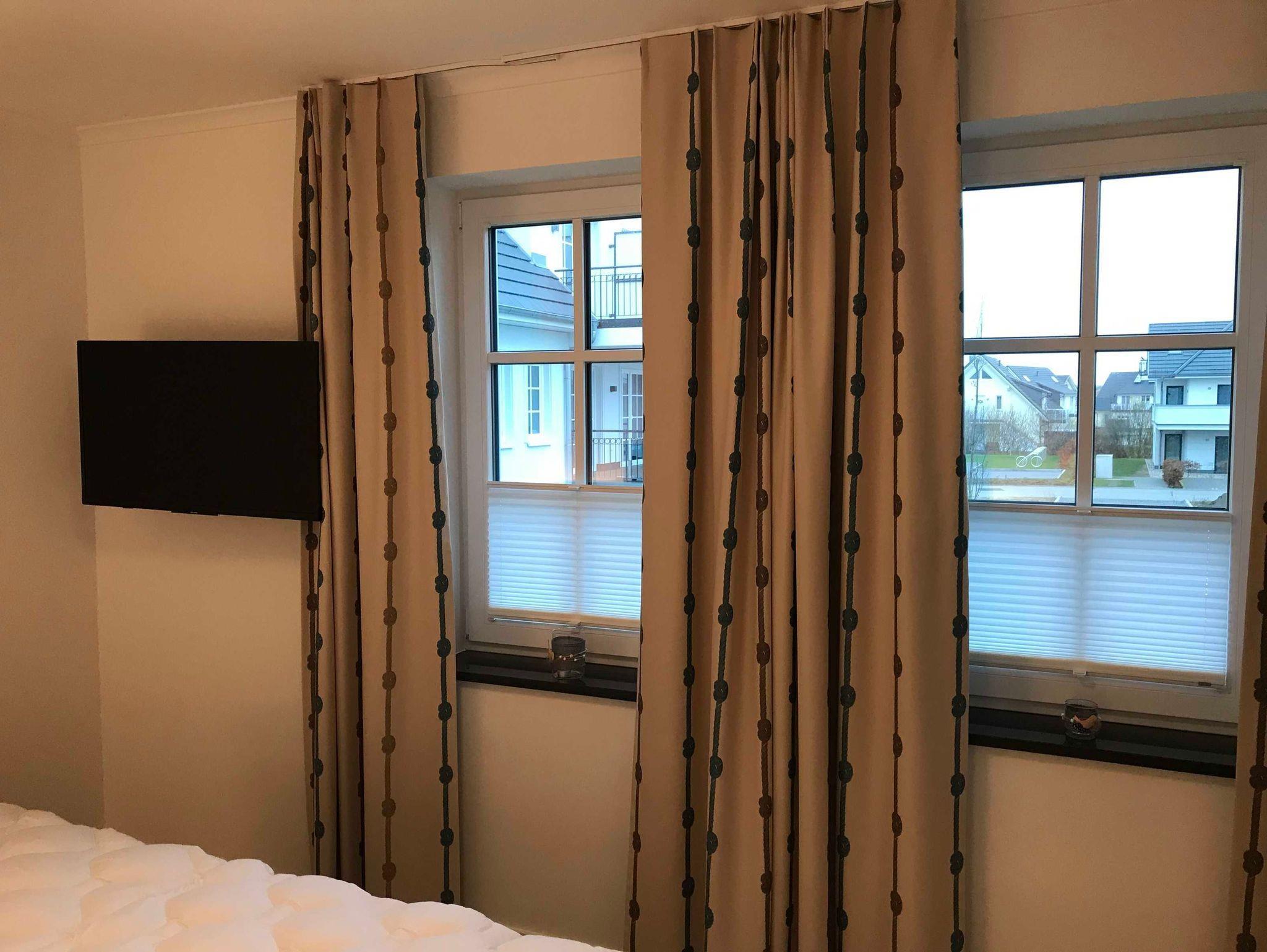 Das erste Schlafzimmer ist mit einem komfortablen Boxspringbett (180 x 200 cm / 2 getrennten Matratzen) und einem geräumigen Kleiderschrank ausgestattet. Im Kleiderschrank gibt es die Möglichkeit, Wertsachen in einem Safe zu verschließen. Ein Flat-TV dient zur weiteren Unterhaltung. Im zweiten Schlafzimmer erwarten Sie ebenfalls ein gemütliches Boxspringbett (140 x 200 cm) und ein Kleiderschrank. Beide Schlafzimmer sind mit Verdunklungsplissees sowie Verdunklungsgardinen ausgestattet. Die Zimmer bieten genug Platz für ein Kinderreisebett. Wäscheset, Kinderreisebett und Kinderhochstuhl können kostenpflichtig zugebucht werden.
