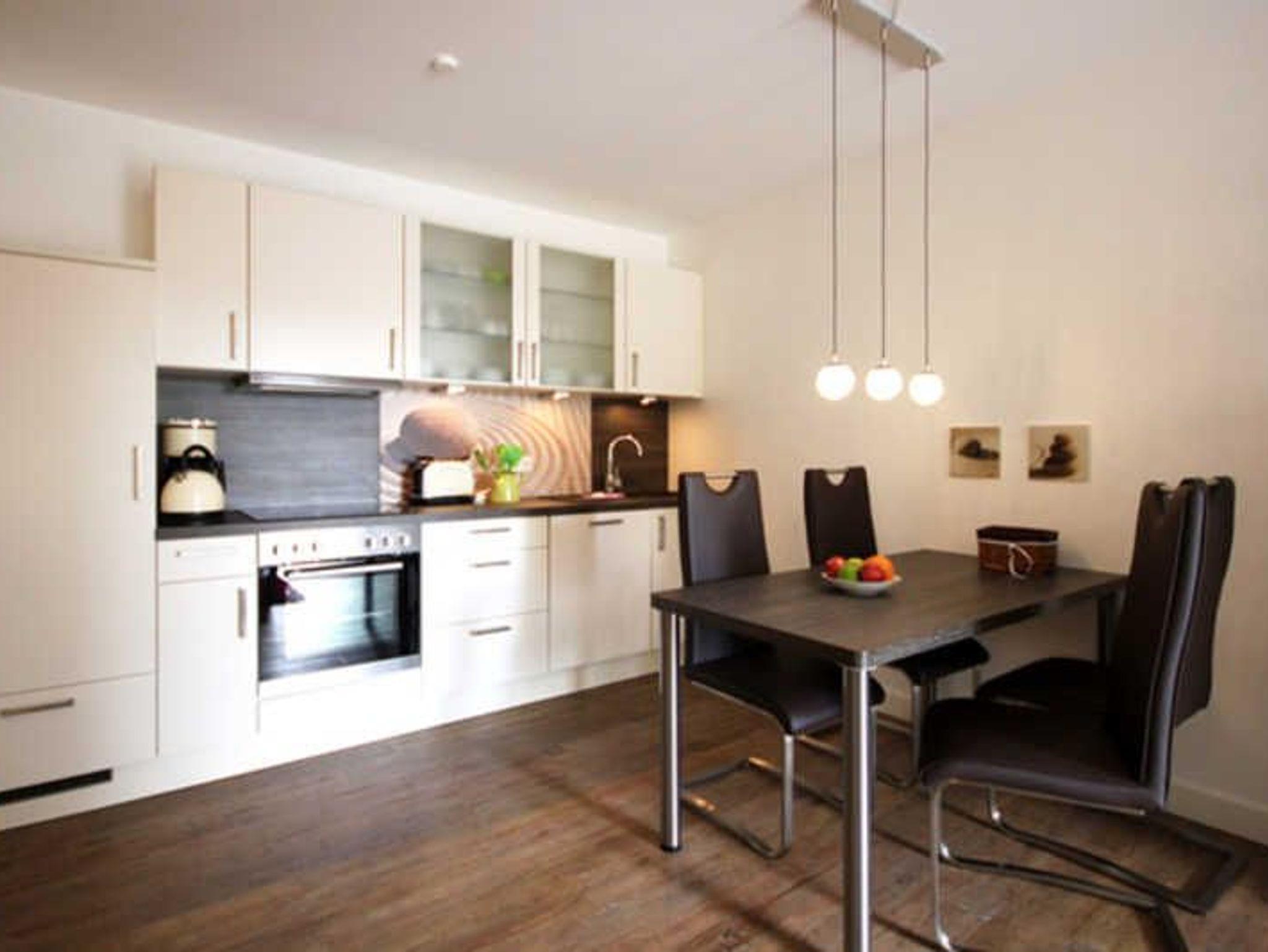 Im kombinierten Ess- und Wohnraum befindet sich ein Tisch mit vier Stühlen. Ergänzt wird die Ausstattung im Wohnbereich mit einer Schlafcouch und einem TV- Gerät. Ein DVD-Player und Radio sind ebenfalls vorhanden. In der Einbauküche finden Sie ein Cerankochfeld, Backofen, eine Mikrowelle, Geschirrspüler sowie Kühlschrank mit integriertem Gefrierfach. Der Schlafbereich wurde mit großem Doppelbett, geräumigem Kleiderschrank und einem weiteren Flatscreen-TV ausgestattet. Im eleganten Bad finden Sie eine Dusche und einen großen Waschtisch mit durchgehendem Spiegel. Auf der nach Süd-West ausgerichteten Terrasse stehen ein Tisch, zwei Stühle und zwei Hocker. Die integrierte Sauna ist vom Wohnbereich zugänglich und wird über Münzeinwurf betrieben (2,00 Euro Stücke / 4,00 Euro für 40 min). Das kostenfreie WLAN in der Unterkunft ist ausschließlich für die Verwendung von Social Media und den Austausch von Bildern mit Familie und Freunden gedacht. Die Nutzung zum Streamen von Filmen ist nicht vorgesehen. Zur Wohnung gehört ein kostenfreier Tiefgaragenplatz. Bitte beachten Sie die Durchfahrtshöhe von max. 1,90 m. Bei Überschreitung der maximalen Durchfahrtshöhe, besteht die Möglichkeit auf einen kostenpflichtigen Parkplatz in unmittelbarer Nähe auszuweichen. Der im Gebäude installierte Aufzug erleichtert den Transport der mitgebrachten Koffer. Zudem befindet sich ebenfalls im Untergeschoss ein separater abschließbarer Fahrradraum. Hier noch einige Hinweise: Es handelt sich um eine Nichtraucherwohnung. Es sind keine Haustiere erlaubt. Wäscheset, Kinderreisebett und Kinderhochstuhl können kostenpflichtig zugebucht werden. Eine Waschmaschine und ein Trockner stehen im separaten Waschraum im Erdgeschoss des Objekts zur Verfügung (gegen Gebühr / 0,50 Euro Münzen). Sichern Sie sich zusätzlich den Anspruch auf einen der begehrten Strandkörbe nur ein paar Meter entfernt von den rauschenden Wellen der Ostsee (Anfang Mai - Ende August) und buchen Sie jetzt zu besonderen Konditionen (12,00 Euro pro Tag oder 75,00 Euro pro Woche.)