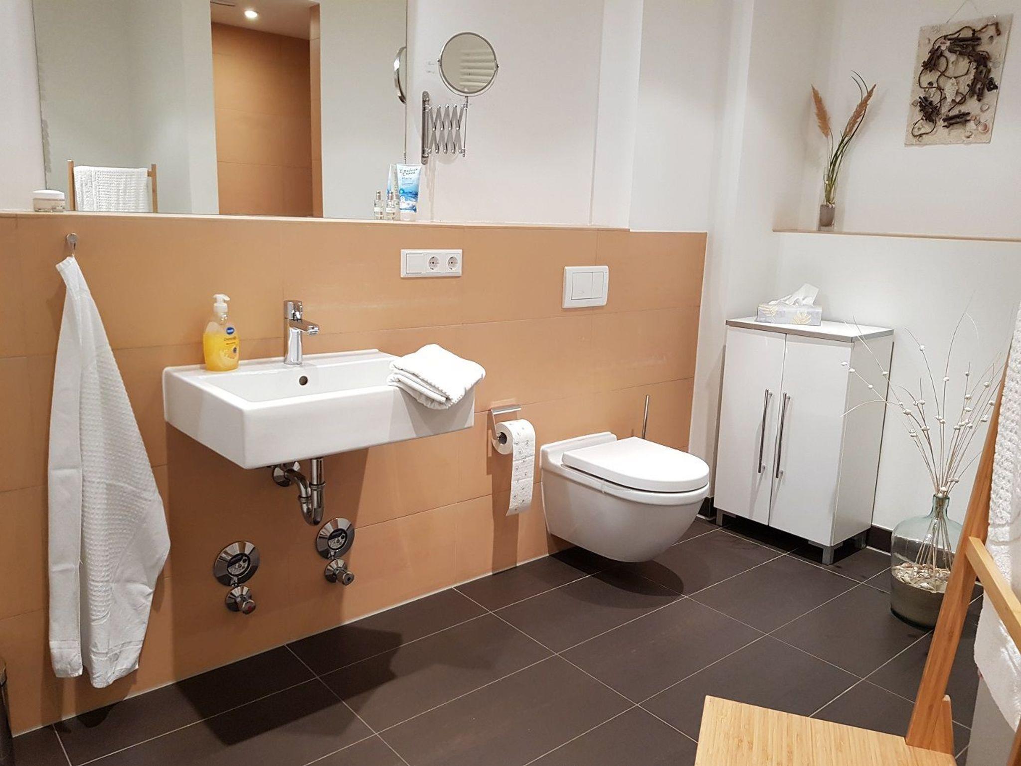 Im kombinierten Ess- und Wohnraum befindet sich ein Tisch mit vier Stühlen. Ergänzt wird die Ausstattung im Wohnbereich mit einer Schlafcouch und einem TV- Gerät. Ein DVD-Player und Radio sind ebenfalls vorhanden. In der Einbauküche finden Sie ein Cerankochfeld, Backofen, eine Mikrowelle, Geschirrspüler sowie Kühlschrank mit integriertem Gefrierfach. Der Schlafbereich wurde mit großem Doppelbett, geräumigem Kleiderschrank und einem weiteren Flatscreen-TV ausgestattet. Im eleganten Bad finden Sie eine Dusche und einen großen Waschtisch mit durchgehendem Spiegel. Auf der nach Süd-West ausgerichteten Terrasse stehen ein Tisch, zwei Stühle und zwei Hocker. Die integrierte Sauna ist vom Wohnbereich zugänglich und wird über Münzeinwurf betrieben (2,00 € Stücke / 4,00 € für 40 min). Das kostenfreie WLAN in der Unterkunft ist ausschließlich für die Verwendung von Social Media und den Austausch von Bildern mit Familie und Freunden gedacht. Die Nutzung zum Streamen von Filmen ist nicht vorgesehen. Zur Wohnung gehört ein kostenfreier Tiefgaragenplatz. Bitte beachten Sie die Durchfahrtshöhe von max. 1,90 m. Bei Überschreitung der maximalen Durchfahrtshöhe, besteht die Möglichkeit auf einen kostenpflichtigen Parkplatz in unmittelbarer Nähe auszuweichen. Der im Gebäude installierte Aufzug erleichtert den Transport der mitgebrachten Koffer. Zudem befindet sich ebenfalls im Untergeschoss ein separater abschließbarer Fahrradraum. Hier noch einige Hinweise: Es handelt sich um eine Nichtraucherwohnung. Es sind keine Haustiere erlaubt. Wäscheset, Kinderreisebett und Kinderhochstuhl können kostenpflichtig zugebucht werden. Eine Waschmaschine und ein Trockner stehen im separaten Waschraum im Erdgeschoss des Objekts zur Verfügung (gegen Gebühr / 0,50 € Münzen). Sichern Sie sich zusätzlich den Anspruch auf einen der begehrten Strandkörbe nur ein paar Meter entfernt von den rauschenden Wellen der Ostsee (Anfang Mai - Ende August) und buchen Sie jetzt zu besonderen Konditionen (12,00 € pro Tag oder 75,00 € pro Woche.)