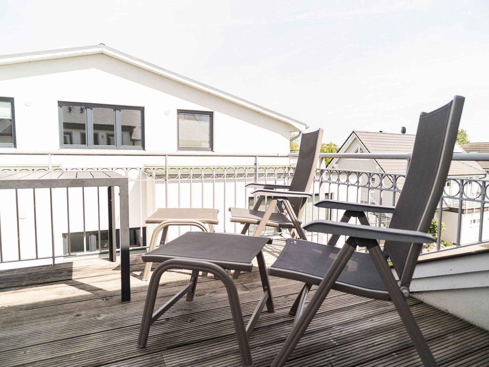 Geräumige Ferienwohnung über zwei Etagen nahe Ostseestrand mit Balkonen und moderner Ausstattung.