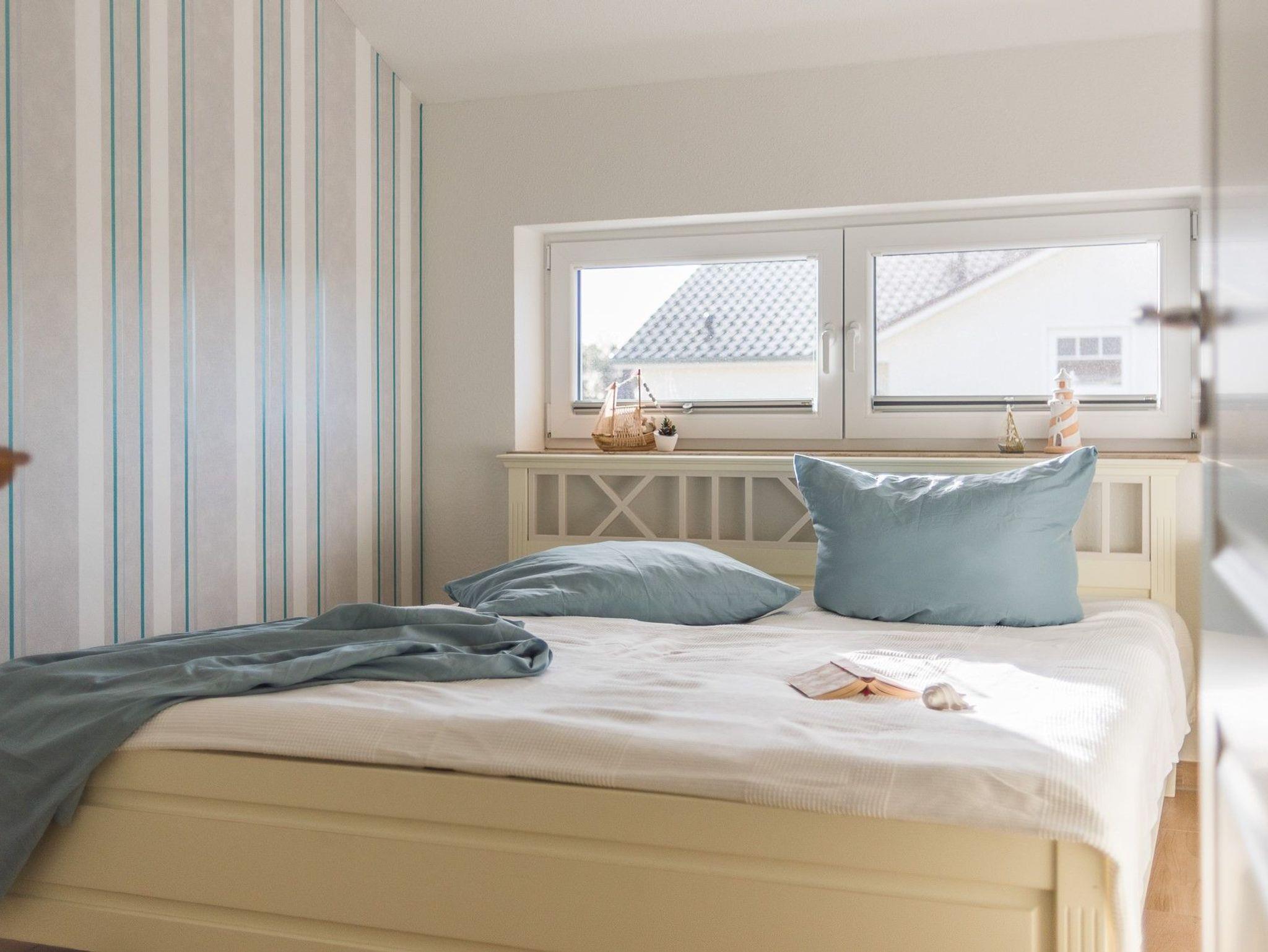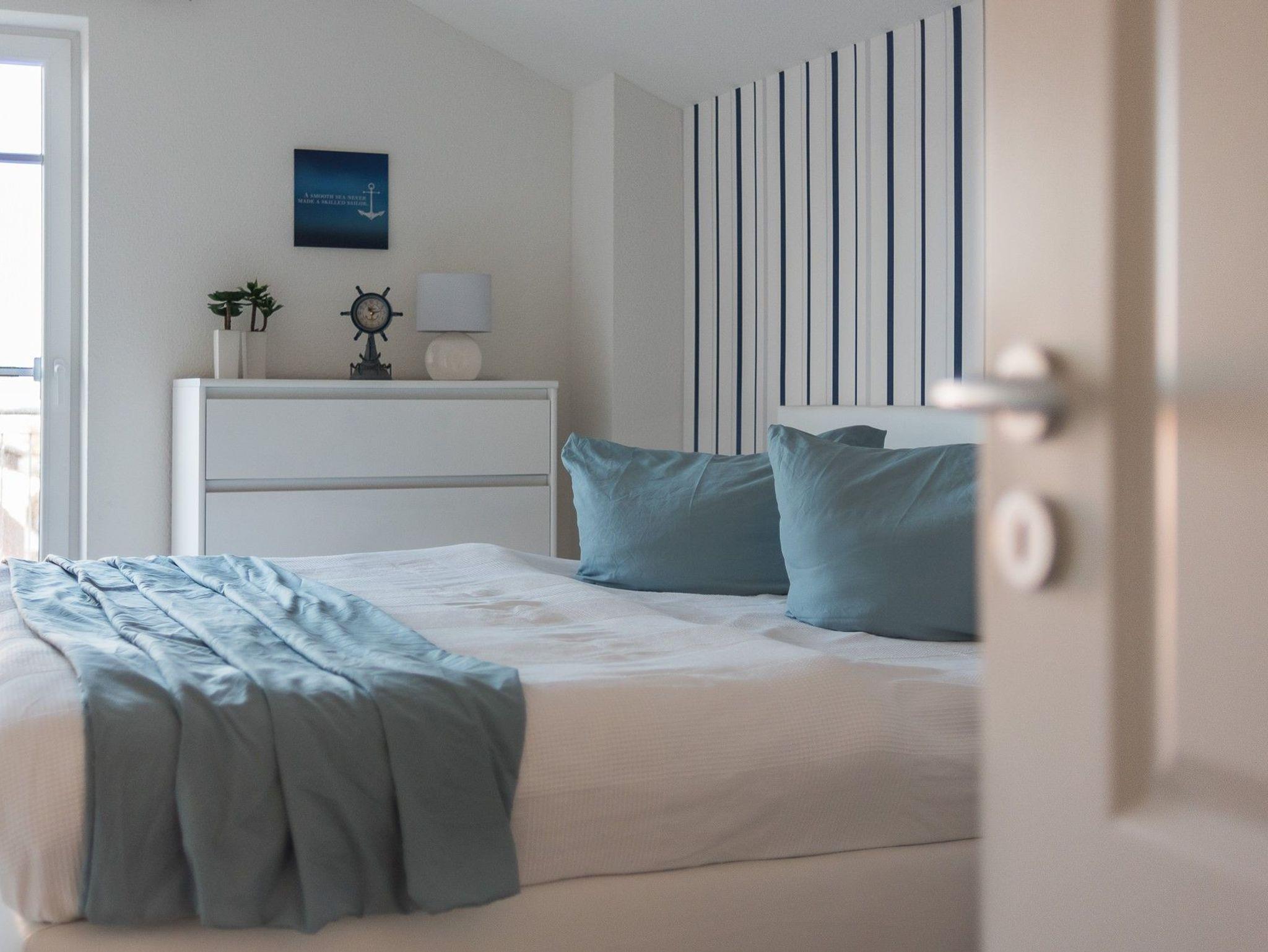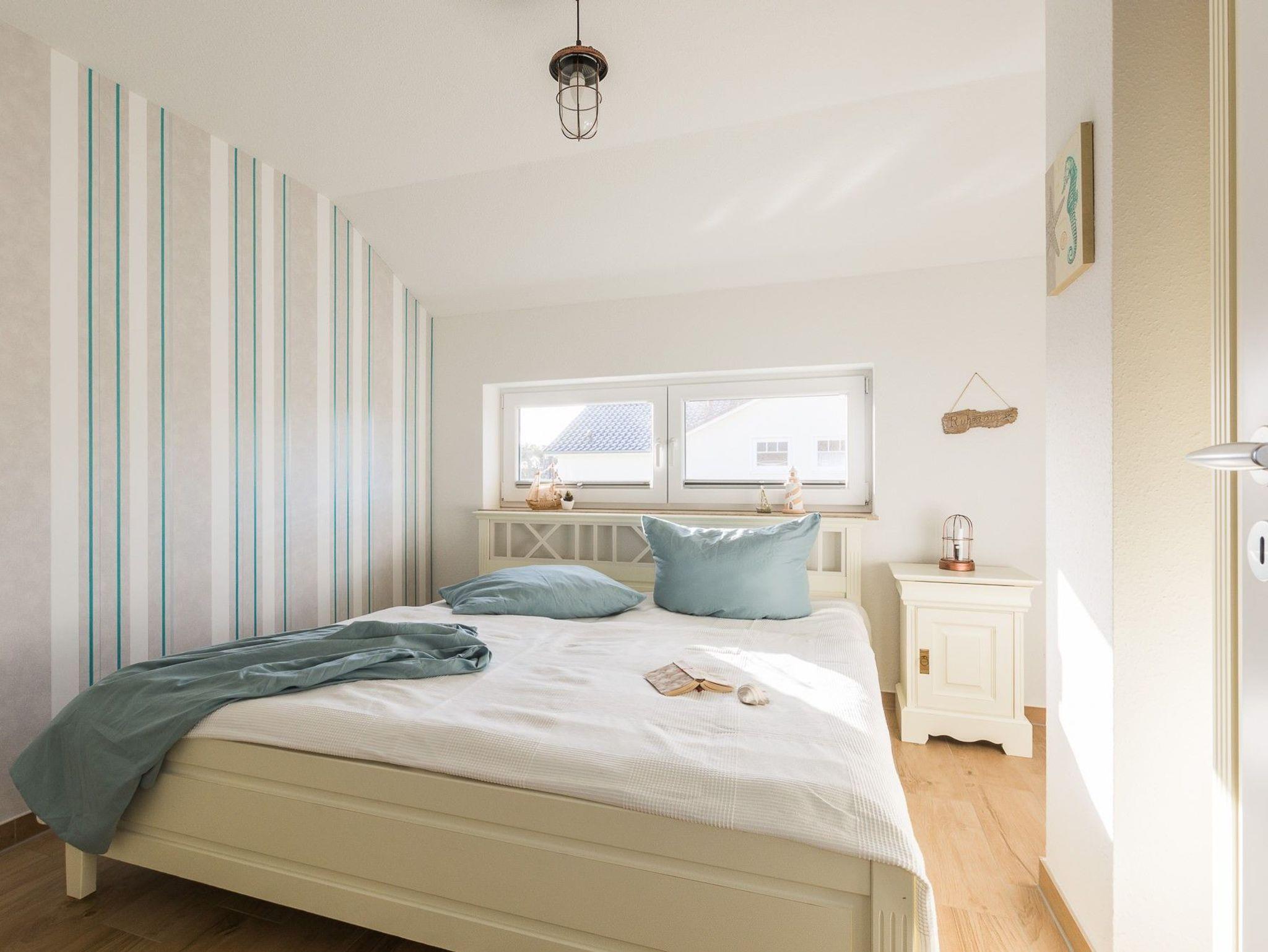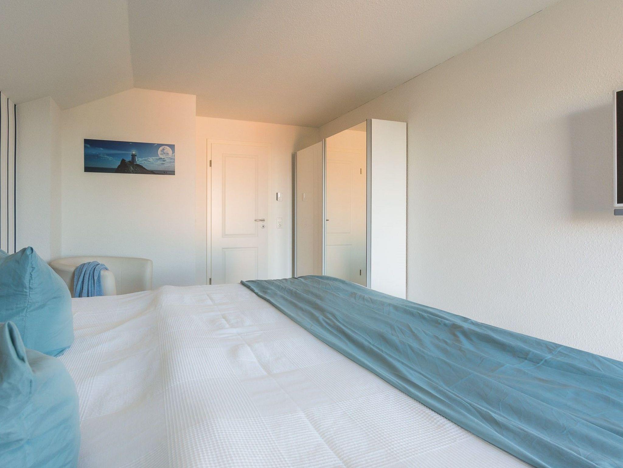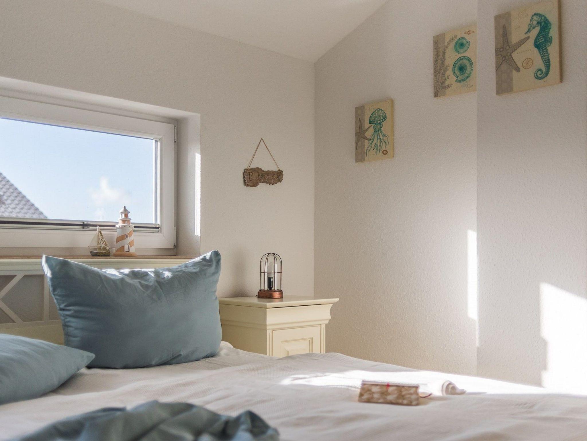 Die Unterkunft verfügt über zwei Schlafzimmer ausgestattet mit einem Boxspringbett bzw. einem Doppelbett mit jeweils einem LED-TV.