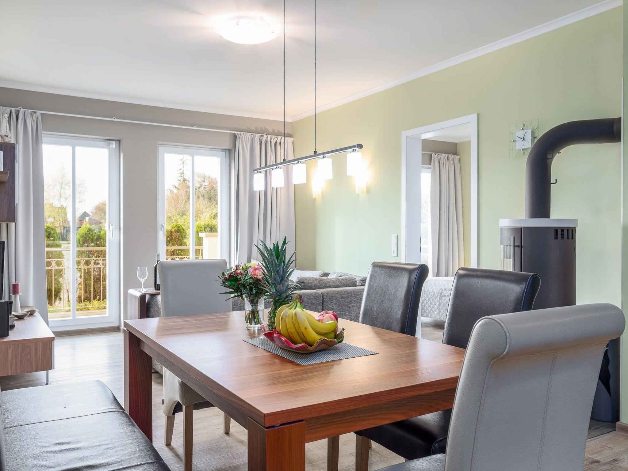 Strandnahe 3-Raumwohnung mit Balkon, Kaminofen und zwei Bädern in Börgerende-Rethwisch.