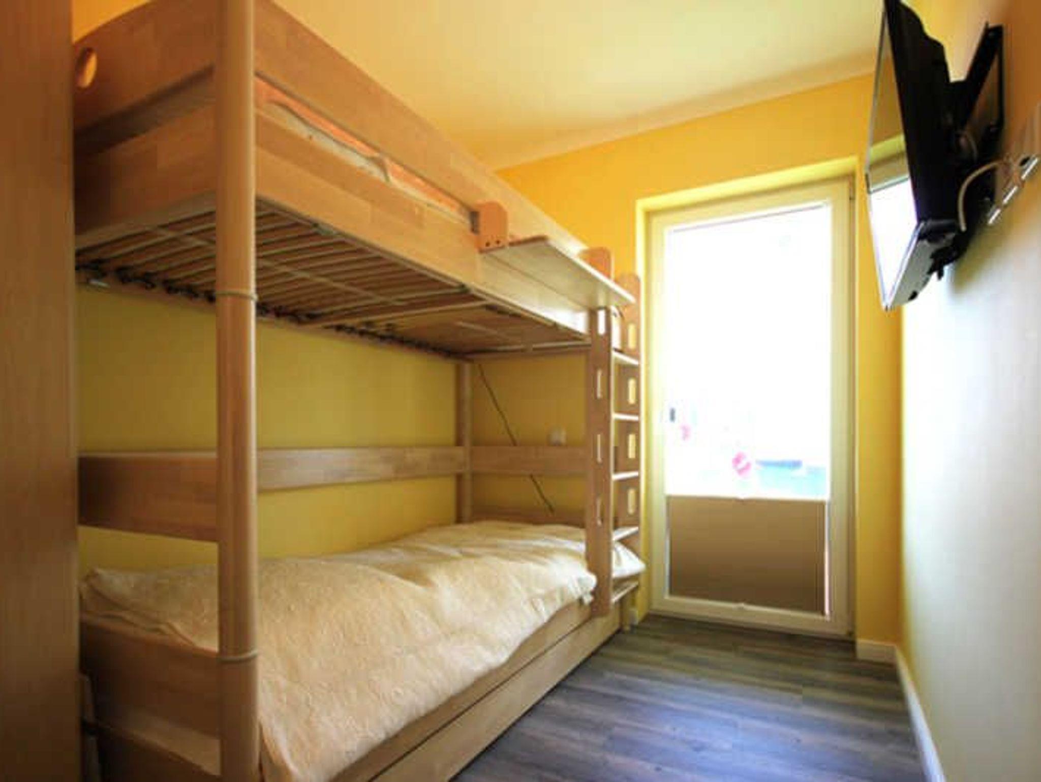 Im ersten Schlafzimmer empfangen Sie ein gemütliches Boxspringbett (durchgehende Matratze 1,80 m), ein geräumiger, dreitüriger Kleiderschrank und ein Flatscreen-TV. Das zweite Schlafzimmer ist mit einem Etagenbett (Matratze je 90cm), einem Kleiderschrank sowie mit einem Fernseher ausgestattet.