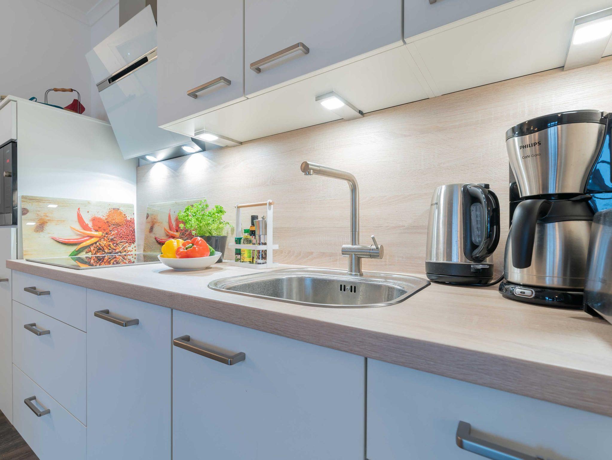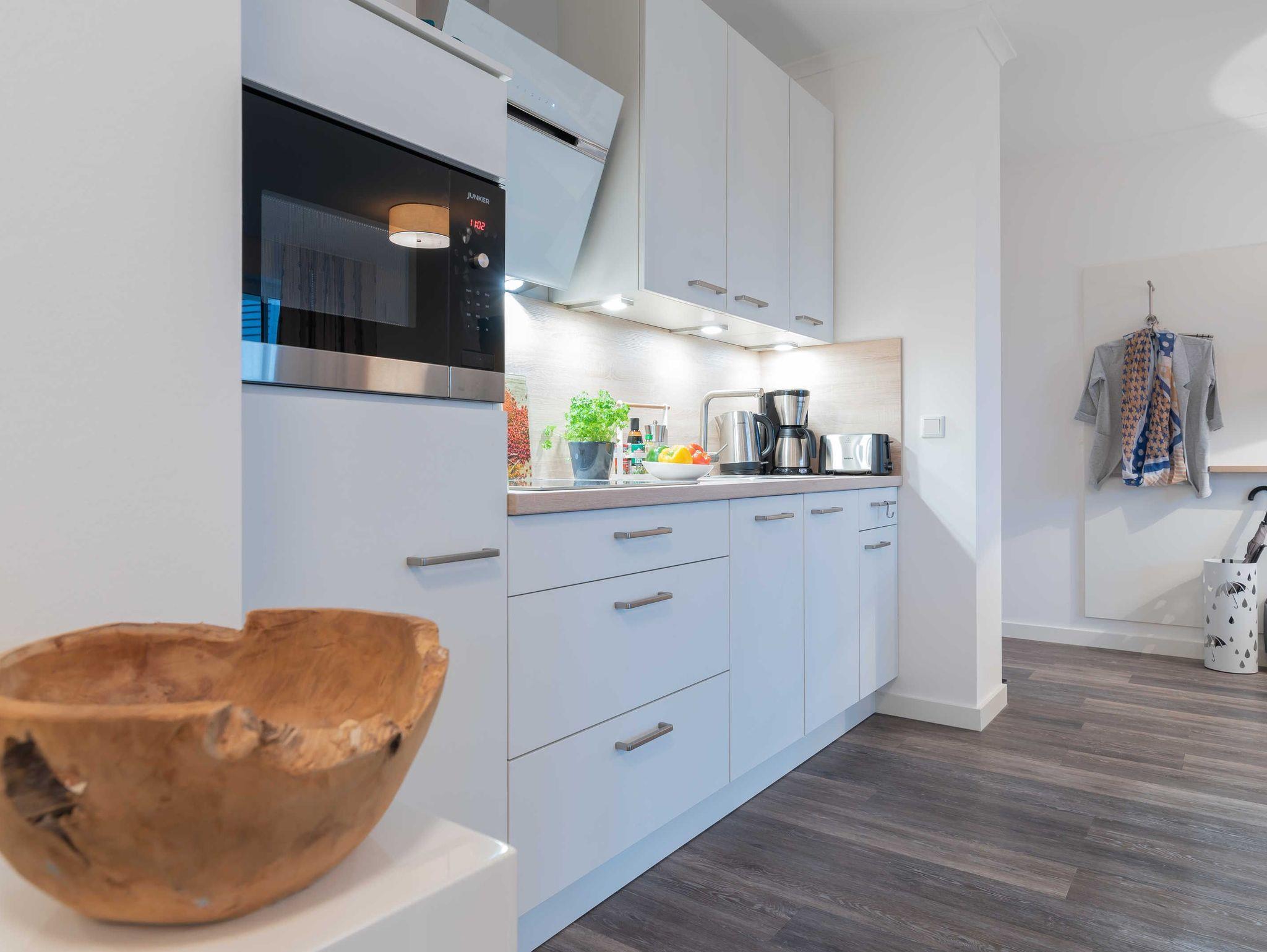 Die freundliche, helle Drei-Zimmer-Wohnung liegt in der ersten Etage des 2018 fertig gestellten Objektes und ist für maximal vier Personen geeignet.