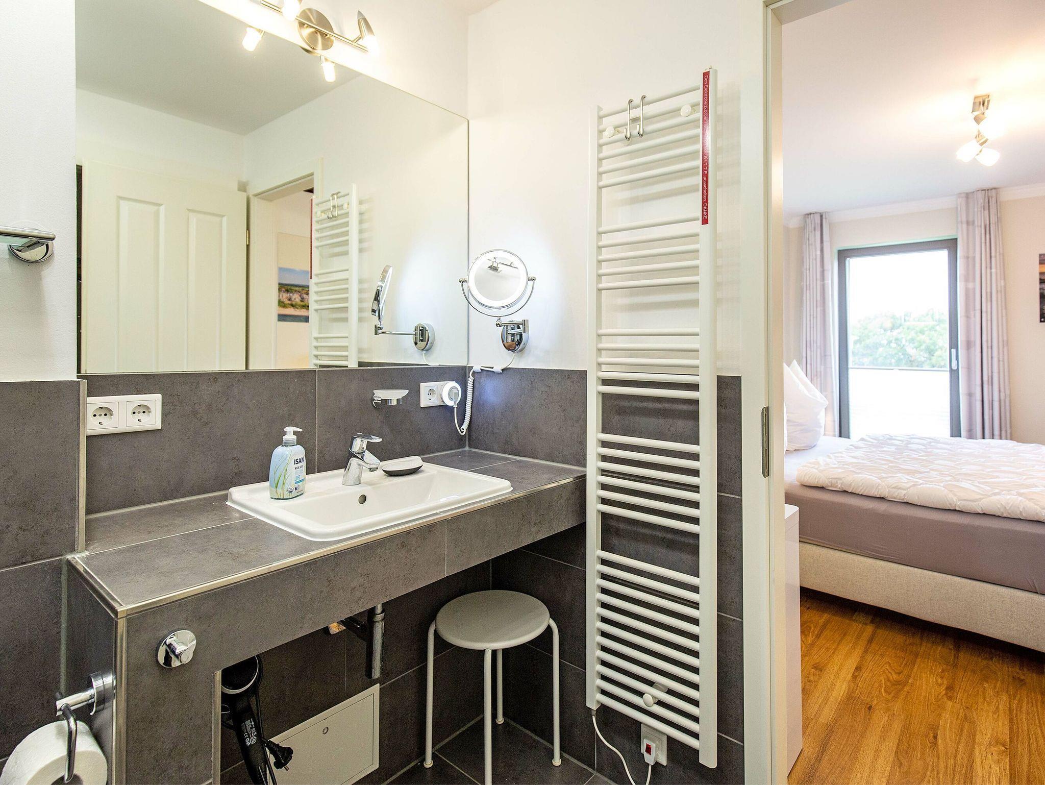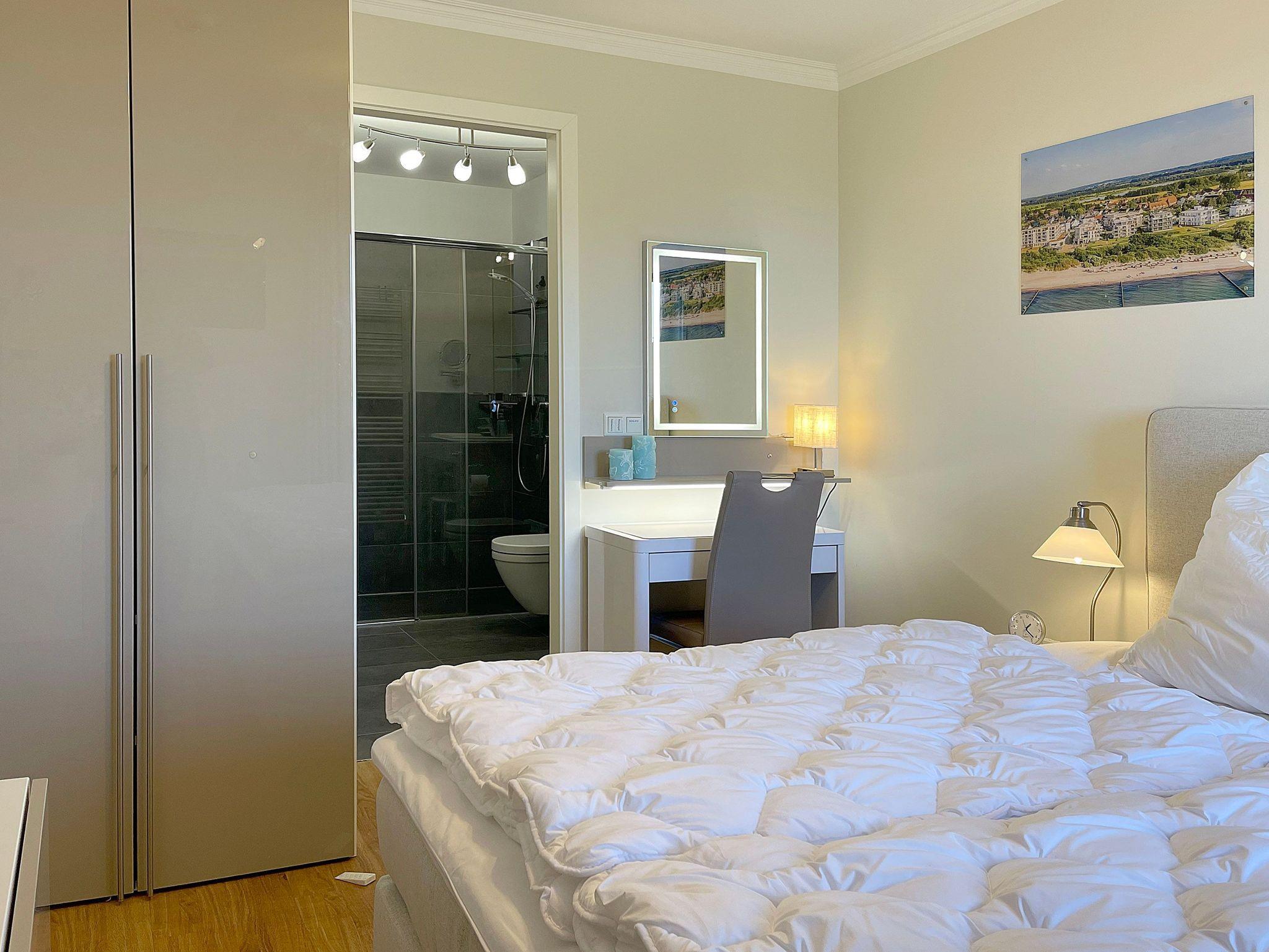 Strandnahe, große 3-Raumwohnung für max. 5 Personen, 2 Schlafräume, 2 Bäder, Balkon mit Strandkorb und Ostseeblick im 1. OG.