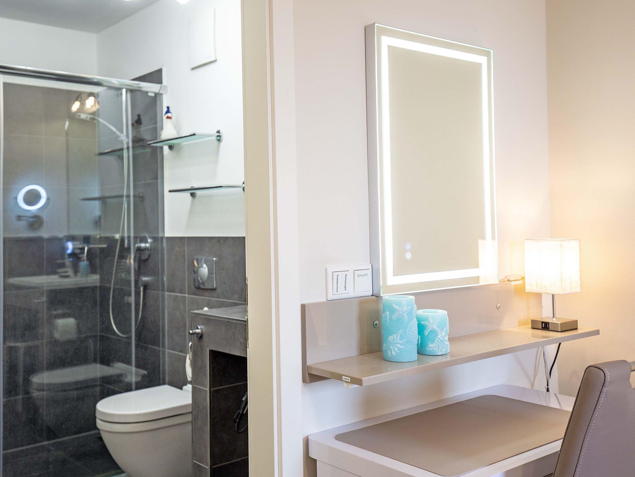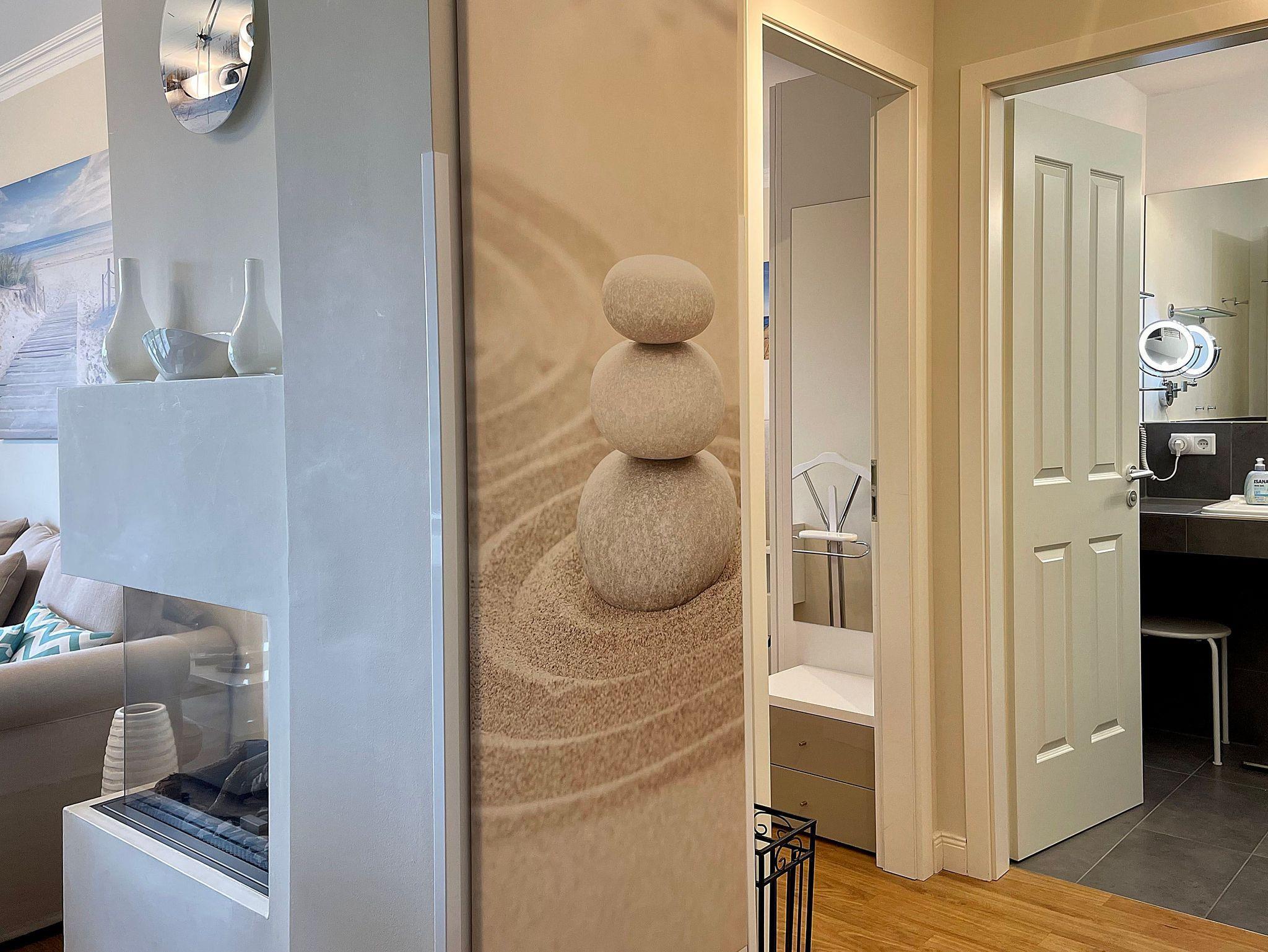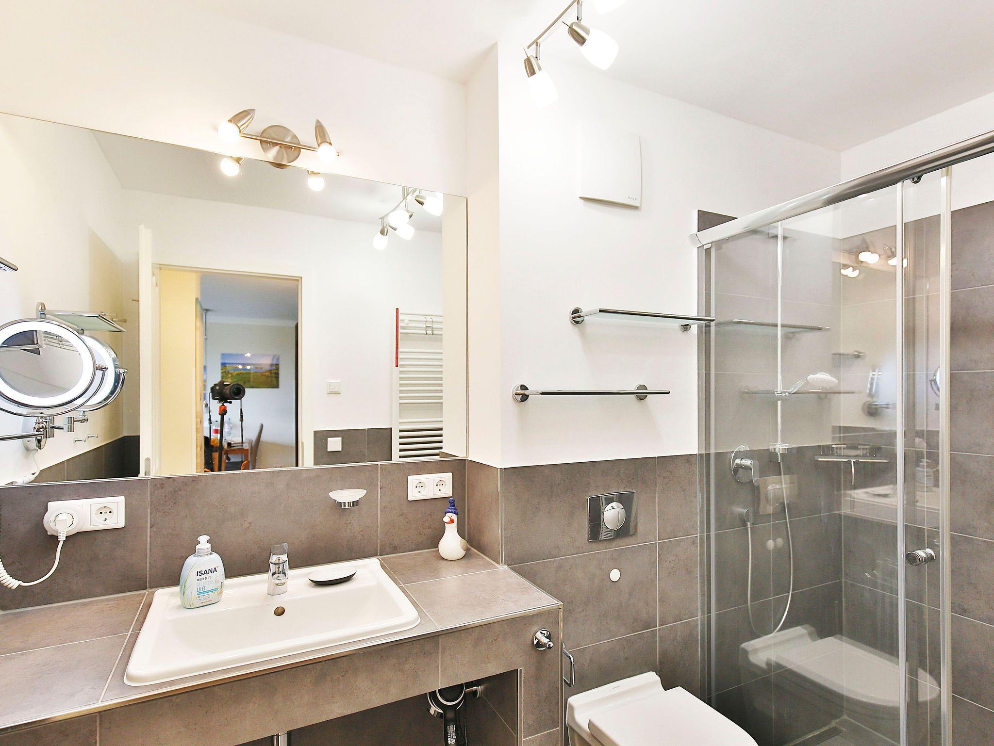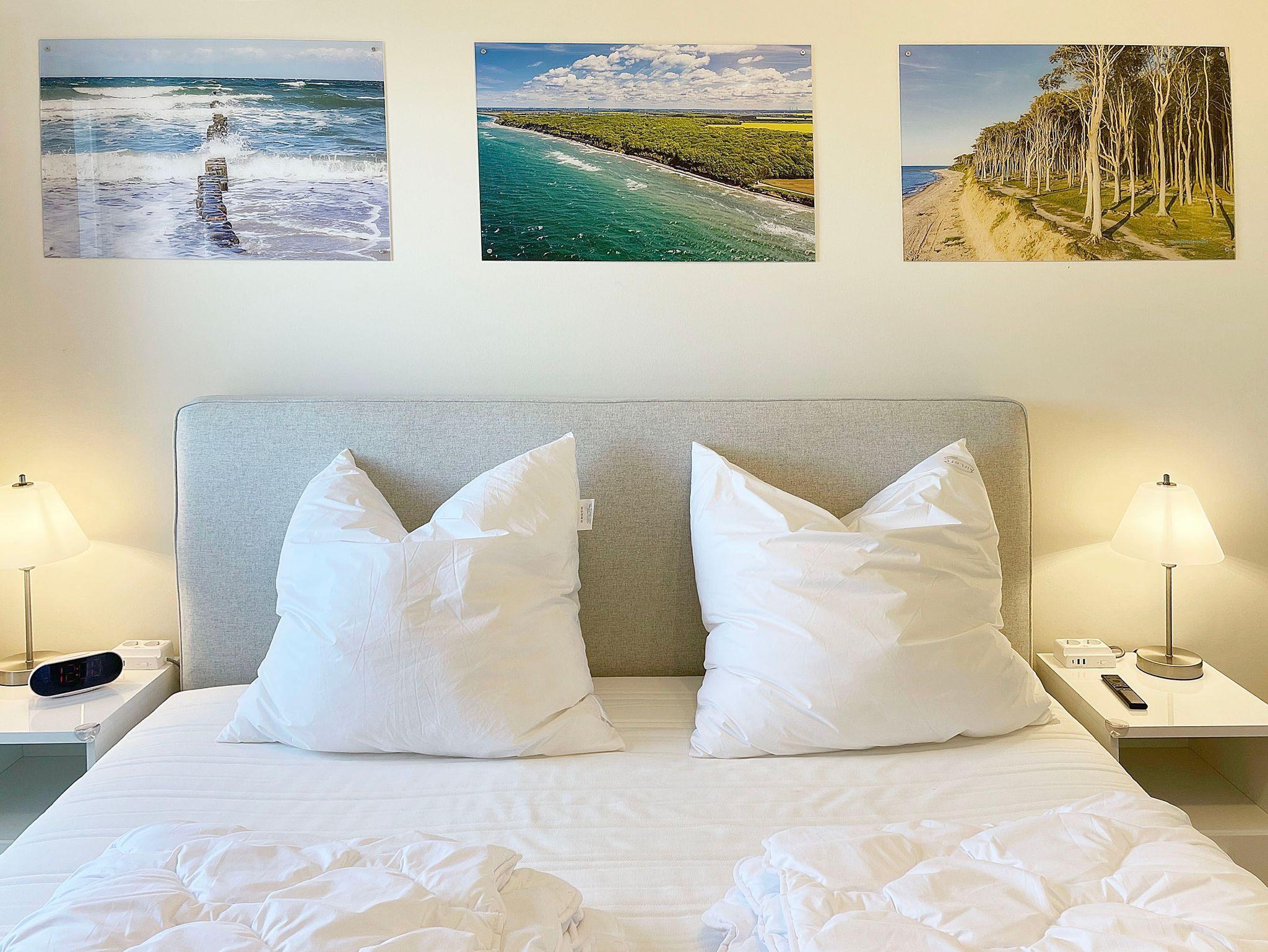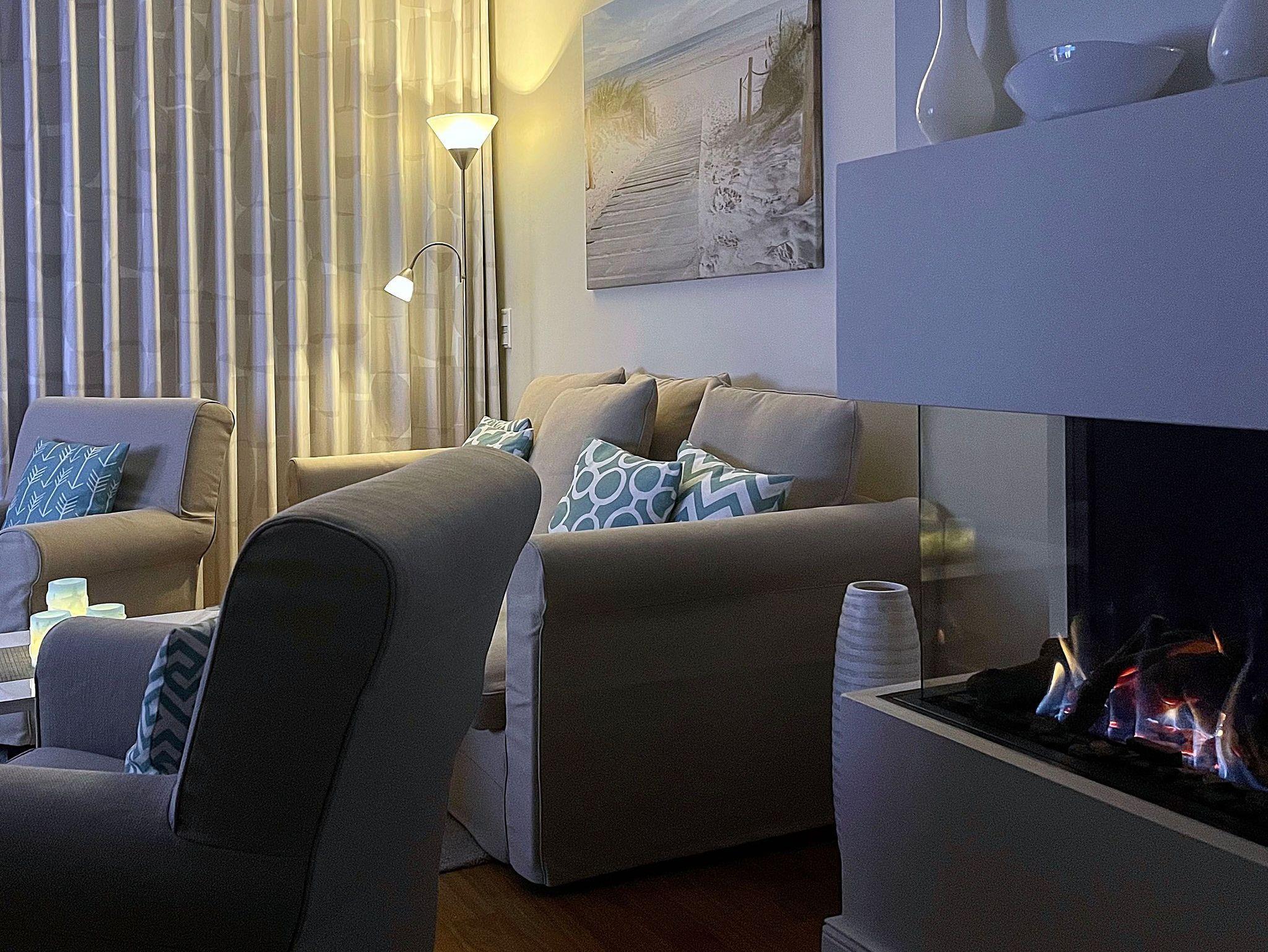 Im November 2021 neu eingerichtet, bietet diese großzügige Wohnung Platz für bis zu fünf Personen. Zwei Schlafzimmer und zwei Bäder sind perfekt für einen entspannten Aufenthalt. Eines der Schlafzimmer verfügt über ein angrenzendes Bad, ein sogenanntes „Bad en Suite“. Das zweite Bad erreicht man über einen Zwischenflur. Die Bäder sind umfassend mit einer bodentiefen Dusche, großem LED-Wandspiegel, Ablagen, Handtuchtrockner, Föhn, Personenwaage und weiteren Annehmlichkeiten ausgestattet. In den Schlafräumen erwarten Sie je ein modernes Boxspringbett mit durchgehender Matratze von 1,80 x 2,00m (linkes Schlafzimmer mittelfeste Matratze/ rechtes Schlafzimmer feste Matratze) Außerdem verfügen beide über Kleiderschrank mit Ganzkörperspiegel und eine Wandkommode. Über diesen sind moderne 43 Zoll TV- Geräte angebaut worden. Den vorhandenen Kosmetiktisch im ersten Schlafzimmer können Sie zudem als Schreibtisch nutzen. Installierte Fliegengitter sorgen in allen drei Zimmern für unbeschwerten Schlafkomfort. Bitte beachten Sie, dass in den Schlafzimmern kein Platz für den Aufbau eines zusätzlichen Kinderreisebetts ist. Im Wohnbereich empfängt Sie eine bequeme Sitzgarnitur mit ausziehbarer Schlafcouch, ein TV-Board mit einem supergroßen OLED-Fernseher, Blu-ray-Player und einem ganzen Schwung an DVDs. Ein weiteres stimmungsvolles Highlight ist der gut nutzbare Gas-Kamin. Der Bereich erstreckt sich über eine komplett eingerichtete Küchenzeile und einen Esstisch mit fünf Stühlen für gemeinsame Mahlzeiten und gesellige Spieleabende. Die integrierte Induktionsherdplatte (4-Kochstellen) sorgt für eine schnellere Zubereitung Ihrer Gerichte. Weiterhin stehen ein Backofen, Geschirrspüler, Kühlschrank mit Gefrierfach, Mikrowelle, Kaffeemaschine, „Nespressomaschine“, Wasserkocher und Toaster zur Verfügung. Es ist für ausreichende Abstell- und Unterbringungsmöglichkeiten gesorgt. Über den Wohnbereich gelangen Sie auf den herrlichen Balkon in Nord-Ausrichtung mit traumhaftem Ostseeblick. Im vorhandenen Strandkorb können Sie fantastische Sonnenuntergänge genießen. Die verbaute Fußbodenheizung sorgt in allen Räumen stets für wohlige Wärme. Zur Wohnung gehören zudem ein kostenfreier Tiefgaragenstellplatz und eine Abstellmöglichkeit für Fahrräder. Bitte beachten Sie die Durchfahrtshöhe von max. 1,90 m der Tiefgarage. Mit einem Personenaufzug gelangen Sie von der Tiefgarage aus direkt zu Ihrer Wohnung. Im Erdgeschoss der Wohnung befindet sich ein gekennzeichneter Abstellbereich für Kinderwagen. Eine Waschmaschine und ein Trockner stehen im separaten Hauswirtschaftsraum im Untergeschoss der Villa zu Ihrer Verfügung (gegen Gebühr / 1,00 € Münzen). Hier noch einige Hinweise: Es handelt sich um eine Nichtraucherwohnung. Haustiere sind nicht gestattet. Das WLAN steht kostenfrei in allen Zimmern zur Verfügung. Das Datenvolumen ist unbegrenzt, so dass Sie ohne Limit nach Herzenslust streamen können. Das Netz schwankt aber leider noch, wenn sich viele Nutzer in Börgerende im Internet befinden. Weiterhin befinden sich in der Wohnung ein Garderobenbereich, ein fest verbauter Safe für Ihre Wertsachen und zwei Abstellräume, in denen Sie bequem zusätzliche Dinge unterbringen können - auch die leeren Koffer. Hier finden Sie auch ein Bügelbrett und Dampfbügeleisen. Wäschesets, Kinderreisebett und Kinderhochstuhl können kostenpflichtig zugebucht werden. Ab der dritten Person wird ein Aufschlag in Höhe von 15,00 €/ÜN berechnet. Die Unterkunft befindet sich wenige Meter vom Badestrand entfernt in ruhiger Lage zur Promenade. Kein Autoverkehr! Sichern Sie sich einen der begehrten Strandkörbe nur ein paar Meter entfernt von den rauschenden Wellen der Ostsee (Anfang Mai - Ende August) und buchen Sie jetzt zu besonderen Konditionen (12,00 € pro Tag oder 75,00 € pro Woche.)