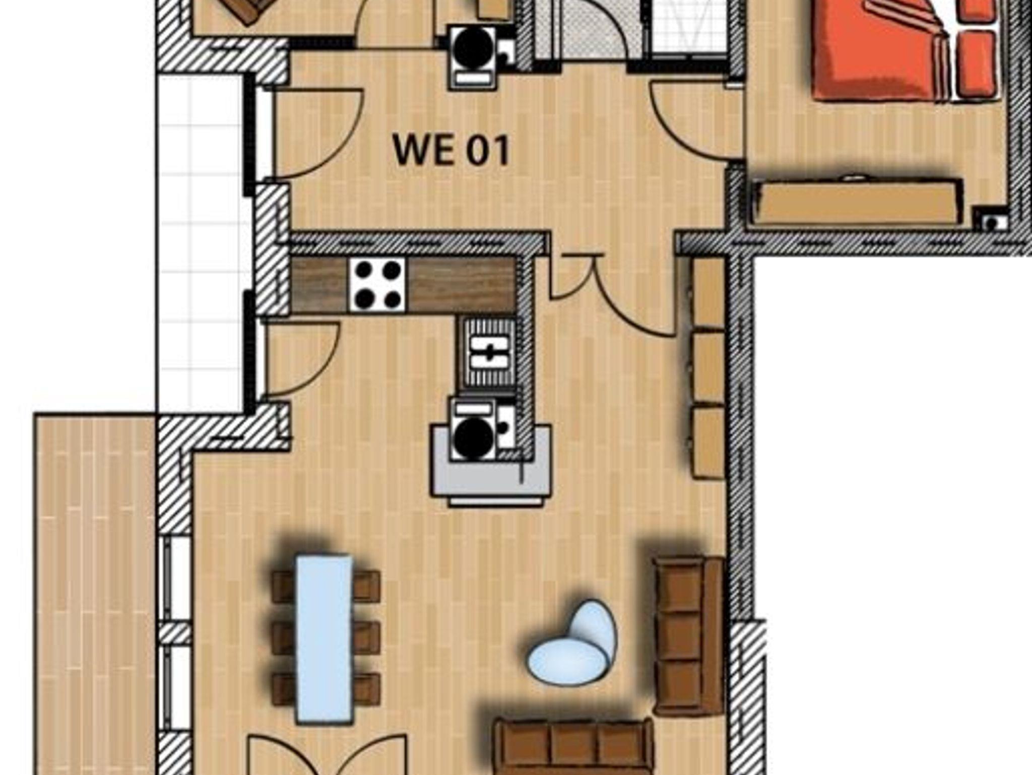 Zusätzlich gehören ein kostenfreier PKW-Stellplatz, Fahrradständer und eine Terrasse zur Wohnung. Mit einem natürlichen Sichtschutz umgeben können Sie hier ungestörte Sonnenstunden genießen.