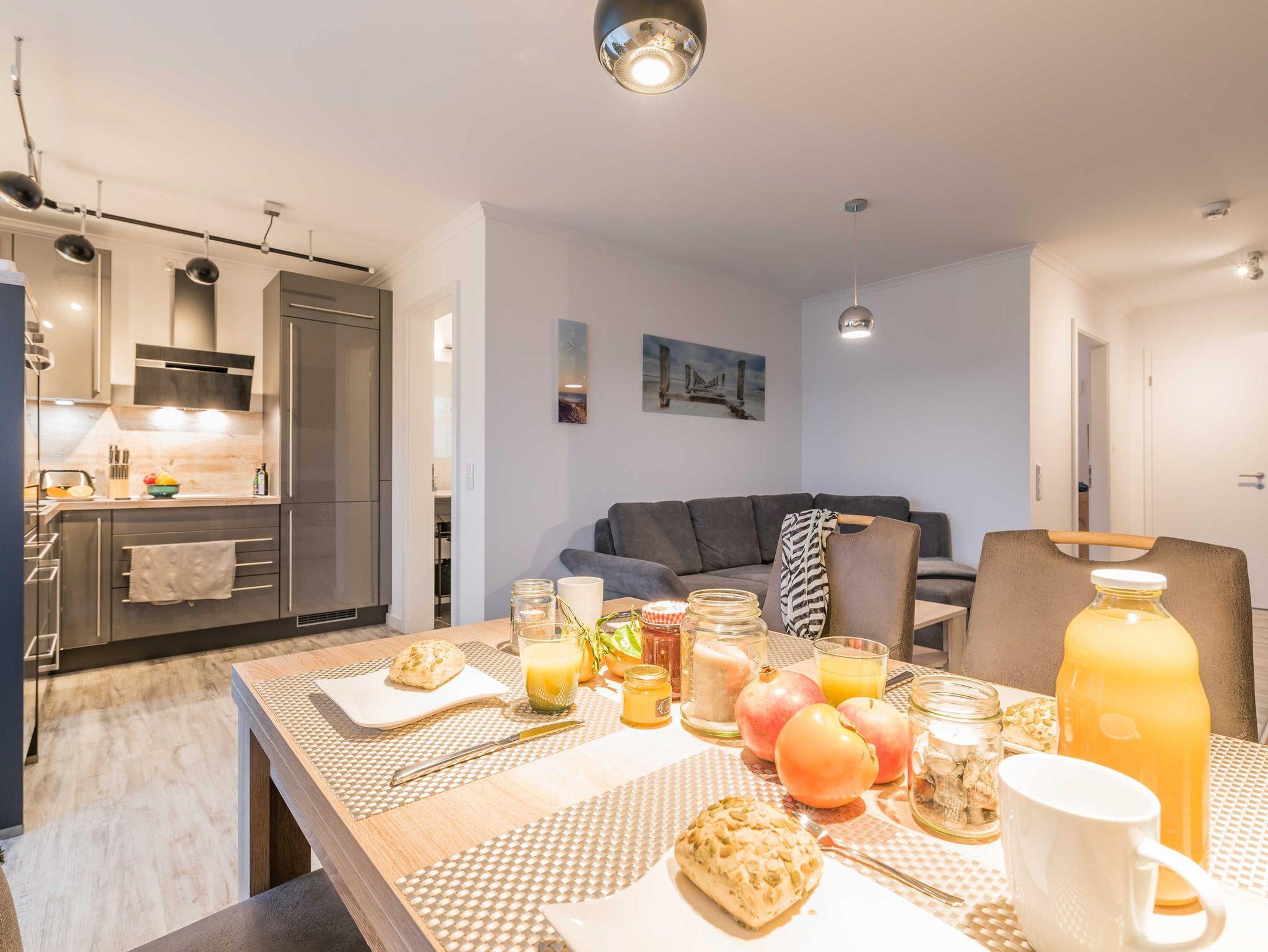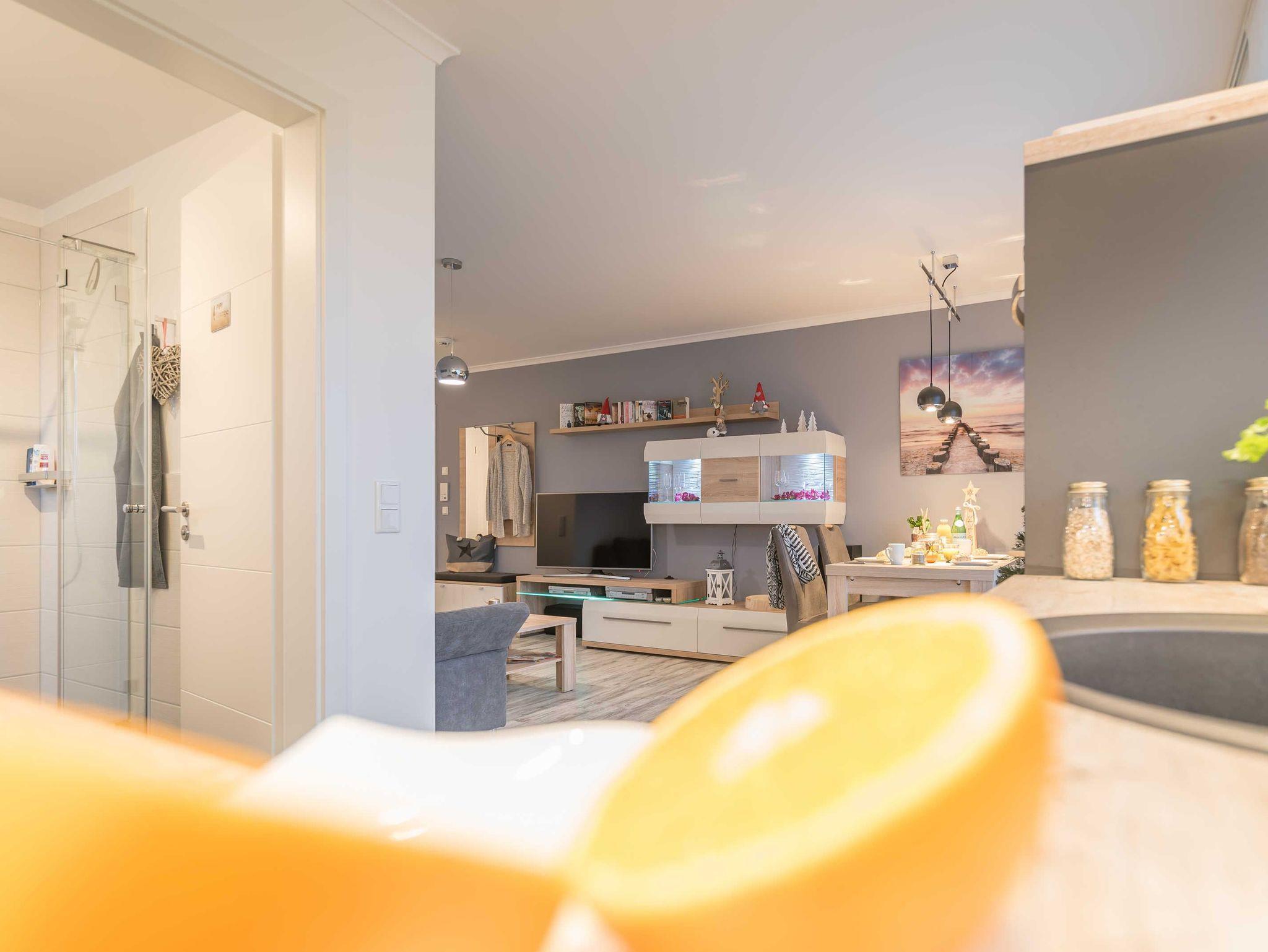 Die liebevoll eingerichtete 2-Zimmer-Wohnung befindet sich im Erdgeschoss der neu erbauten Villa Cara in der Seestraße 56 und bietet genug Platz für bis zu zwei Personen. Vom Wohnraum aus haben Sie Zugang zur 8m² großen Terrasse. Von hier können Sie den Blick Richtung Deich oder den Sonnenuntergang genießen und den Tag beginnen oder enden lassen.
