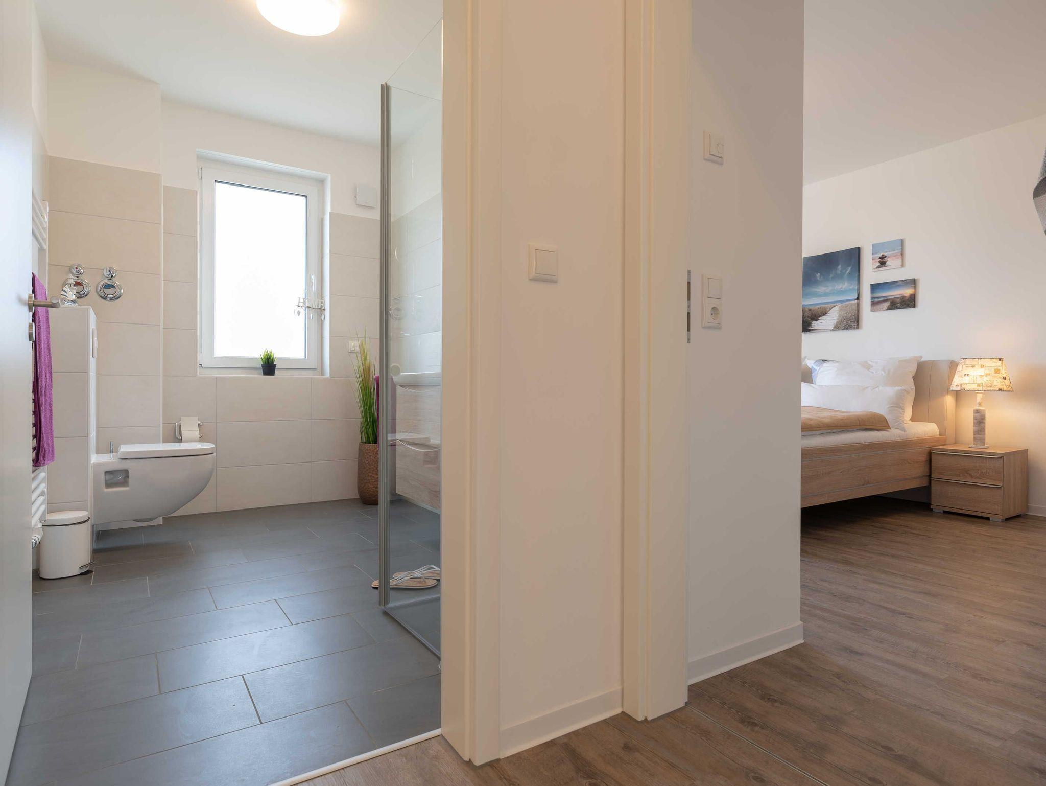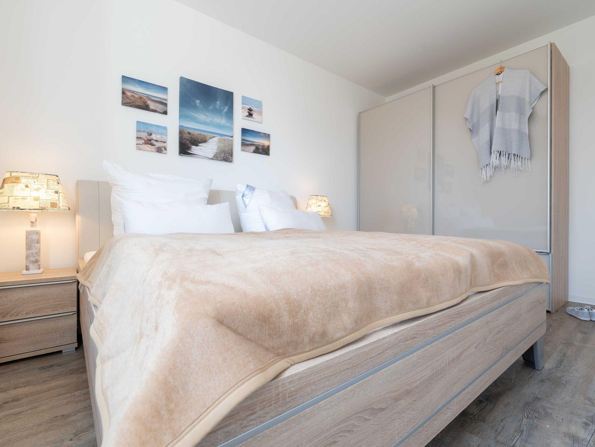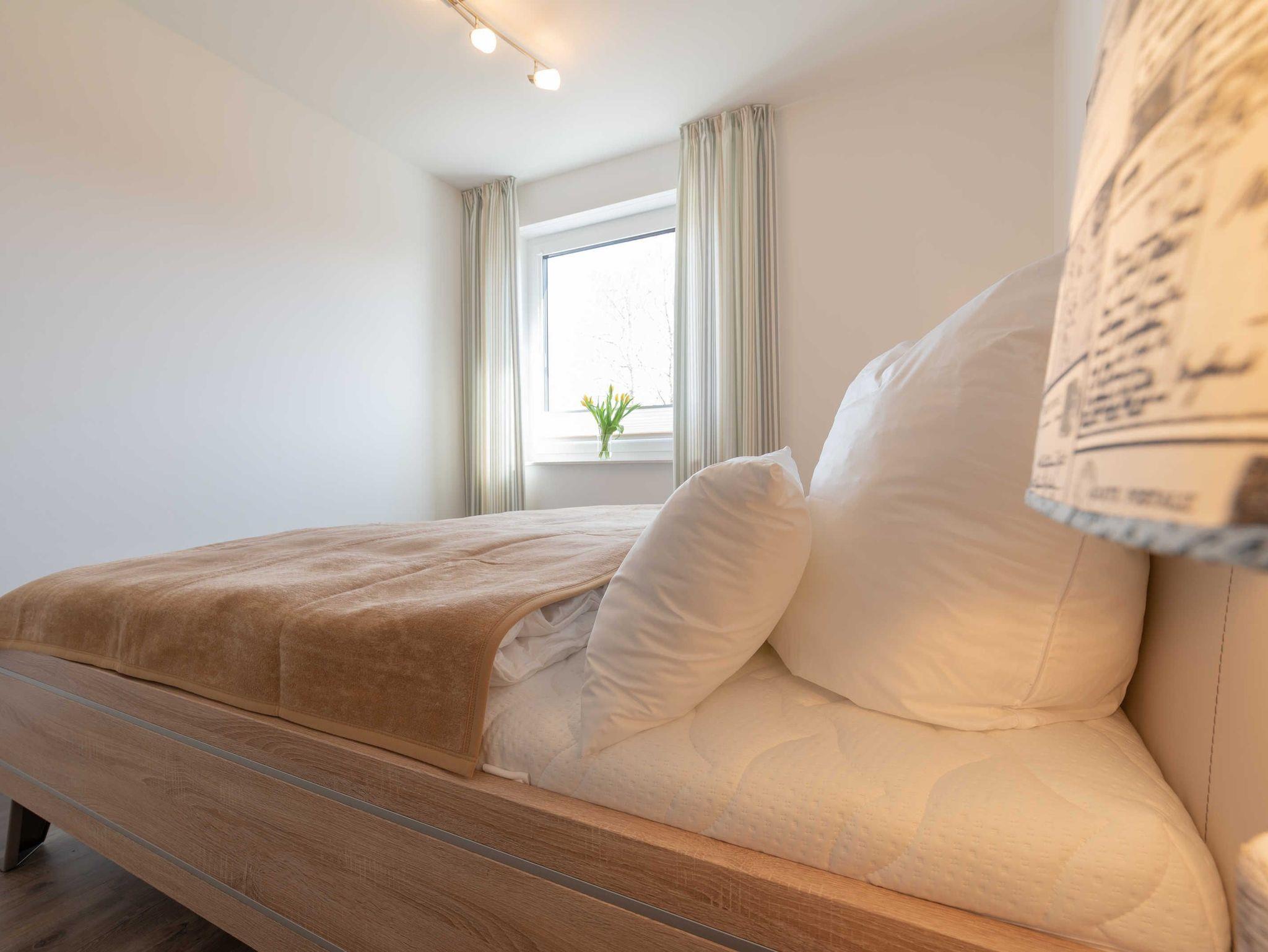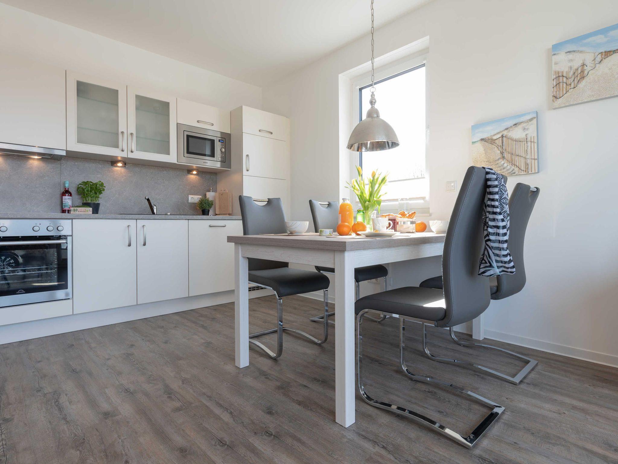 Das Apartment ist im maritimen Stil eingerichtet und verfügt über einen Wohn-/Essbereich mit integrierter Küchenzeile inkl. Kühlschrank, Ceranfeld, Backofen, Mikrowelle, Geschirrspüler und Dunstabzugshaube. Das helle Bad besticht mit ebenerdiger Dusche und eigenem Fenster. In den Schlafräumen sorgen ein Doppelbett (180 x 200 cm) und zwei Einzelbetten (je 100 x 200 cm) für süße Träume. Im Wohnbereich und im Schlafraum mit den getrennten Betten sind Flachbildfernseher installiert. Vom Wohnzimmer gelangen Sie auf den herrlichen Balkon mit Süd-West-Ausrichtung und gemütlicher Sitzaustattung. Ein kostenfreier KFZ-Stellplatz und ein eigener Fahrradabstellraum befinden sich auf dem Grundstück. Eine Fahrradvermietung und ein kleiner Kaufmannsladen sind vor Ort fußläufig zu erreichen. Der Strand von Börgerende ist nur 5 Gehminuten entfernt.