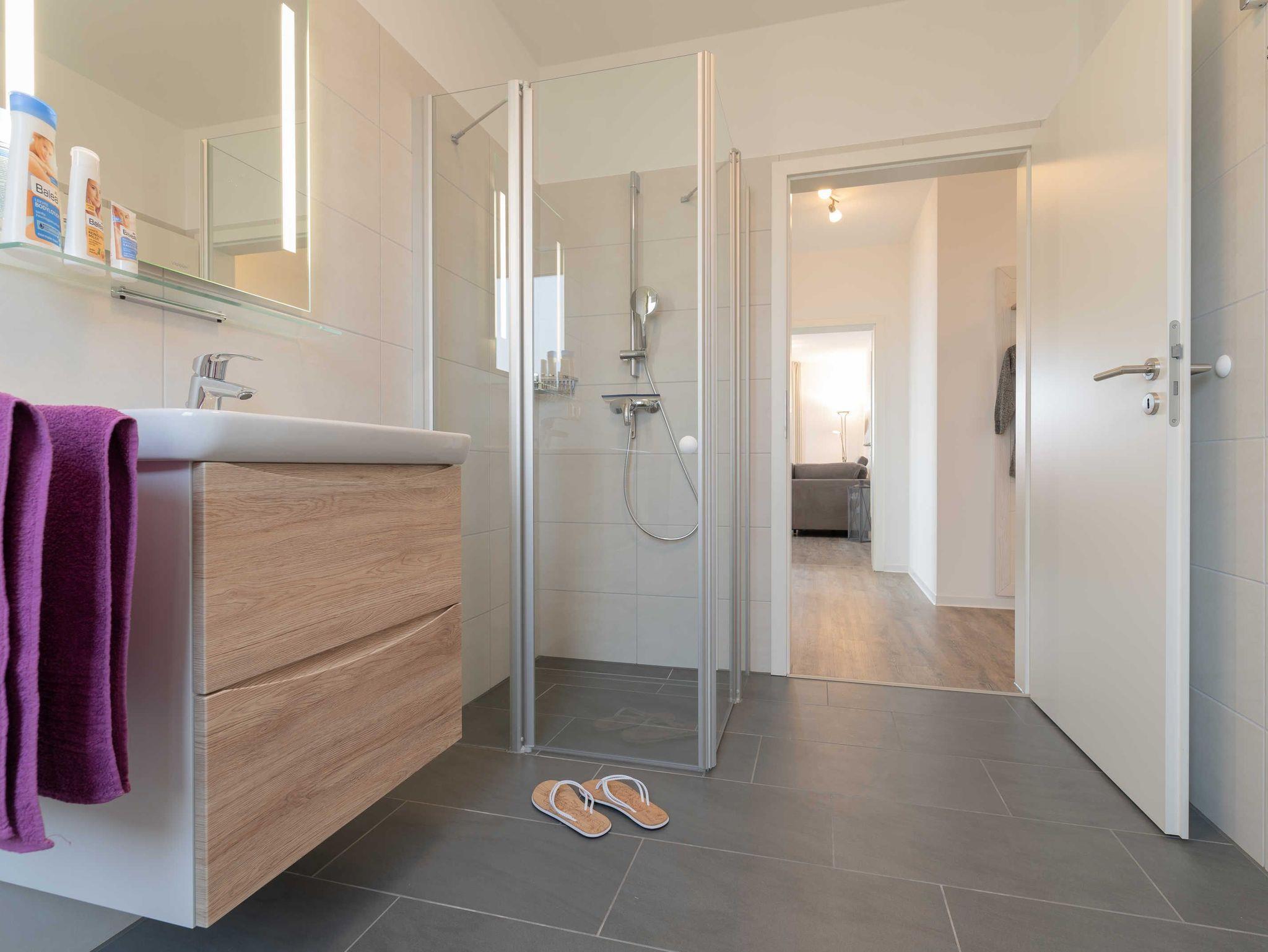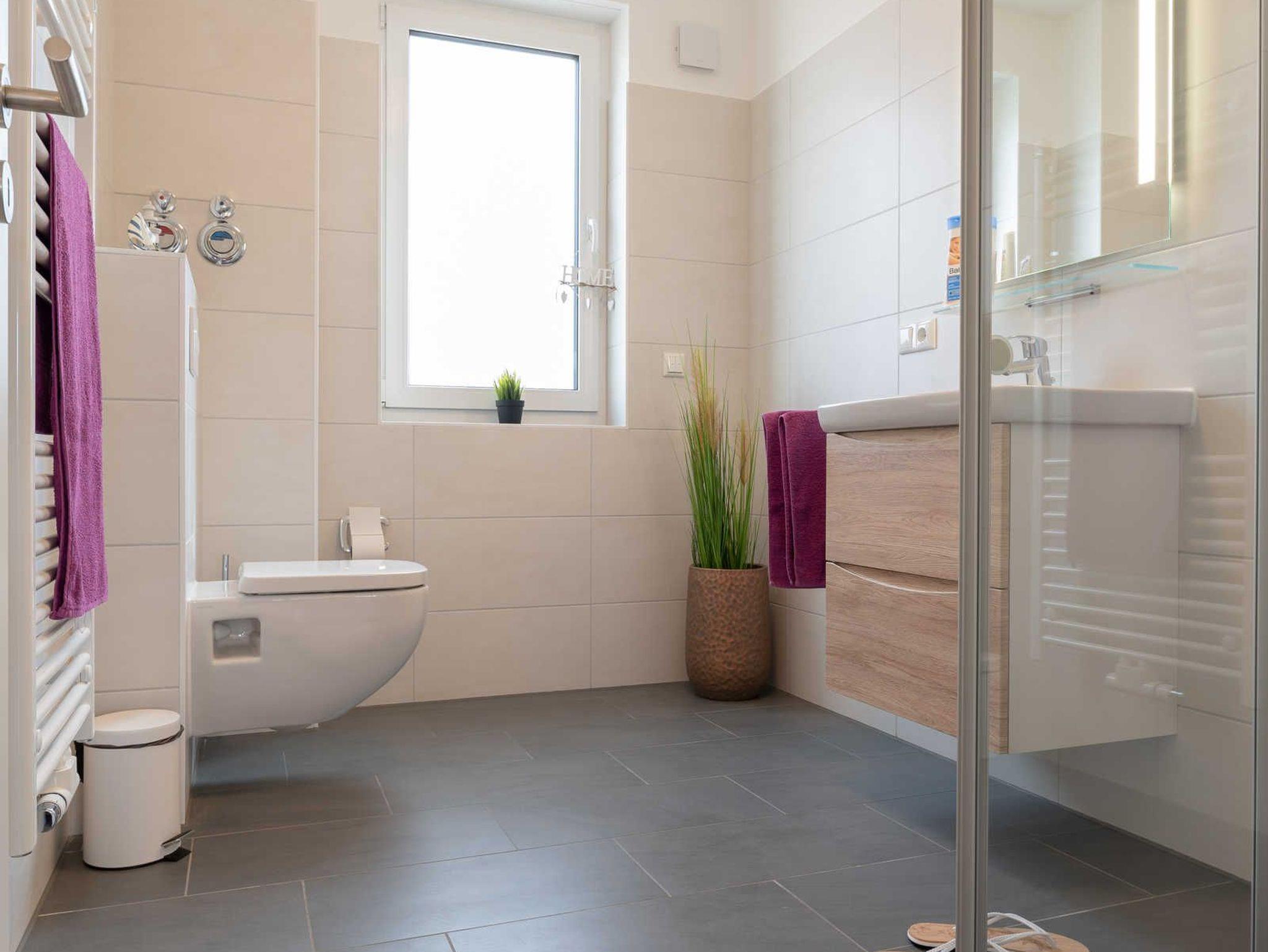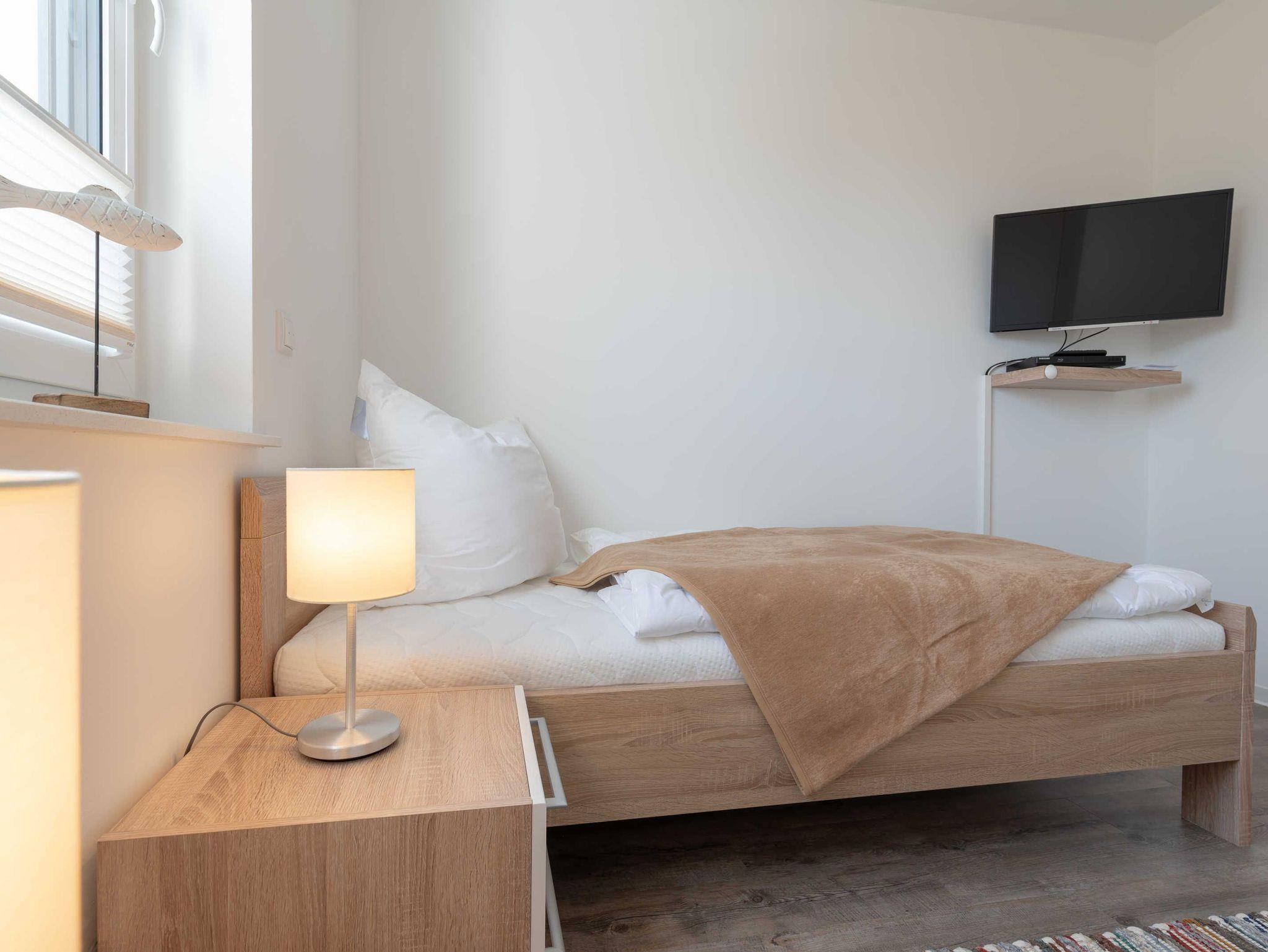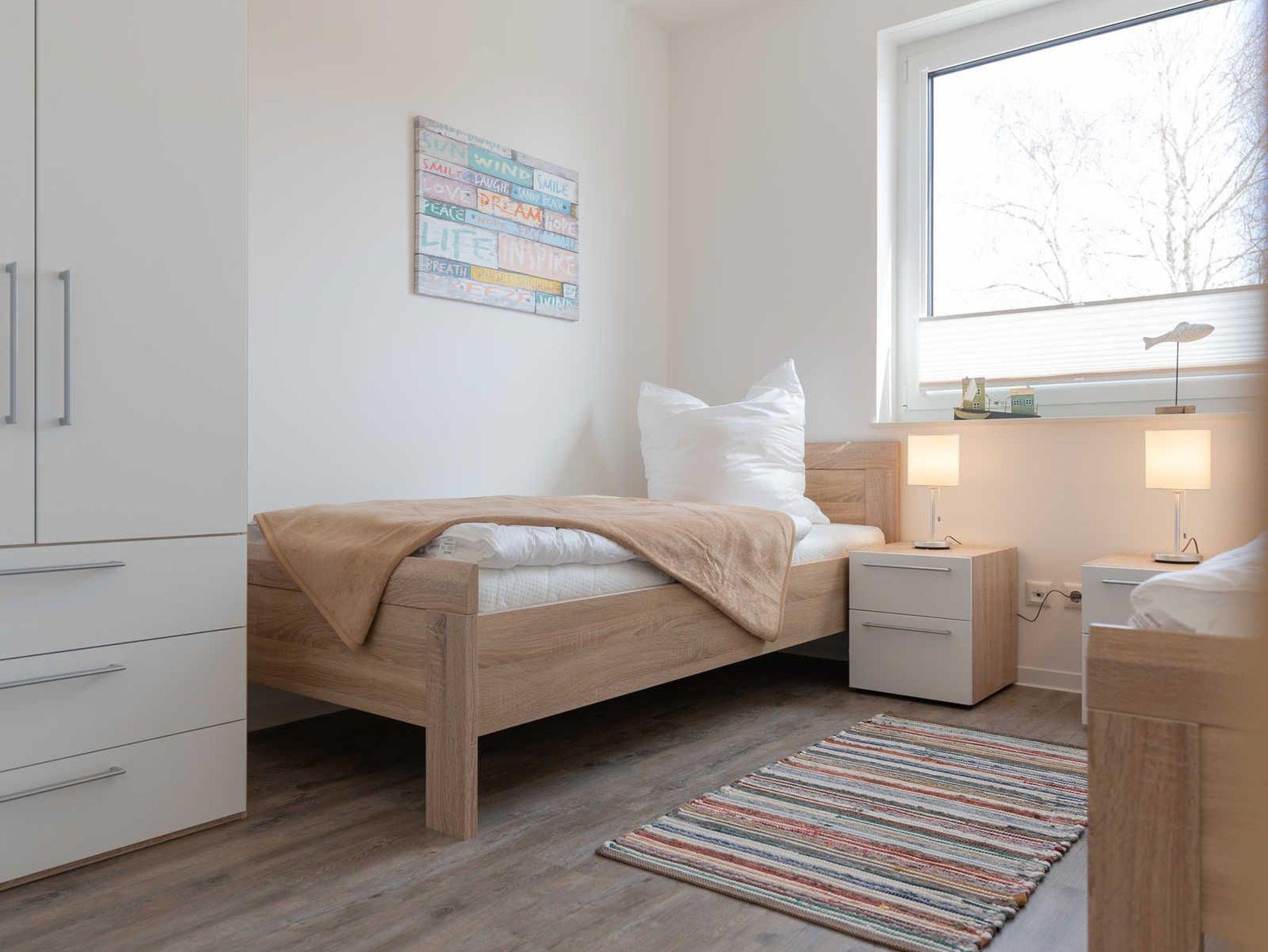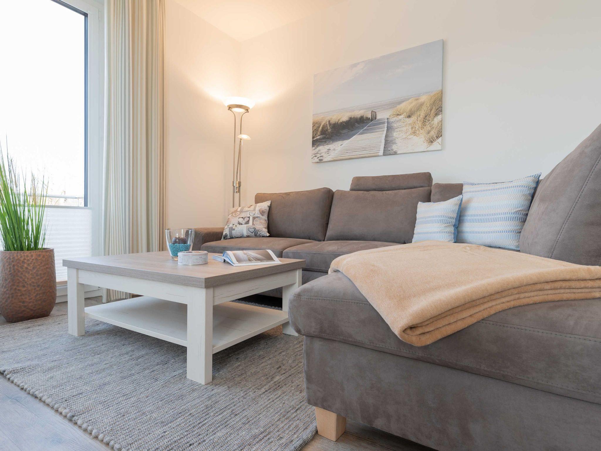 Das Apartment ist im maritimen Stil eingerichtet und verfügt über einen Wohn-/Essbereich mit integrierter Küchenzeile inkl. Kühlschrank, Ceranfeld, Backofen, Mikrowelle, Geschirrspüler und Dunstabzugshaube. Das helle Bad besticht mit ebenerdiger Dusche und eigenem Fenster. In den Schlafräumen sorgen ein Doppelbett (180 x 200 cm) und zwei Einzelbetten (je 100 x 200 cm) für süße Träume. Im Wohnbereich und im Schlafraum mit den getrennten Betten sind Flachbildfernseher installiert. Vom Wohnzimmer gelangen Sie auf den herrlichen Balkon mit Süd-West-Ausrichtung und gemütlicher Sitzaustattung. Ein kostenfreier KFZ-Stellplatz und ein eigener Fahrradabstellraum befinden sich auf dem Grundstück. Eine Fahrradvermietung und ein kleiner Kaufmannsladen sind vor Ort fußläufig zu erreichen. Der Strand von Börgerende ist nur 5 Gehminuten entfernt.