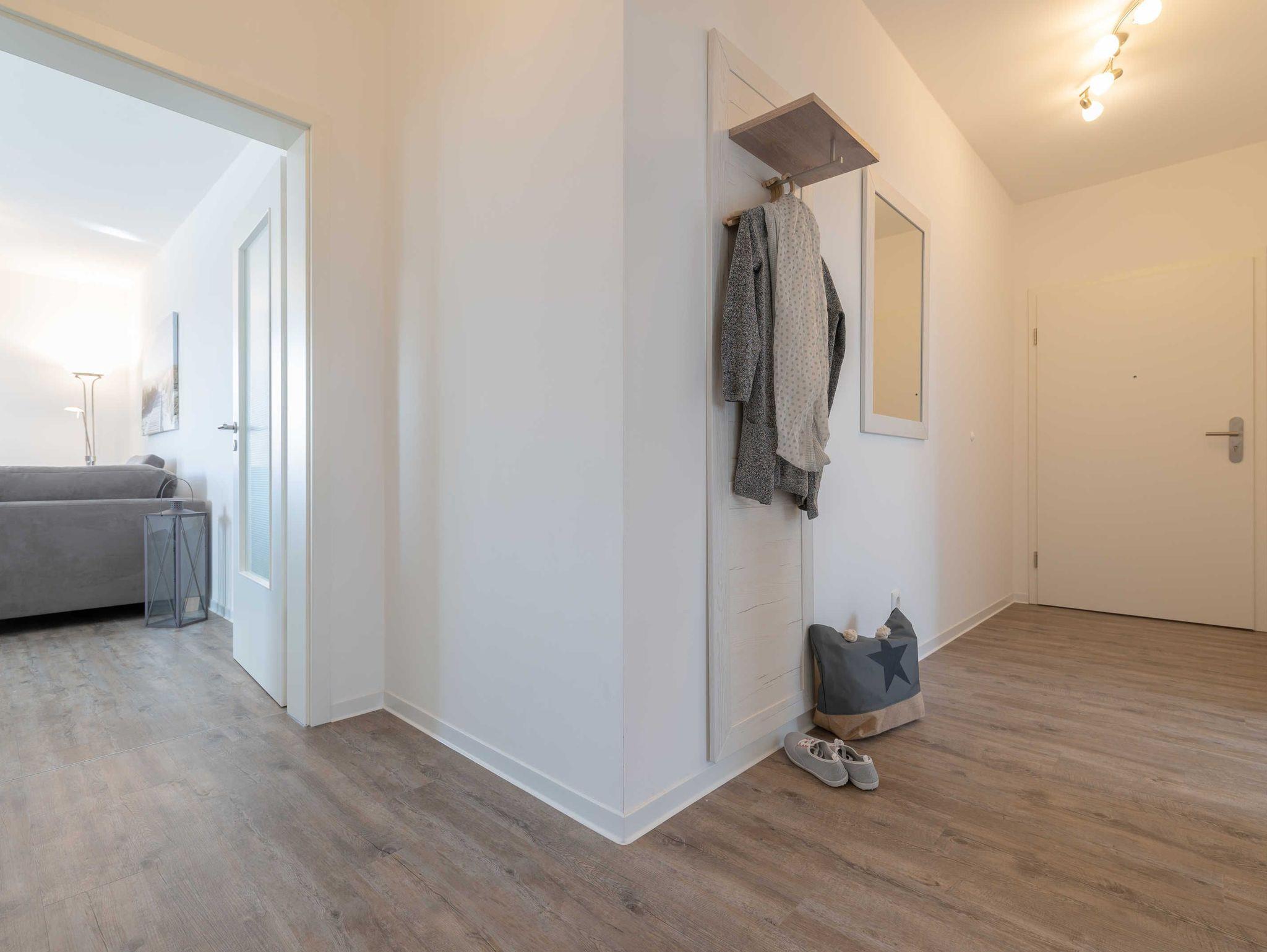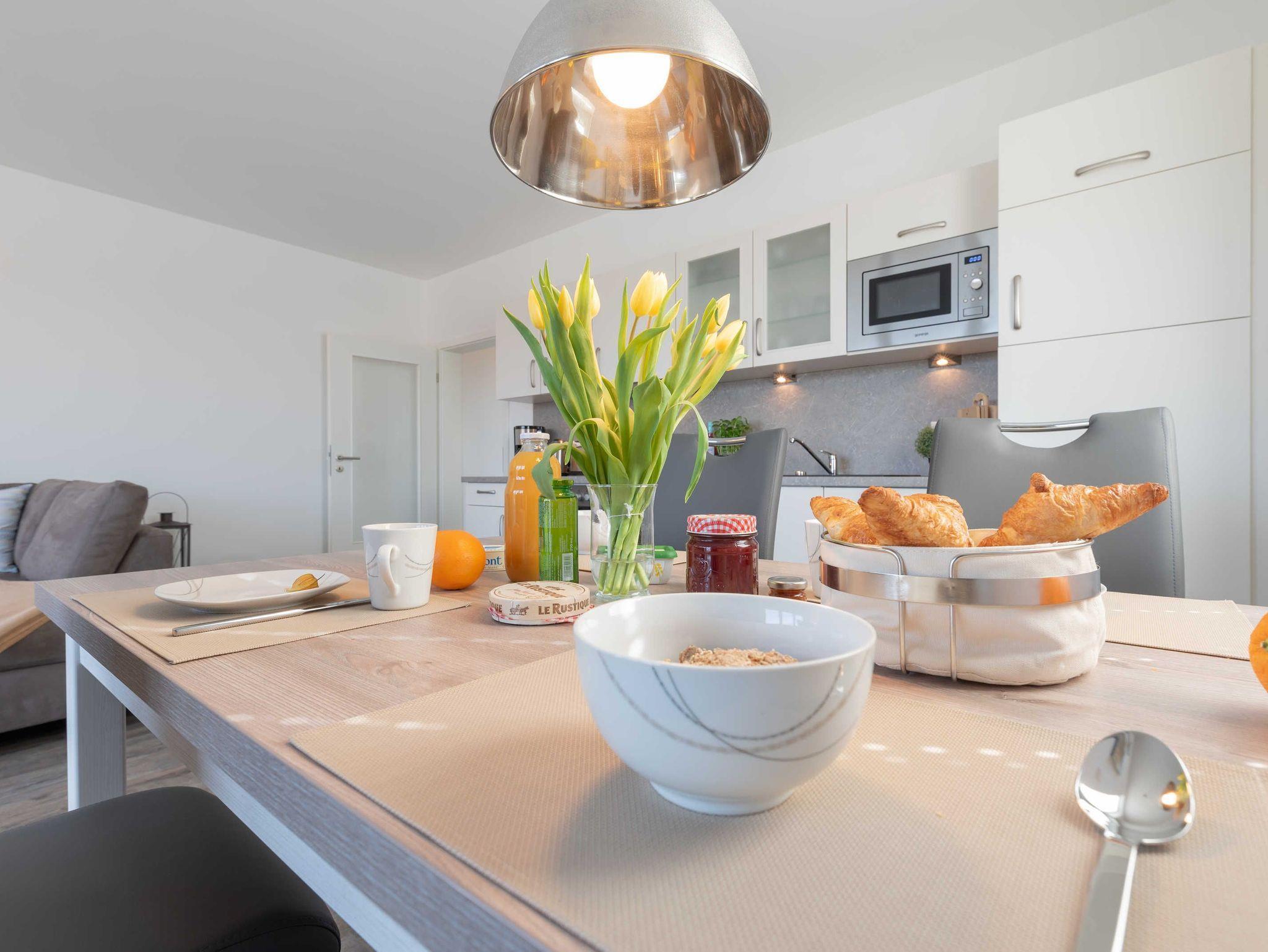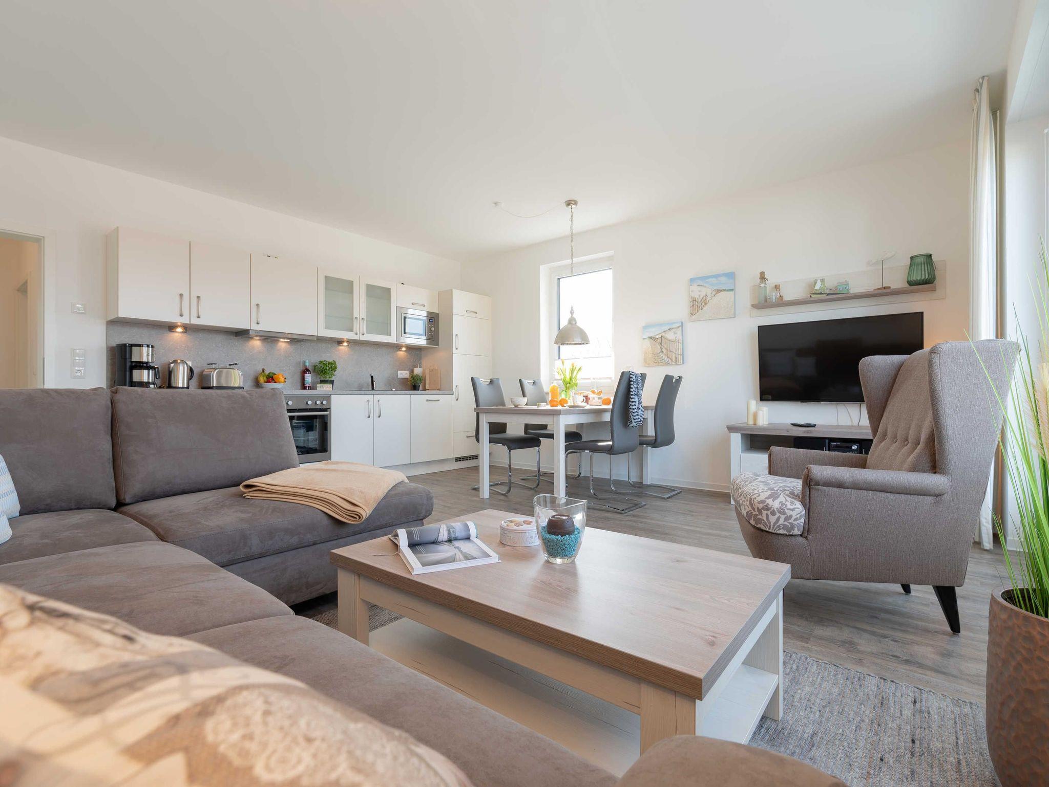 Modernes Apartment Baltic Cube in Börgerende mit Balkon, maritimem Stil und Strandnähe für entspannte Urlaubstage.
