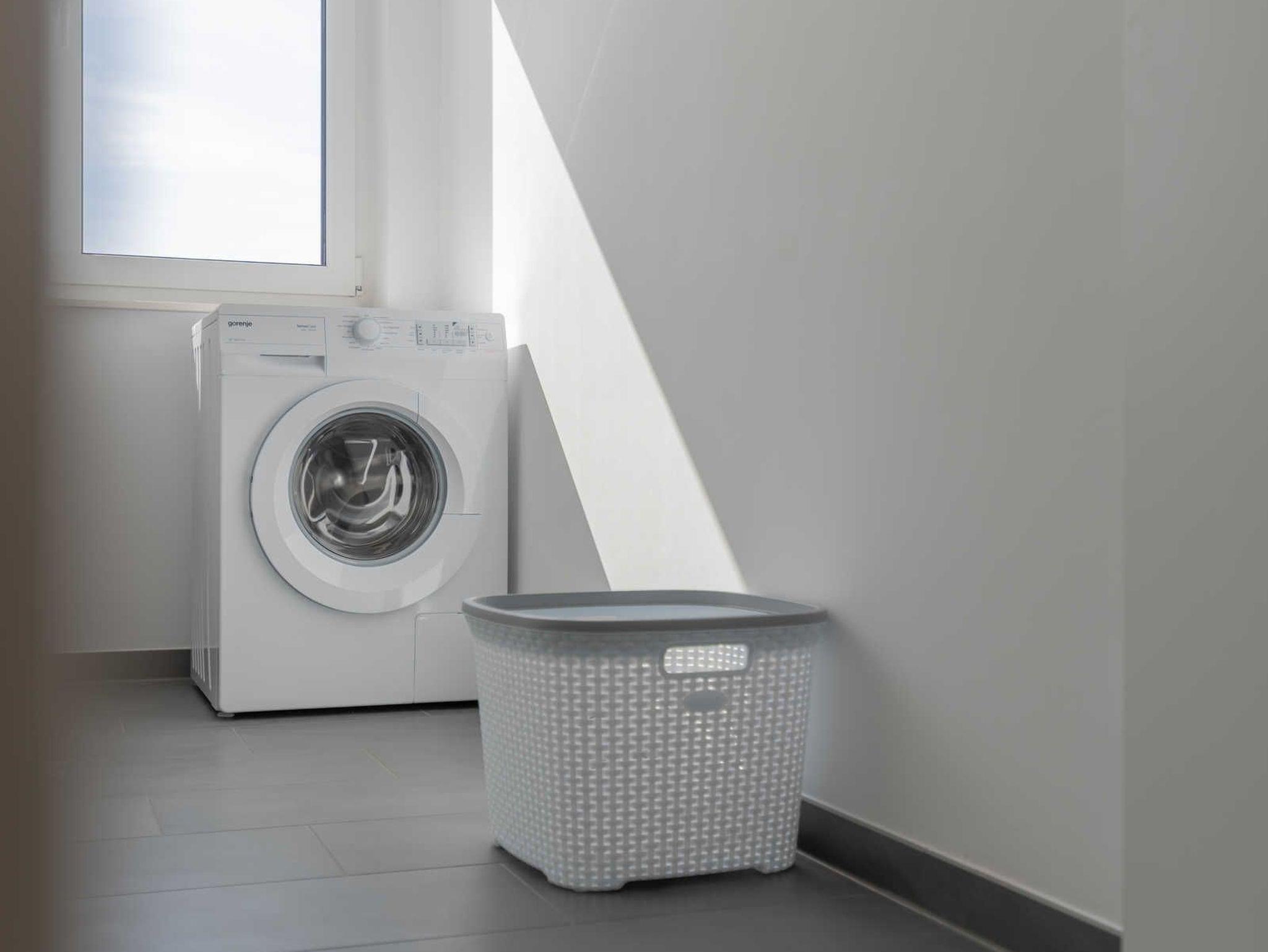 Im integrierten Abstellraum der Freienwohnung befindet sich eine Waschmaschine, um längere Aufenthalte angenehm zu gestalten. Wäscheset, Kinderreisebett und Kinderhochstuhl können kostenpflichtig zugebucht werden.