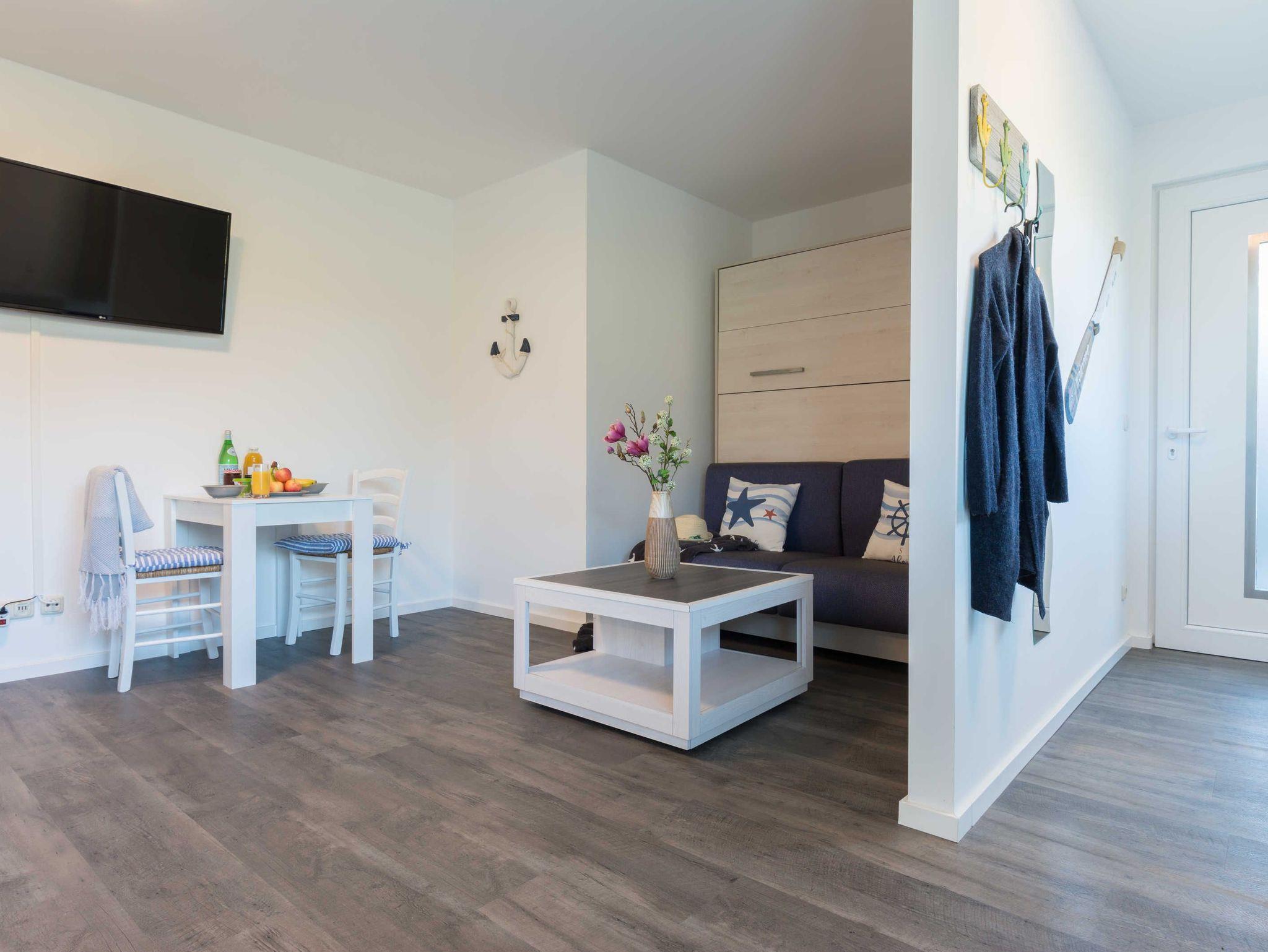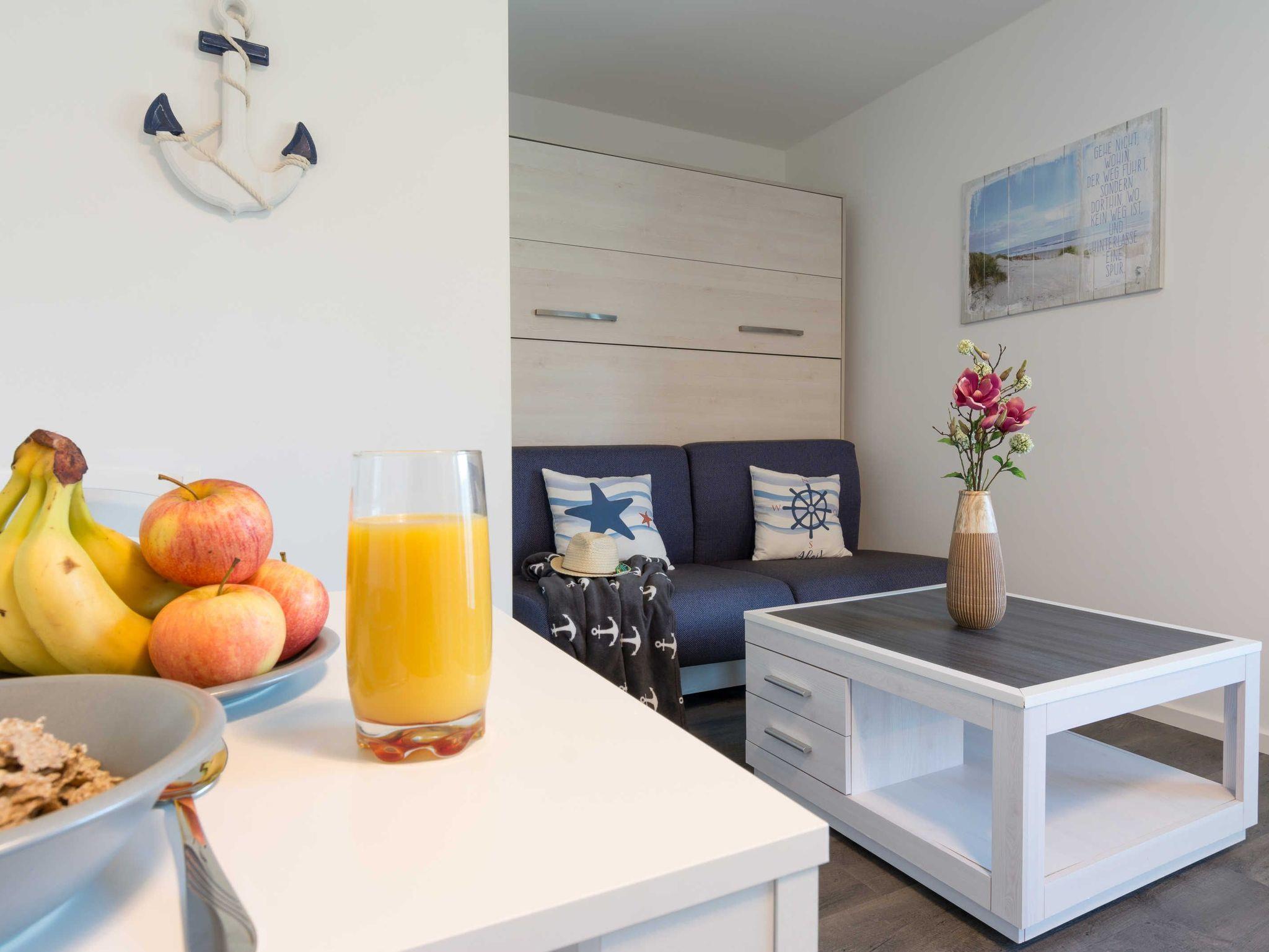 Gemütliches Einraumapartment in Börgerende mit moderner Küche und Strandnähe lädt zum erholsamen Urlaub zu zweit ein.