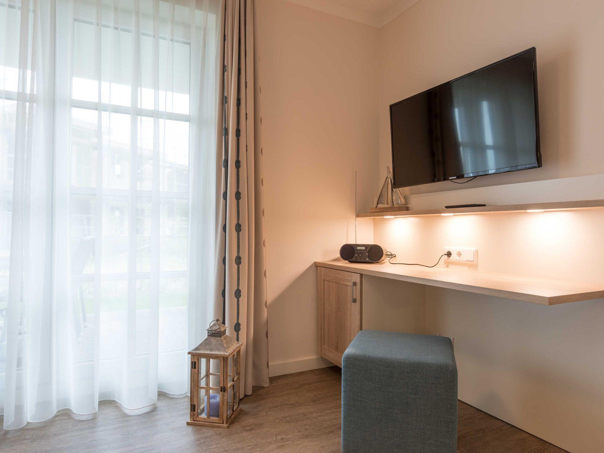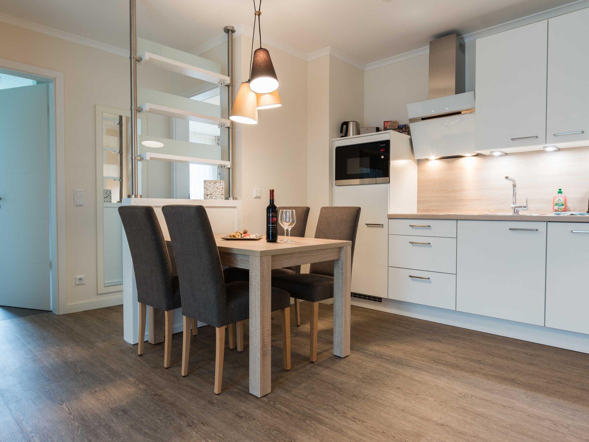 Neubau und Erstbelegung 2017! Die Wohnung bietet für vier Erwachsene ausreichend Platz und befindet sich im Erdgeschoss. Das Apartment verfügt über 1 Wohnzimmer und 2 Schlafräume. Die gut ausgestattete Einbauküche verfügt über einen großen Geschirrspüler, Kühlschrank mit Gefrierfach, Cerankochfeld, und eine Mikrowelle mit Grillfunktion.