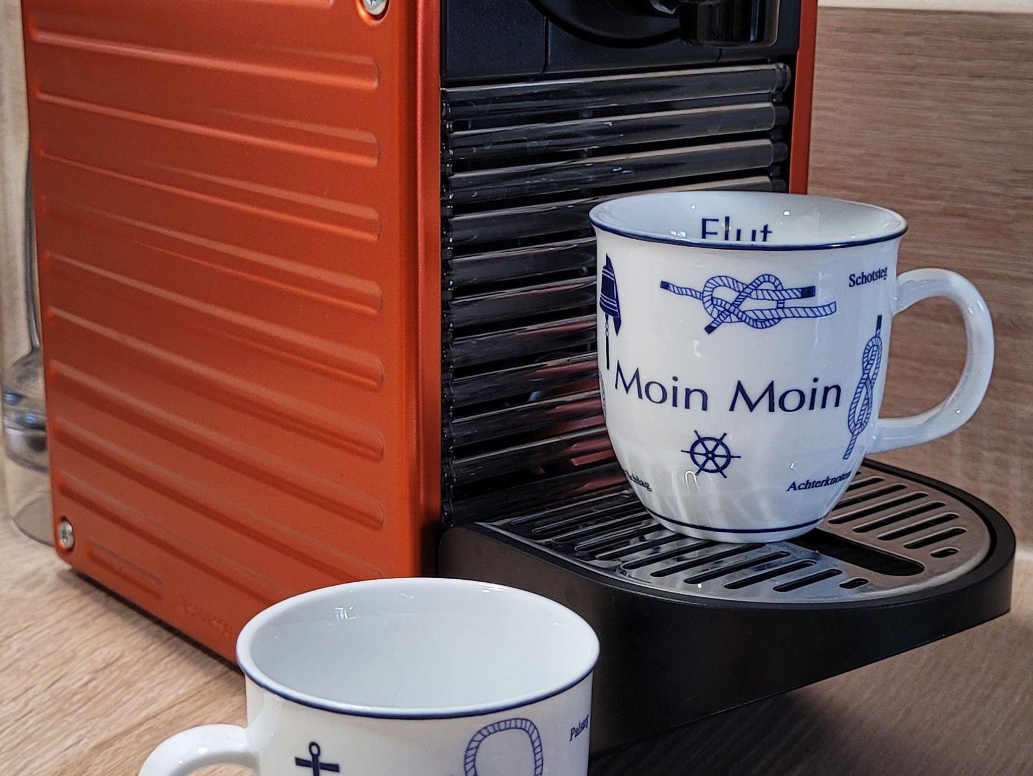 Toaster, Kaffeemaschine, Wasserkocher, ausreichend Geschirr und Gläser sind ebenfalls vorhanden.