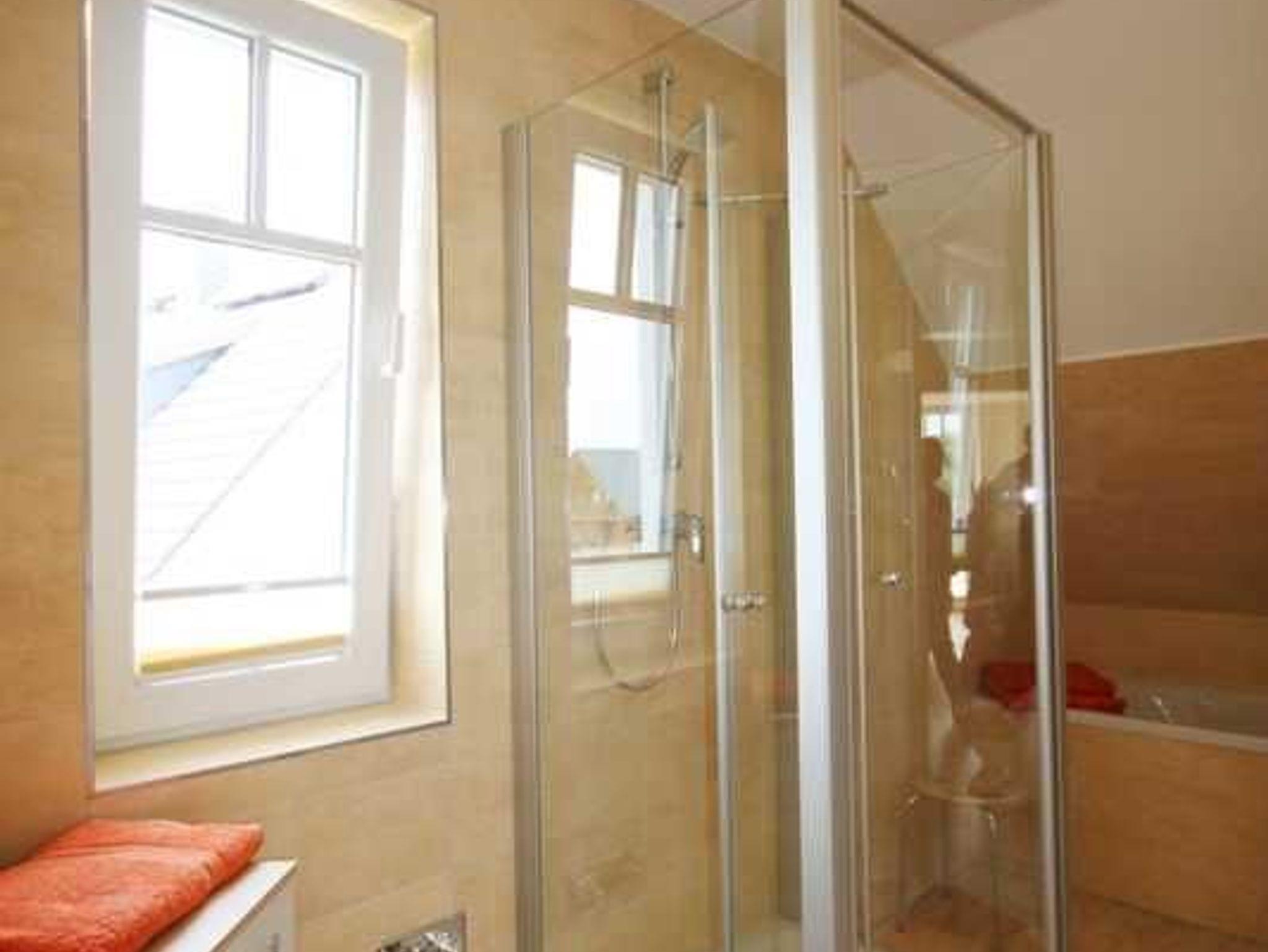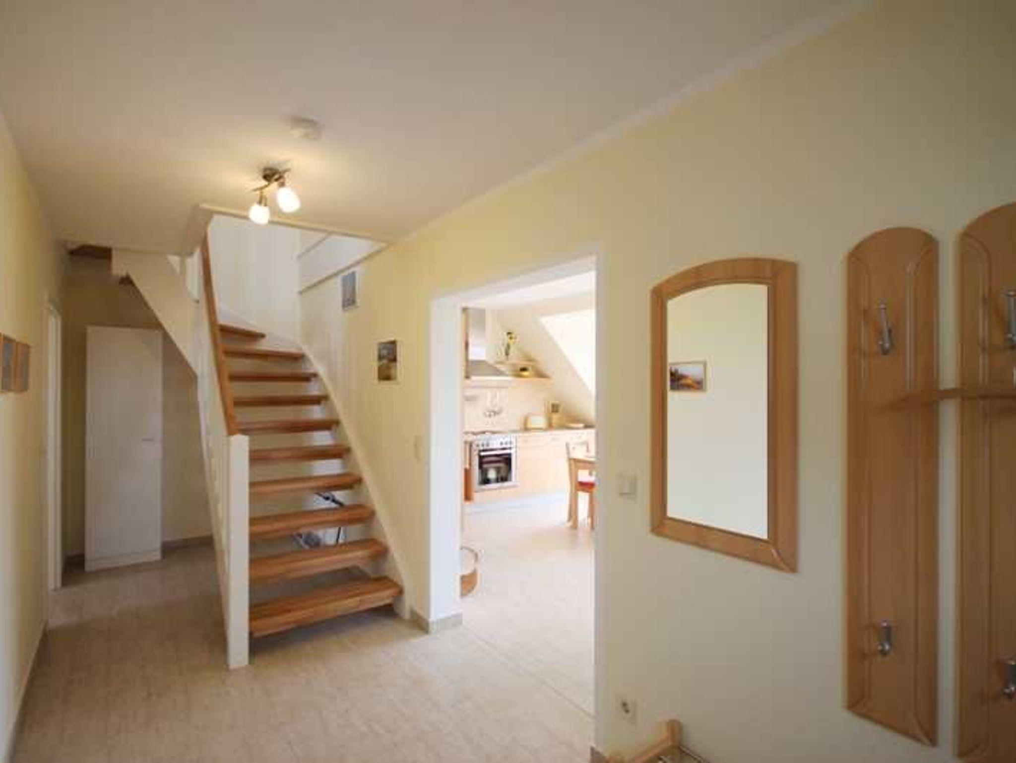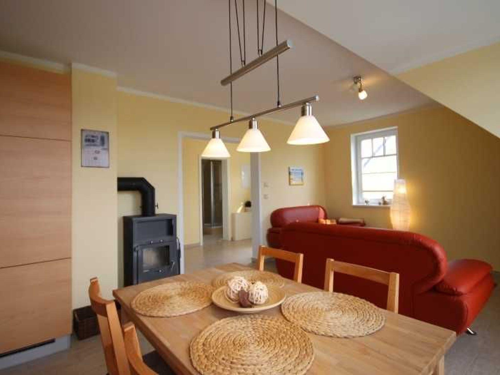 Die familienfreundlich ausgestattete Ferienwohnung im Obergeschoss verfügt über drei Zimmer, einen Kamin, einen sonnigen Balkon sowie Zugang zum Saunablockhaus im Garten und liegt nur etwa 250 m vom Ostseestrand entfernt.