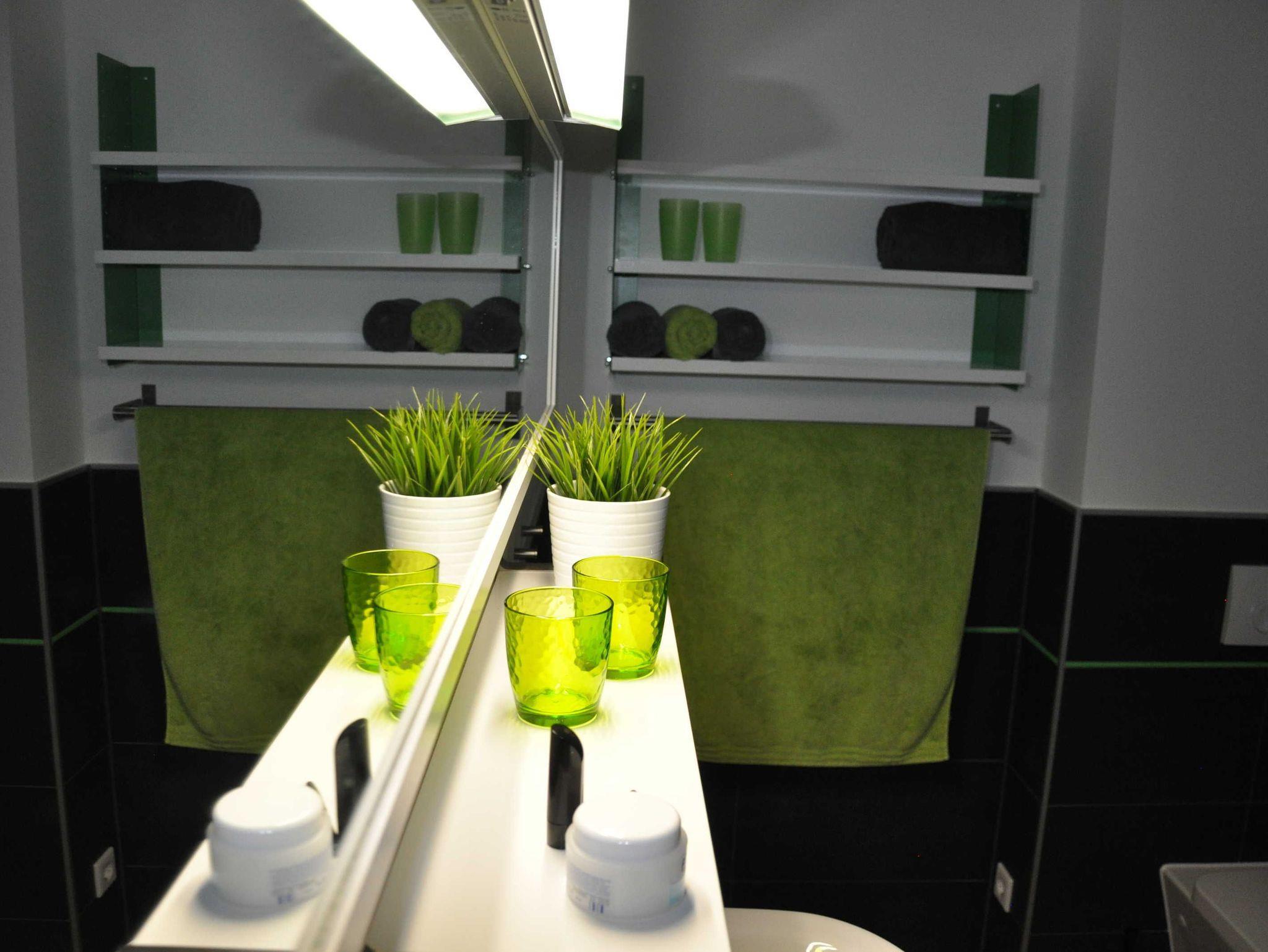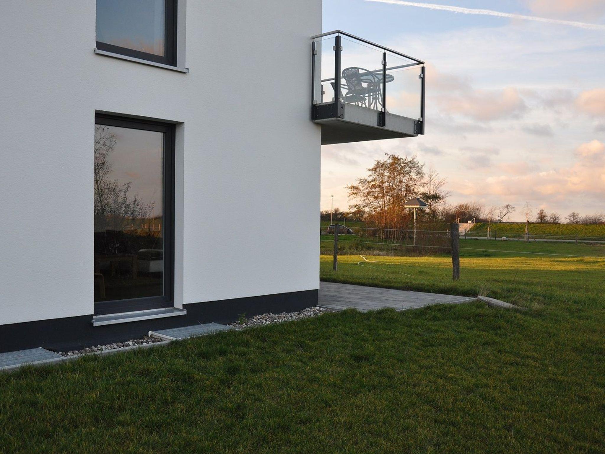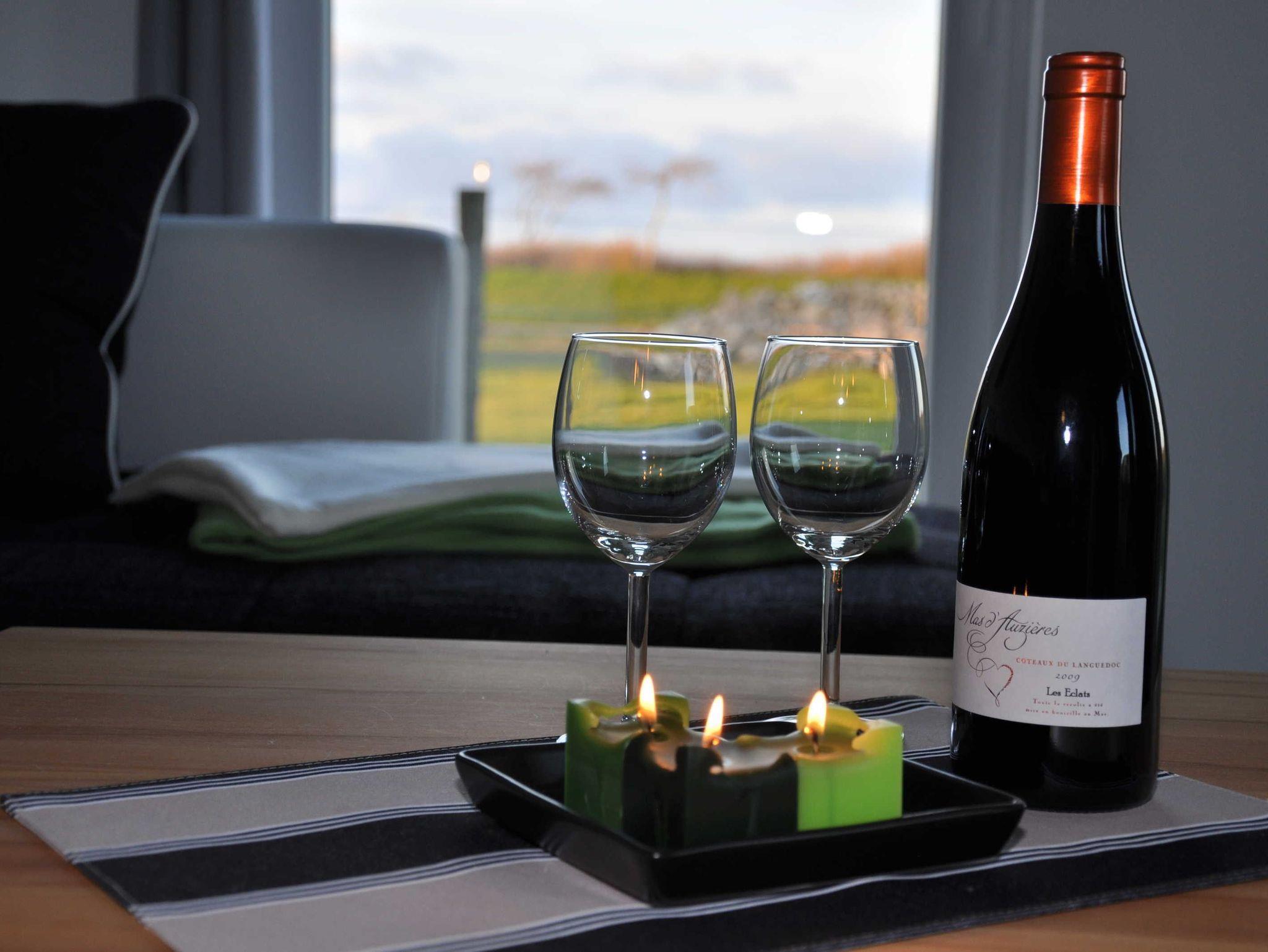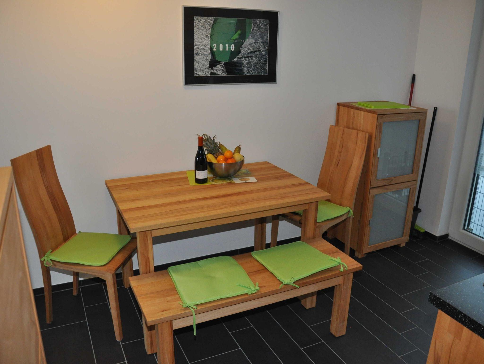 Die Wohnung bietet Ihren Gästen ein Schlafzimmer mit einem komfortablen Doppelbett (getrennte Matratzen) und ein großes Wohnzimmer mit einer bequemen Schlafcouch. Hier finden zwei weitere Personen bequem Platz. Die Ferienwohnung ist stilvoll eingerichtet. Für bunte Unterhaltung sorgen ein LED-TV und eine Stereoanlage. In der offenen Küche befindet sich eine komplett eingerichtete Einbauküche mit Backofen, Ceranfeld, Kühlschrank inklusive Gefrierfach, Geschirrspüler, Mikrowelle, Wasserkocher, Kaffeemaschine und Toaster. Das Bad mit Tageslicht verfügt über eine Dusche, eine große Spiegelfront, einen Föhn und mehrere Abstellmöglichkeiten. In der kompletten Wohnung ist eine Fußbodenheizung installiert und von jedem Zimmer aus können Sie nach außen auf die Terrasse gelangen. Starten Sie Ihren Tag mit frischen Brötchen und den Klängen der umliegenden Natur.