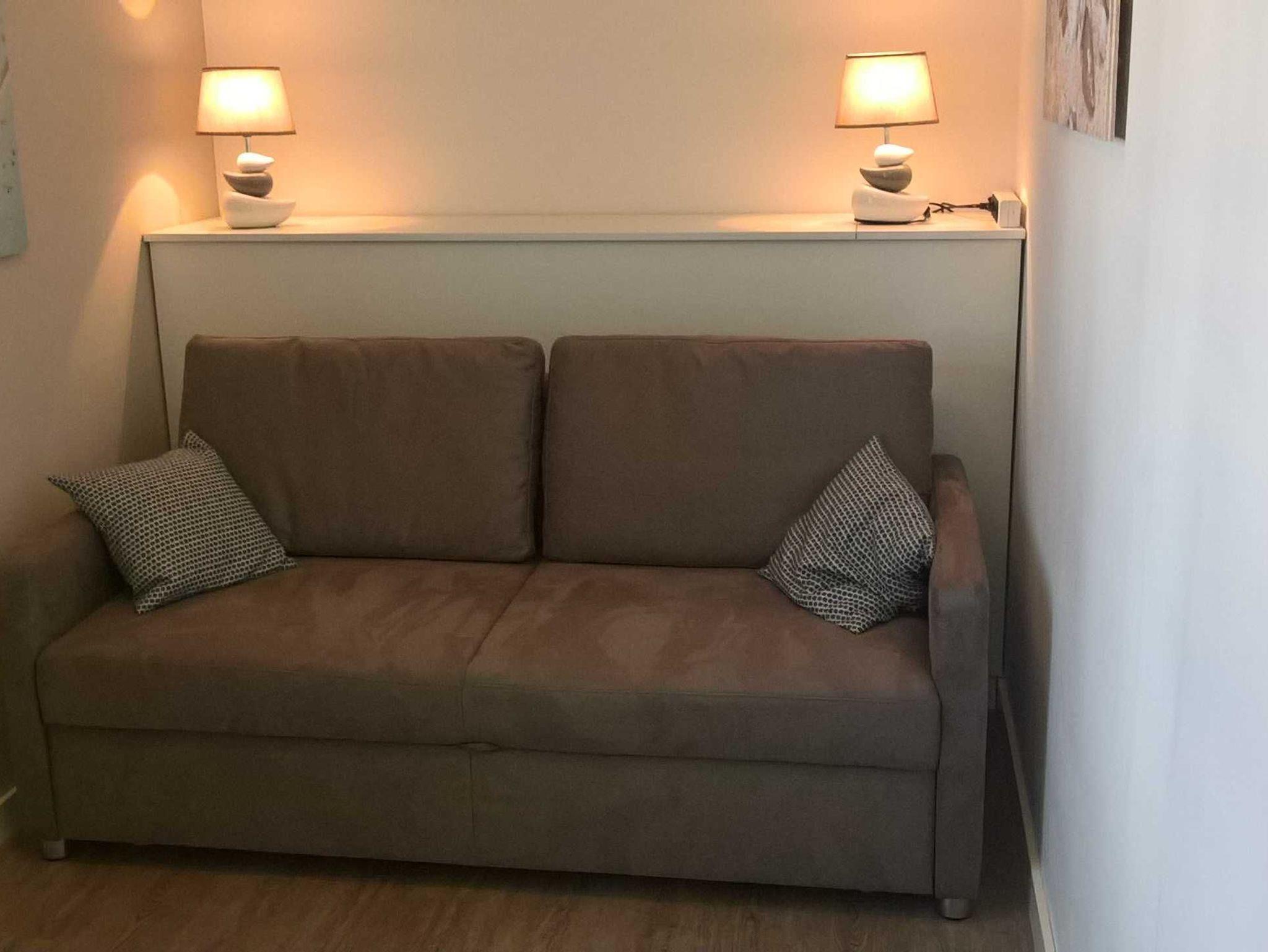 Die komplett ausgestattete Einbauküche verfügt über einen Geschirrspüler, einen Kühlschrank mit Gefrierfach, einen Backofen, ein Cerankochfeld, Toaster, Kaffeemaschine und einen Wasserkocher. Geschirr und Gläser sind in ausreichender Zahl vorhanden.