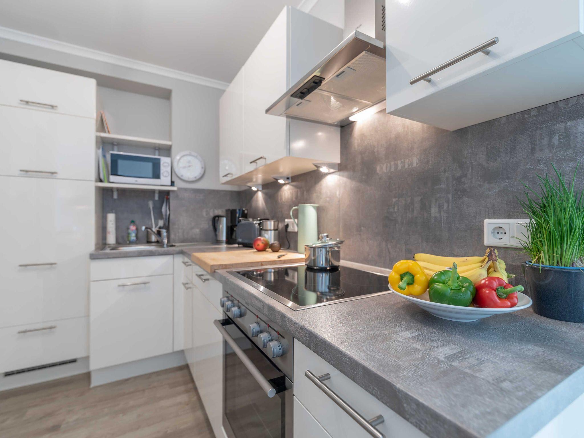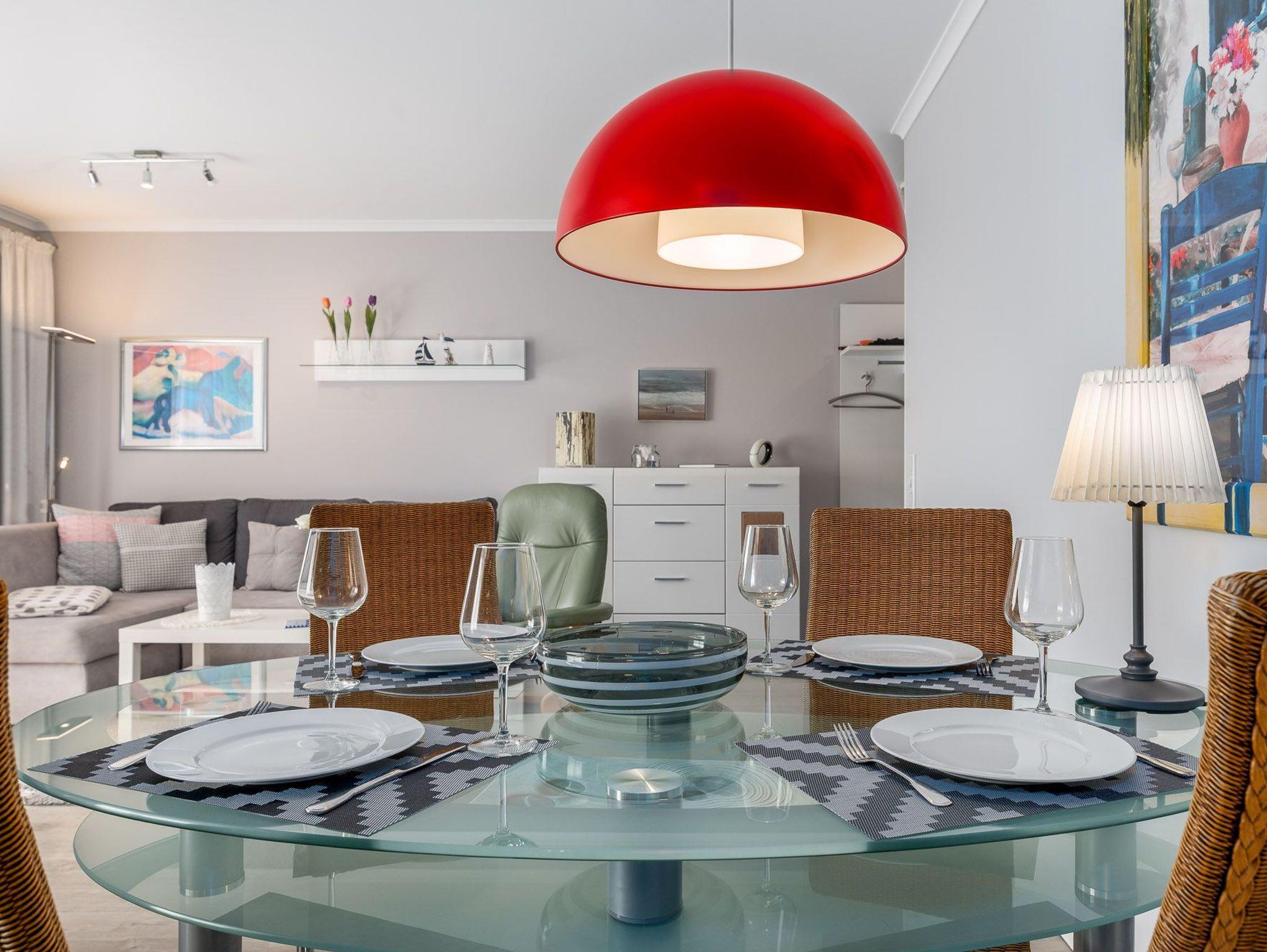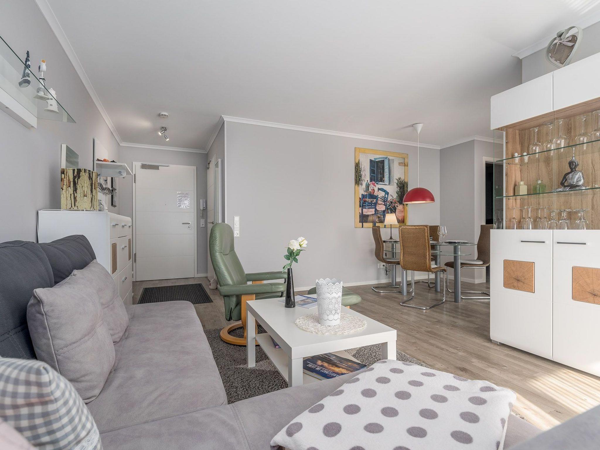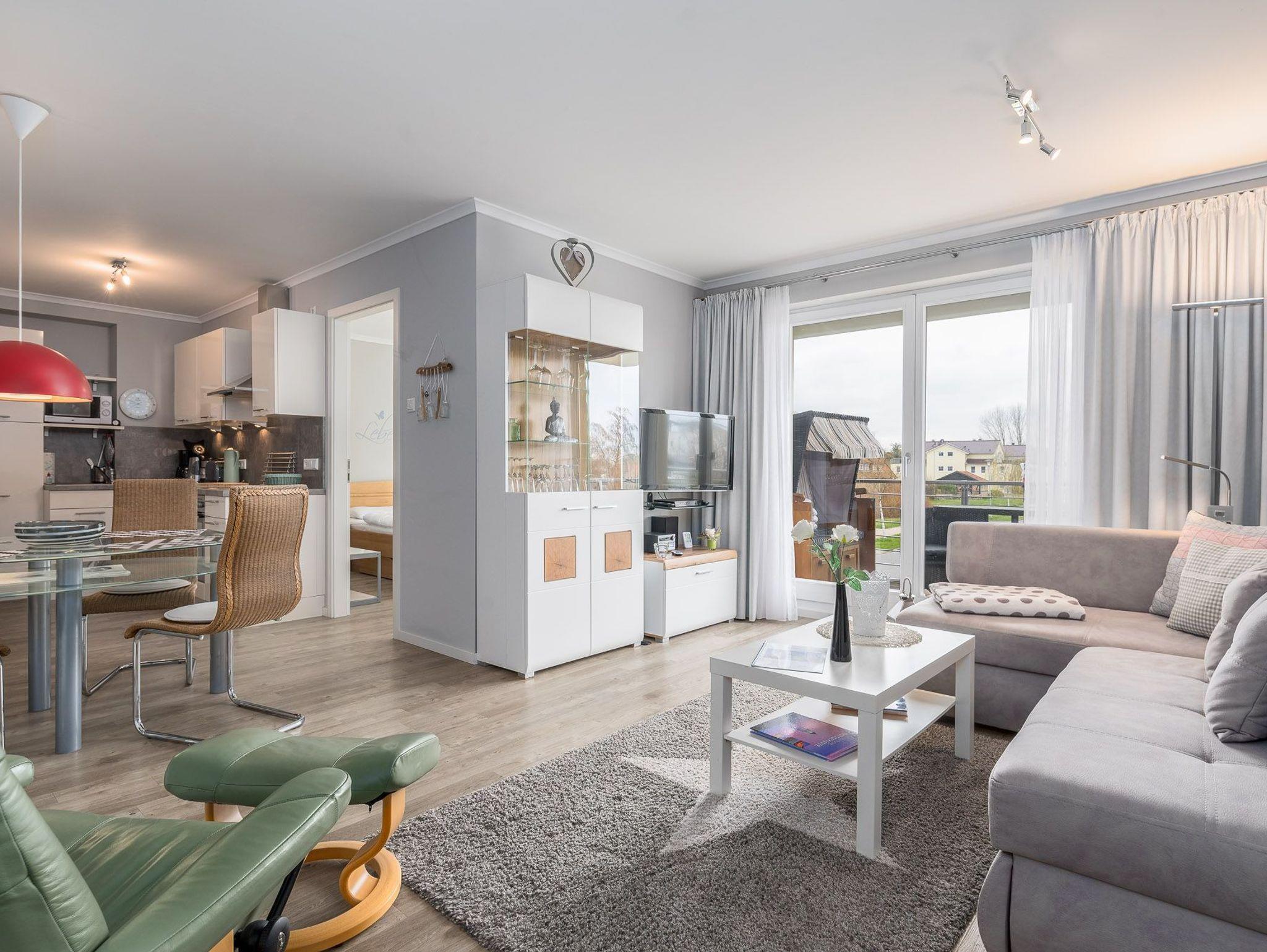 Geschmackvolle Zwei-Zimmer-Wohnung mit Balkon und Strandkorb in Börgerende-Rethwisch, nur wenige Schritte vom Ostseestrand entfernt.