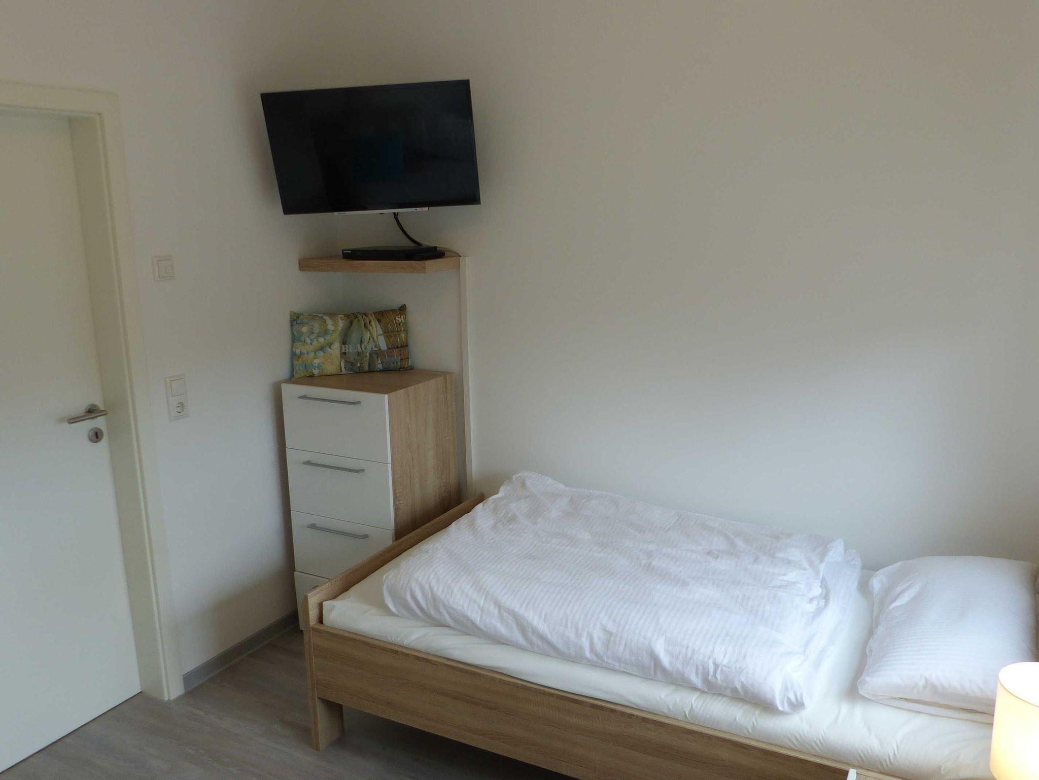 Das größere Schlafzimmer empfängt Sie mit einem gemütlichen Doppelbett. Das kleinere Zimmer ist mit zwei Einzelbetten und einem Fernseher mit DVD/Blu-Ray-Player ausgestattet. In beiden Räumen gibt es genügend Stauraum für Ihr Gepäck. Ein Kinderreisebett sowie ein Wäscheset pro Person können kostenpflichtig zugebucht werden.