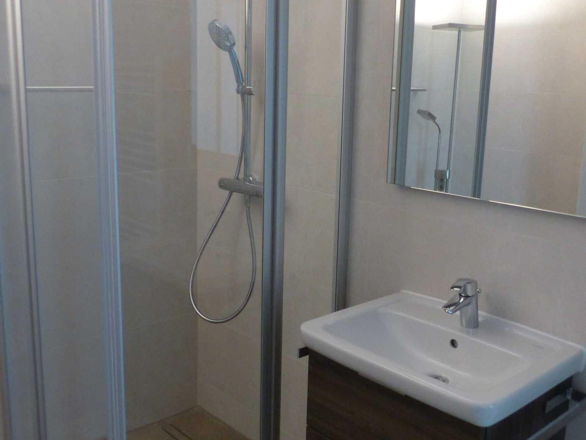 Das Badezimmer ist mit einer bodengleichen Dusche, einem Fön und einer Waschmaschine ausgestattet. Wäscheständer, Bügeleisen, Bügelbrett und Staubsauger sind im großzügigen Abstellraum der Wohnung vorhanden. Zur Wohnung gehören zudem ein kostenfreier PKW-Stellplatz, sowie ein Außenabstellraum, in dem Fahrräder sicher untergebracht werden können. Eine Fahrradvermietung ist vor Ort fußläufig zu erreichen.