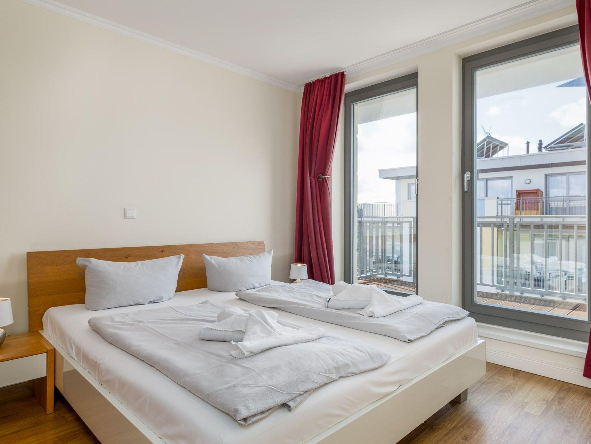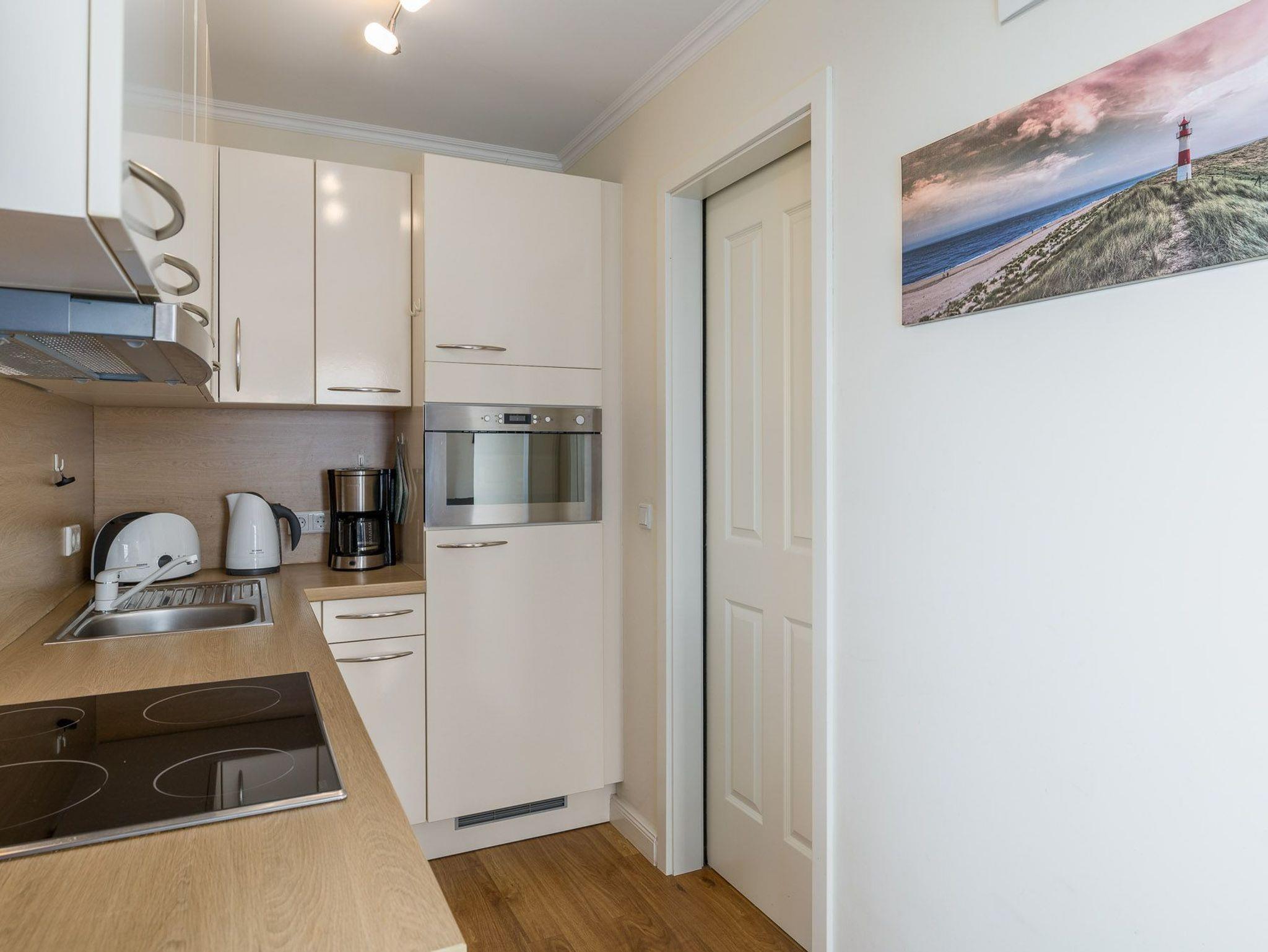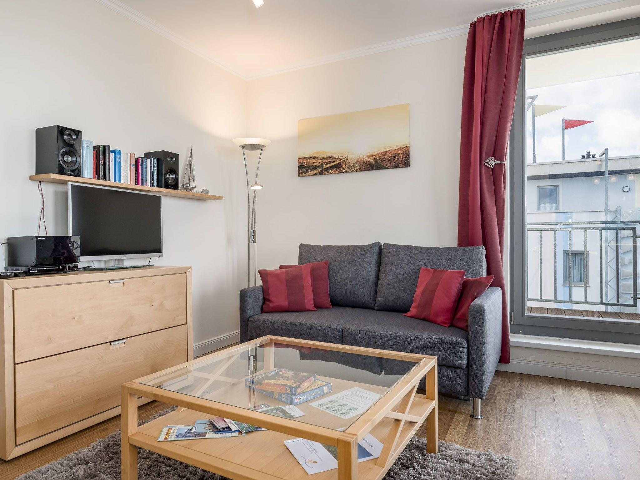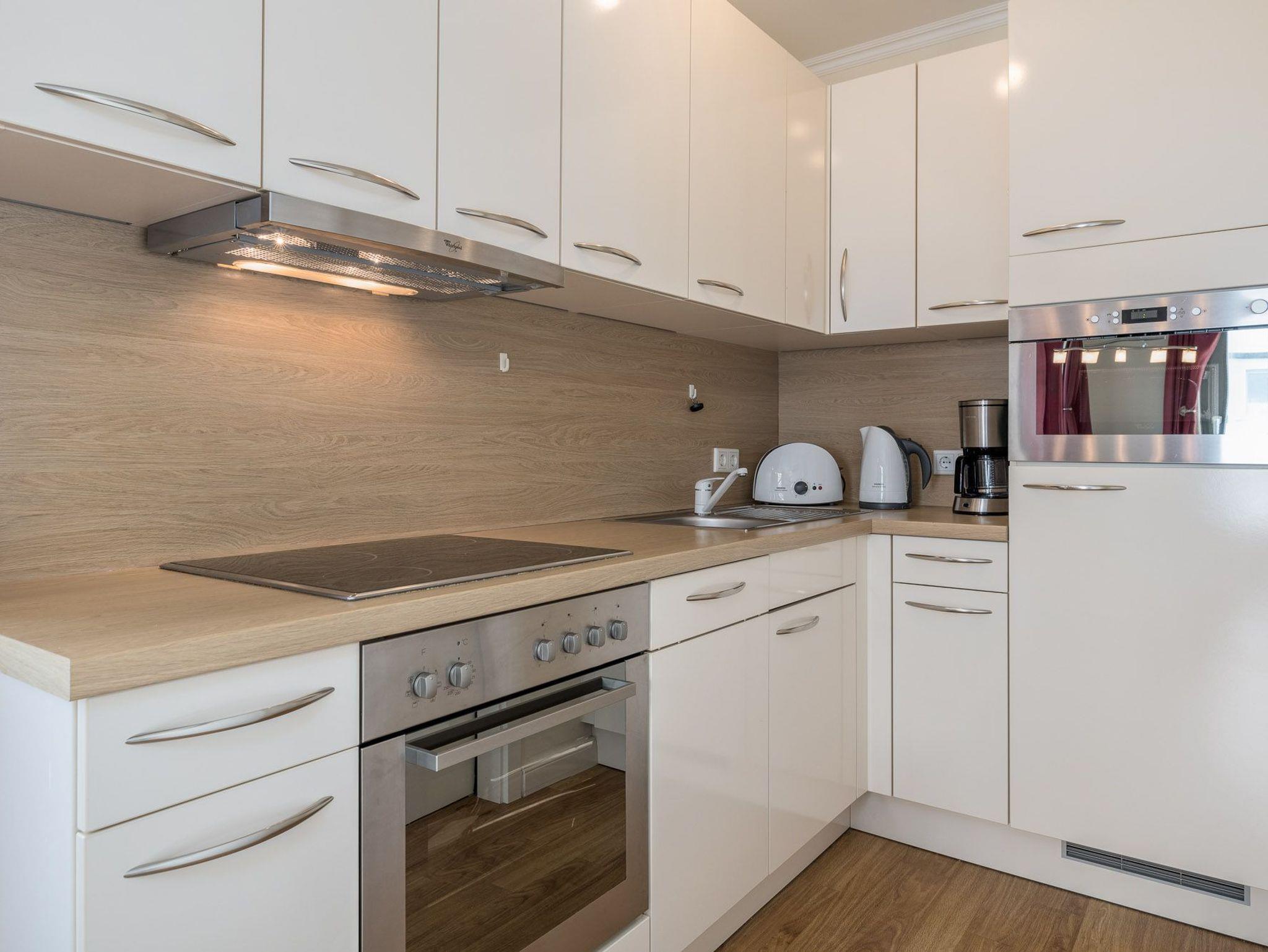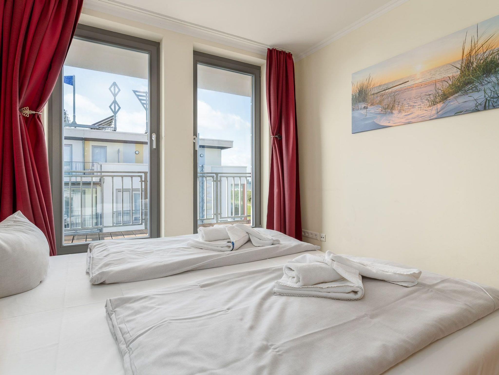 Das Herzstück der Ferienwohnung ist die große Dachterrasse (Balkon) in Nord-West-Ausrichtung, auf welcher Sie die Sonne vom späten Vormittag bis zum Sonnenuntergang verwöhnt. Ein Sitzplatz für vier Personen, ein großer Strandkorb und zwei Sonnenliegen laden zum Verweilen ein. Von hier aus lässt sich das bunte Treiben auf der Promenade ebenso gut beobachten wie die Möwen, die ruhig am Himmelszelt ihre Bahnen ziehen. Das Wohnzimmer ist mit einem ausklappbaren Schlafsofa (Liegefläche 130 x 195 cm), einem TV- Gerät mit DVD-Player und einer Stereo-Anlage für die Unterhaltung ausgerüstet. Ein Esstisch mit vier Stühlen sorgt für genug Platz für Mahlzeiten oder Spielvergnügungen. Hingucker ist der moderne gläserne Gas- Kamin, dessen Flammenspiel zum Entschleunigen beiträgt. Die offene Einbauküche ist sehr gut ausgestattet mit Geschirrspüler, ?Tchibo? Espresso Maschine, Kühlschrank, inklusive Gefrierfach, Kaffeemaschine, Wasserkocher, Toaster und Mikrowelle. Im Schlafzimmer empfängt Sie dann ein gemütliches Doppelbett (einzelne Matratzen 90 x 200 cm) und ein raumhoher Kleiderschrank. Das Duschbad besticht mit einer ebenerdigen Dusche. Ein Haartrockner ist ebenfalls vorhanden. Bügelbrett und Bügeleisen finden Sie bei Bedarf in einem kleinen separaten Abstellraum. Die eingebaute Fußbodenheizung sorgt in allen Räumen für gleichmäßige Wärme. Zur Wohnung gehören zudem ein kostenfreier Tiefgaragenstellplatz und eine Abstellmöglichkeit für Fahrräder. Bitte beachten Sie die Durchfahrtshöhe von max. 1,90 m der Tiefgarage. Mit einem Personenaufzug gelangen Sie von der Tiefgarage aus direkt zu Ihrer Wohnung. Im Erdgeschoss der Wohnung befindet sich ein gekennzeichneter Abstellbereich für Kinderwagen. Hier noch einige Hinweise: Rauchen ist nur auf der Terrasse gestattet. Es sind keine Haustiere erlaubt. Unsere Feriengäste können das WLAN frei zum Streamen von Musik und Filmen nutzen. Wäschesets, Kinderreisebett und Kinderhochstuhl können kostenpflichtig zugebucht werden. Eine Waschmaschine und ein Trockner stehen im separaten Hauswirtschaftsraum im Untergeschoss der Villa zu Ihrer Verfügung (gegen Gebühr /1,00 Euro Münzen). Für die dritte und vierte Person (ab 3 Jahre) wird ein Aufpreis in Höhe von 10,00 Euro/ÜN pro Person berechnet. Sichern Sie sich einen der begehrten Strandkörbe nur ein paar Meter entfernt von den rauschenden Wellen der Ostsee (Anfang Mai - Ende August) und buchen Sie jetzt zu besonderen Konditionen (12,00 Euro pro Tag oder 75,00 Euro pro Woche).