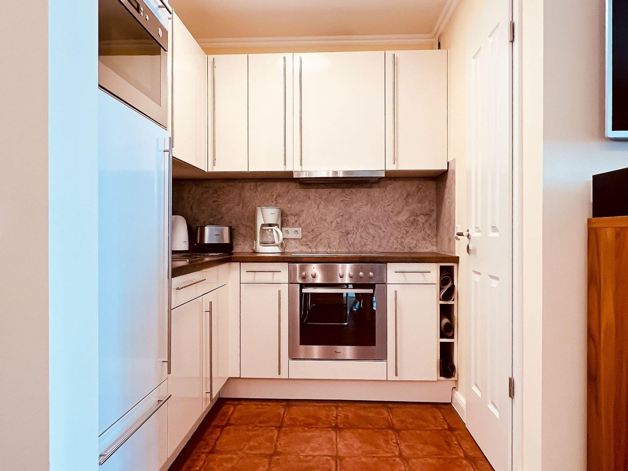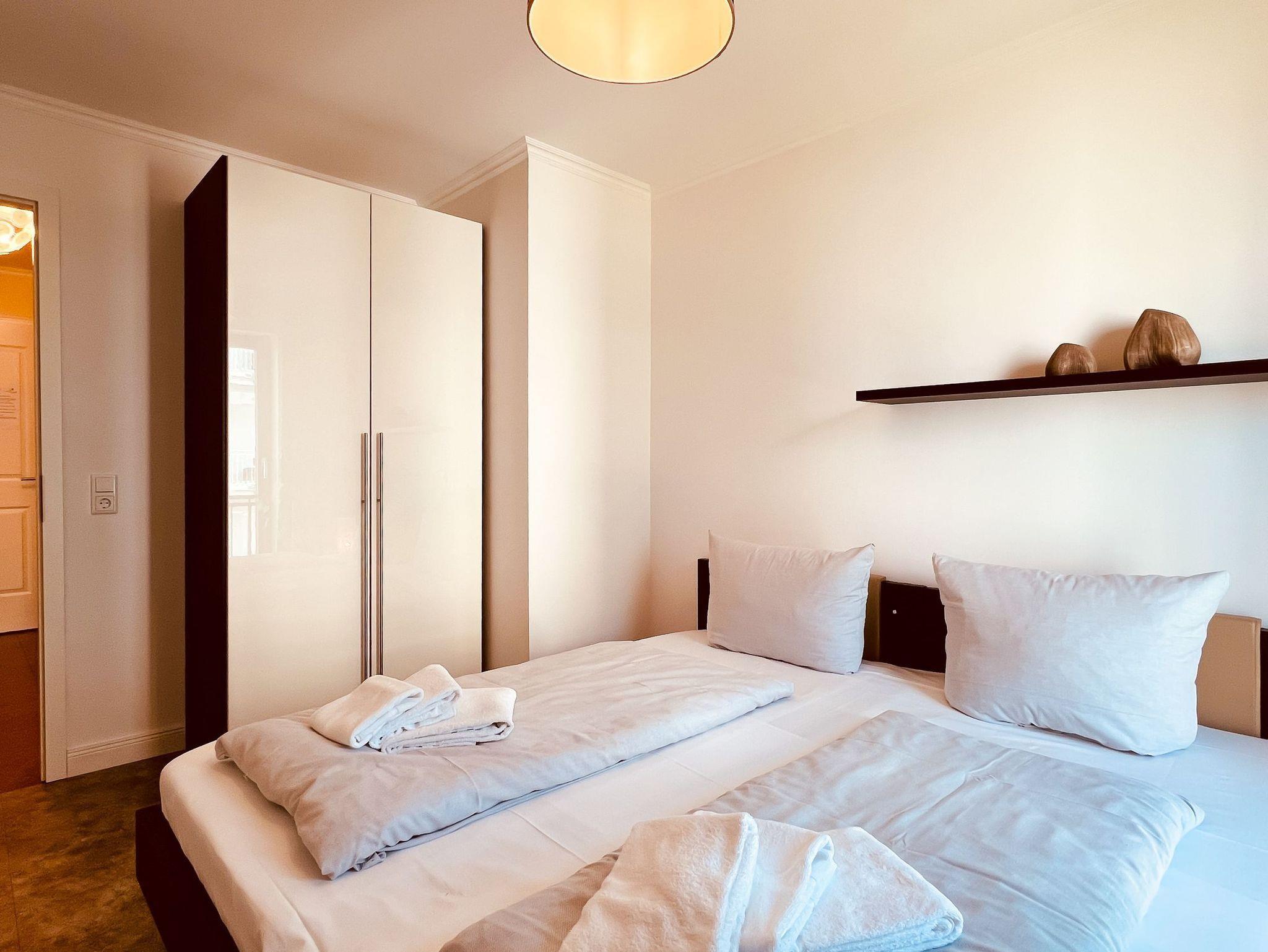 Der kombinierte Wohn-/ Essbereich besticht mit einer gemütlichen Leder-Schlafcouch und einem stimmungsvollen Gas- Kamin. Ein großzügiger Esstisch mit Stühlen lädt zu gemeinsamen Mahlzeiten und Spieleabenden ein. Für die mediale Unterhaltung stehen ein TV- Gerät und ein Radio für Sie bereit. In der offenen Einbauküche haben Sie alles, was zum Zubereiten von vollwertigen Mahlzeiten notwendig ist. Einen Geschirrspüler, Kühlschrank, inklusive Gefrierfach, Kaffeemaschine, Wasserkocher, Toaster, Mikrowelle und diverse Kochgeräte. Mit einem großen Doppelbett (getrennte Matratzen) und einem hohen Kleiderschrank empfängt Sie einer der Schlafräume. Das zweite Schlafzimmer ist mit zwei Einzelbetten (als Doppelbett hergerichtet/ getrennte Matratzen) und ebenfalls einem hohen Kleiderschrank eingerichtet. Das Badezimmer besticht mit einer ebenerdigen Dusche. Angrenzend befindet sich noch ein separates Gäste-WC. Auf den charmanten Eckbalkon (Süd-West-Ausrichtung) gelangen Sie durch den Wohnbereich. Von hier aus können Sie einen Blick auf die blaue Ostsee werfen. In allen Räumen sorgt eine Fußbodenheizung für gemütliche Wärme. In der Wohnung sorgt eine zusätzliche Abstellgelegenheit für reichlich Stauraum. Zur Wohnung gehören zudem ein kostenfreier Tiefgaragenstellplatz und eine Abstellmöglichkeit für Fahrräder. Bitte beachten Sie die Durchfahrtshöhe von max. 1,90 m der Tiefgarage. Mit einem Personenaufzug gelangen Sie von der Tiefgarage aus direkt zu Ihrer Wohnung. Im Erdgeschoss der Wohnung befindet sich ein gekennzeichneter Abstellbereich für Kinderwagen. Hier noch einige Hinweise: Es handelt sich um eine Nichtraucherwohnung. Haustiere sind nicht gestattet. Wäschesets, Kinderreisebett und Kinderhochstuhl können kostenpflichtig zugebucht werden. Eine Waschmaschine und ein Trockner stehen im separaten Hauswirtschaftsraum im Untergeschoss der Villa zu Ihrer Verfügung (gegen Gebühr / 1,00 € Münzen). Sichern Sie sich einen der begehrten Strandkörbe nur ein paar Meter entfernt von den rauschenden Wellen der Ostsee (Anfang Mai - Ende August) und buchen Sie jetzt zu besonderen Konditionen (12,00 € pro Tag oder 75,00 € pro Woche.)