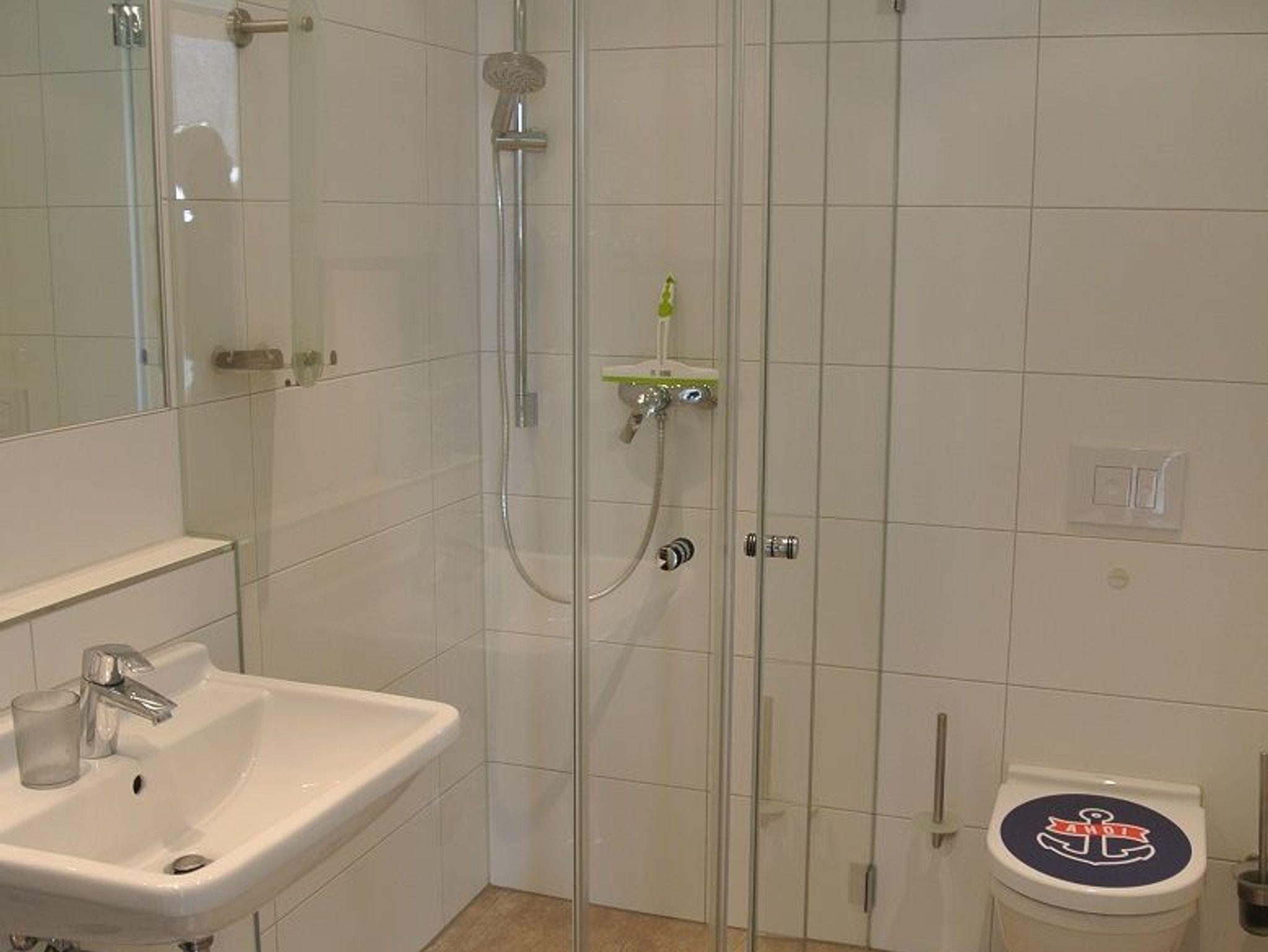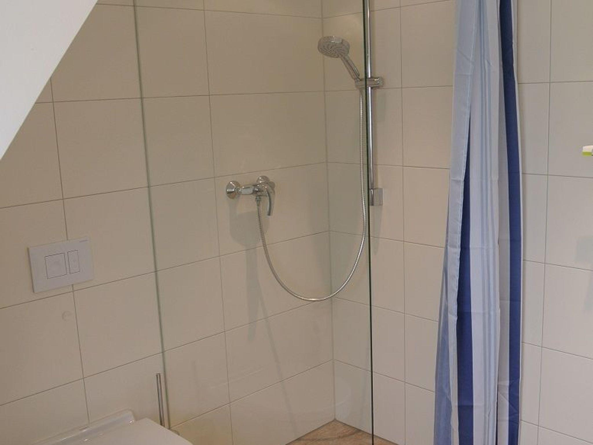 Im Erdgeschoss befindet sich das erste Bad inkl. Dusche, Fön und Handtuchtrockner.