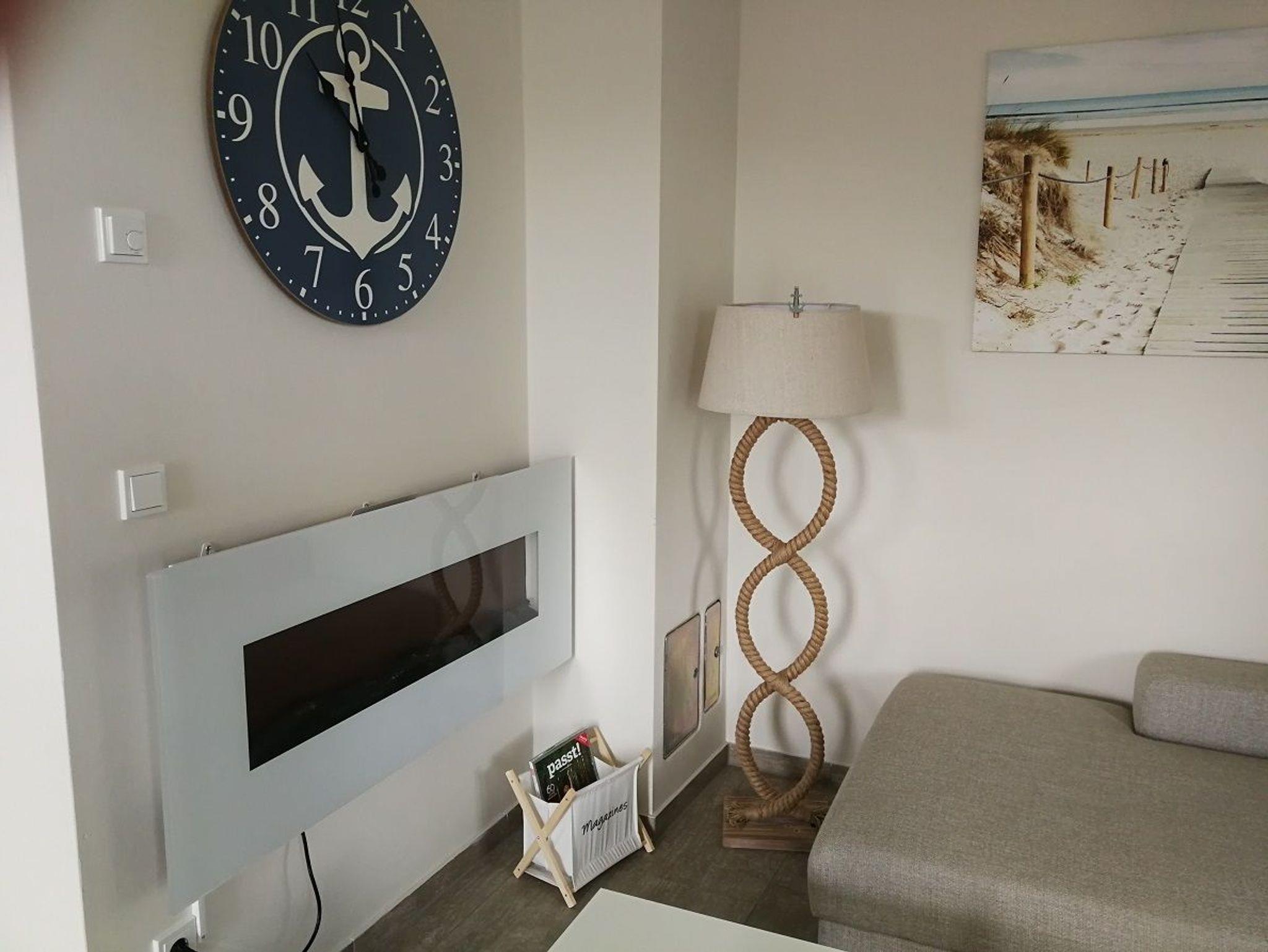 Die gemütliche Couchecke im Wohnbereich eignet sich ideal zum Relaxen nach einem ausgedehnten Strandspaziergang. Die modernen Elektronikgeräte wie Flat-TV, Radio oder ein Spieleabend mit der Familie sorgen dafür, dass man die Zeit um sich schnell vergisst. Zusätzliche Gemütlichkeit verspricht der wunderschöne Elektrokamin.