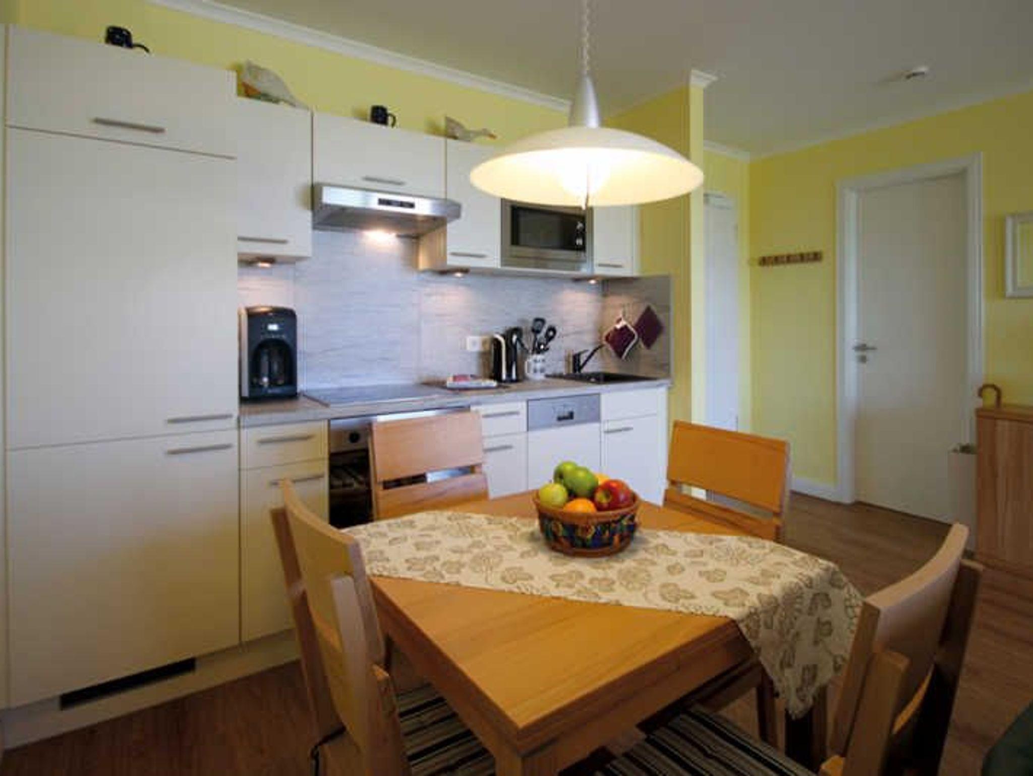 Der Wohn-/ Essbereich empfängt Sie mit einer gemütlichen Sitzecke. Die ausziehbare Polstergarnitur bietet eine zusätzliche Liegefläche (1,50 x 1,90 m). Der Esstisch ist bei Bedarf ebenfalls ausziehbar und mit vier Stühlen bestückt worden. Für die Unterhaltung stehen hier ein TV- Gerät und ein Radio zur Verfügung. Die offene Einbauküche ist neben der Standardbestückung mit Geschirrspüler, Kühlschrank, inklusive Gefrierfach, Glaskeramik-Kochfeld, Backofen und Mikrowelle ausgestattet. Das Schlafzimmer verfügt über ein gemütliches Doppelbett und einen großen Kleiderschrank. Ein separater Abstellraum bietet weiteren Stauraum für Ihre mitgebrachte Urlaubskleidung. Im Duschbad finden Sie dann eine bodengleiche Dusche, einen Föhn und Handtuchtrockner vor. Auf den Balkon gelangen Sie über den Wohnbereich. Der Balkon ist in Nord-Ost-Ausrichtung mit Blick zum nahegelegenen Deich angelegt worden. Der Strand liegt nur 50 m entfernt. Zu Ihrer Ferienwohnung gehört ein kostenfreier Tiefgaragenstellplatz. Bitte beachten Sie die Durchfahrtshöhe von max. 1,90 m. Der im Gebäude installierte Aufzug erleichtert den Transport der mitgebrachten Koffer. Im Eingangsbereich der Villabefindet sich ein abschließbarer Fahrradraum sowie der angrenzende Waschraum. Eine Waschmaschine und ein Trockner stehen zu Ihrer Verfügung (gegen Gebühr / 1,00 € Münzen). Das kostenfreie WLAN in der Unterkunft ist ausschließlich für die Verwendung von Social Media und den Austausch von Bildern mit Familie und Freunden gedacht. Die Nutzung zum Streamen von Filmen ist nicht vorgesehen. Eine Fußbodenheizung sorgt auch an kalten Tagen für angenehme Wärme in allen Räumen. Noch einige Hinweise: Es handelt sich um eine Nichtraucherwohnung. Haustiere sind nicht gestattet. Für die dritte und vierte Person (ab 3 Jahre) wird ein Aufpreis in Höhe von 10,00 €/ÜN pro Person berechnet. Wäschesets, Kinderreisebett und Kinderhochstuhl können mit Aufpreis separat gebucht werden. Sichern Sie sich einen der begehrten Strandkörbe nur ein paar Meter entfernt von den rauschenden Wellen der Ostsee (Anfang Mai - Ende August) und buchen Sie jetzt zu besonderen Konditionen (12,00 € pro Tag oder 75,00 € pro Woche).[nbsp]