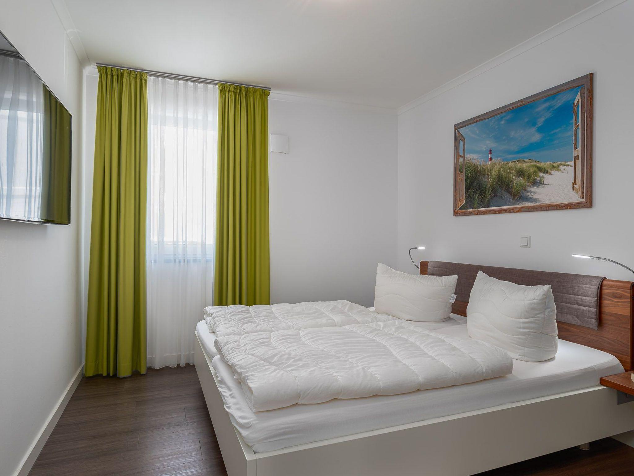 Die liebevoll eingerichtete Wohnung ist bestens ausgestattet. Sogar an Bücher und Spiele wurde gedacht. Der KÜCHENBEREICH verfügt über eine geräumige Kühl- und Gefrierkombination (160 l / 57 l). Eine Nespresso Maschine ist ebenso vorhanden wie ein Milchaufschäumer. Abgerundet wird die Küche neben einem Backofen und leisem Geschirrspüler durch ein Cerankochfeld mit passender Dunstabzugshaube. Zum Essen lädt Sie neben der ansprechenden Möblierung der Terrasse auch der große Esstisch (1,80 m x 1,00 m) im WOHNBEREICH ein. Dieser eignet sich hervorragend, um den Abend im Kreise der Familie mit Gesellschaftsspielen ausklingen zu lassen. Harmonisch abgestimmt wird der Wohnbereich durch eine hochwertige Eck-Couch mit Hocker, so dass alle Urlaubsgäste unserer Ferienwohnung Schilfgras einen gemütlichen Platz finden. Der 50 Smart TV ist ferner mit Apple TV ausgestattet und bietet die Möglichkeit, Multimedia-Angebote aus dem Internet mittels Ihres Accounts oder iPhone/ iPad zu nutzen. Via Screen Share können Multimedia PC Inhalte auf den TV projiziert werden. Zudem steht Ihnen eine Soundanlage mit CD-Player zur Verfügung, welche Sie auch per Bluetooth mit Ihrem Endgerät verbinden können. Im ERSTEN SCHLAFZIMMER finden Sie ein komfortables Doppelbett (180 cm x 200 cm/ zwei 7-Zonen-Matratzen) mit integrierten Leselampen sowie einen geräumigen viertürigen Kleiderschrank. Auch hier steht Ihnen ein 50 Smart-TV zur Verfügung. Das ZWEITE SCHLAFZIMMER ist mit Bedacht auf die jüngeren Familienmitglieder mit einer hochwertigen Schlafcouch (integrierter Matratze 150 cm x 200 cm inkl. Lattenrost) so eingerichtet, dass auch hier die Möglichkeit besteht, genügend Platz zum Spielen und Chillen zu finden. Im Siteboard ist zusätzlicher Stauraum vorhanden. Des Weiteren ist hier ebenfalls ein 32 Smart-TV vorhanden. Das BAD MIT FENSTER ist mit einer ebenerdigen Regenwalddusche, einem beleuchten großen Wandspiegel und Waschtisch ausgestattet. Weiterhin gibt es eine ABSTELLKAMMER. Die Wohnung verfügt über eine Fußbodenheizung sowie eine kontrollierte Wohnraumlüftung. Zur Ferienwohnung Schilfgras gehören Fahrradständer direkt vor dem Haus und ein KOSTENFREIER PKW-AUSSENSTELLPLATZ. HINWEISE: Das kostenfreie WLAN in der Unterkunft ist ausschließlich für die Verwendung von Social Media und den Austausch von Bildern mit Familie und Freunden gedacht. Die Nutzung zum Streamen von Filmen ist nicht vorgesehen. Die Wohnung ist eine Nichtraucherwohnung. Es sind KEINE HAUSTIERE erlaubt. Wäscheset, Kinderreisebett und Kinderhochstuhl können kostenpflichtig zugebucht werden. Sichern Sie sich einen der begehrten STRANDKÖRBE (Anfang Mai-Ende August) und buchen Sie jetzt zu besonderen Konditionen (12,00 pro Tag oder 75,00 pro Woche).