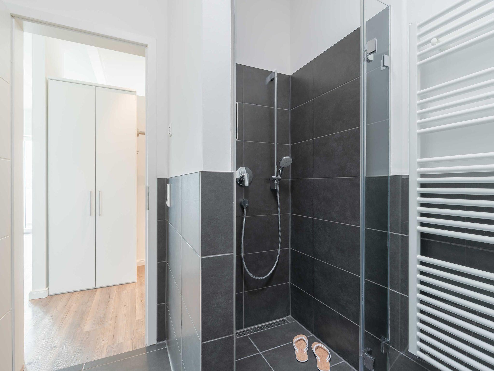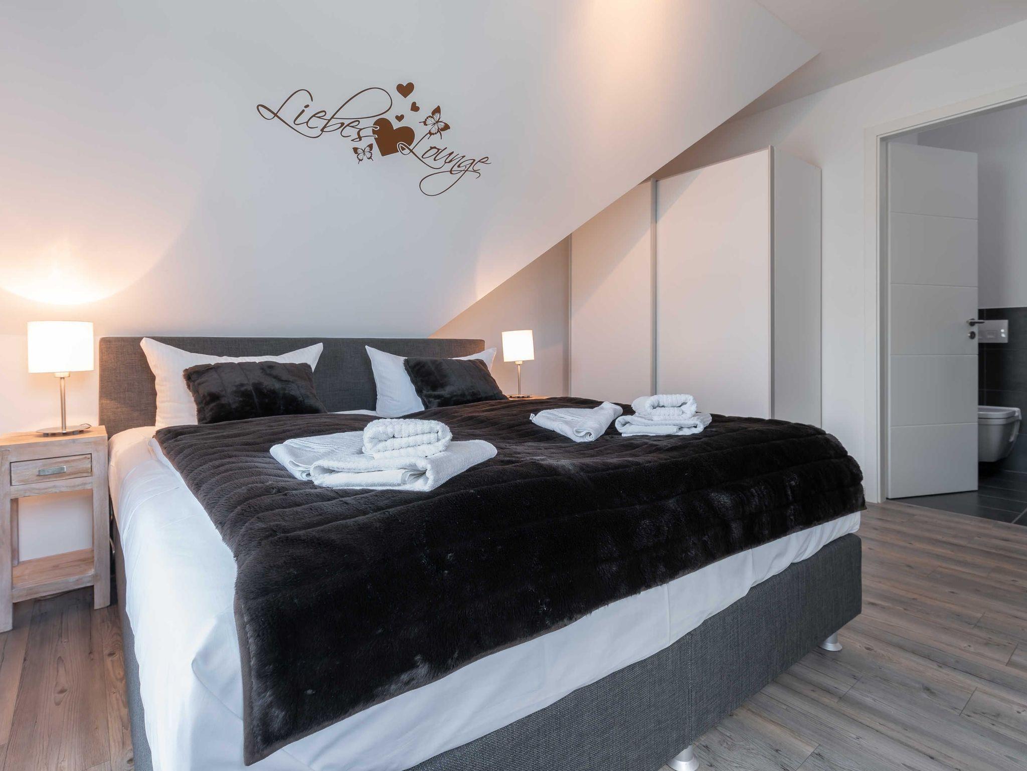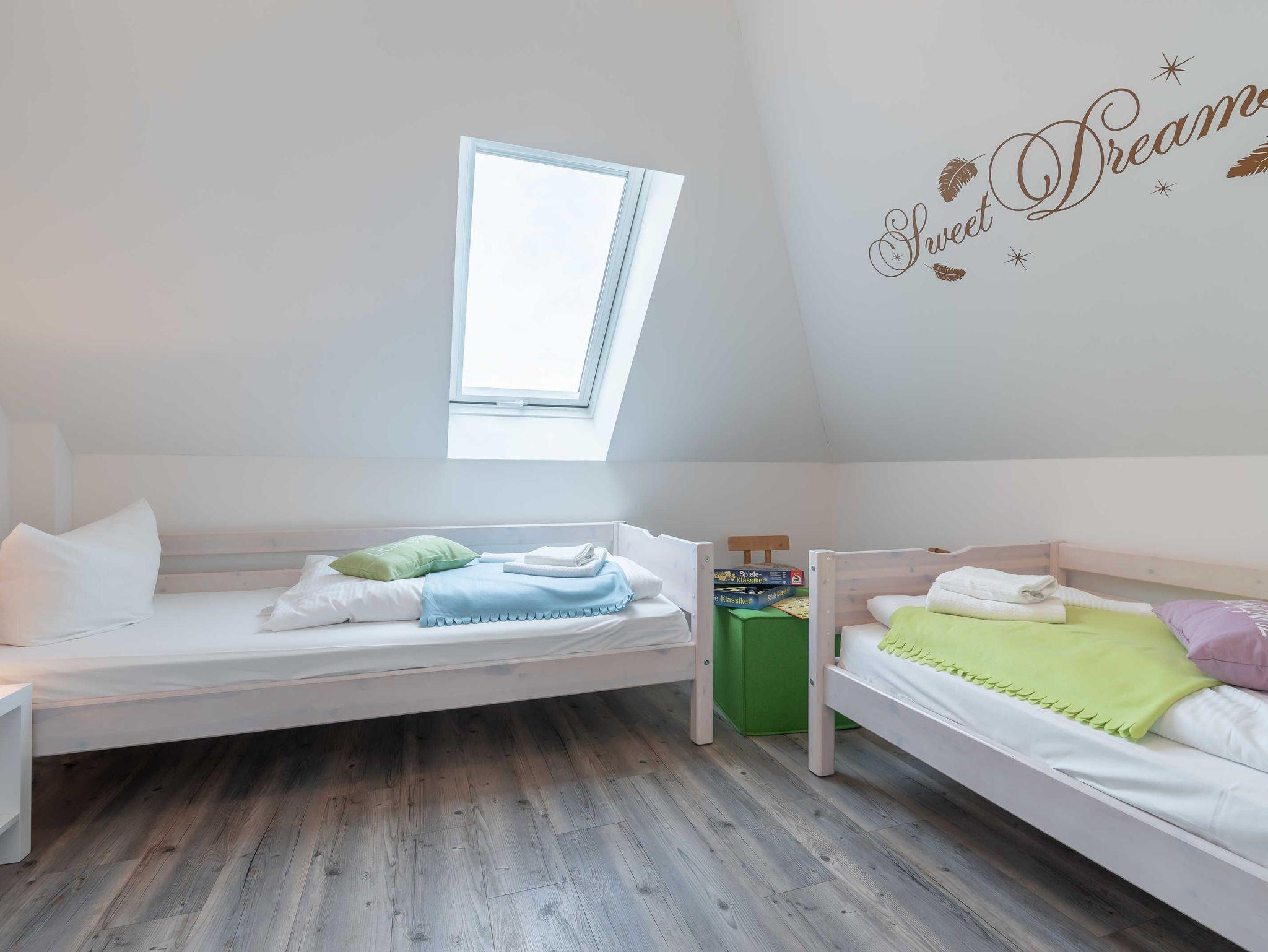 Die modern und großzügig eingerichtete sonnige 3-Zimmer-Wohnung befindet sich im Dachgeschoss der Residenz Seestern. Im Wohnraum finden Sie eine zweiteilige hochwertige Couchgarnitur zum Relaxen. Zur Unterhaltung stehen Ihnen ein großer Flachbild TV, eine Hifi Anlage bluetoothfähig, einem BluRay-Player sowie DVD´s, CD´s und eine Spielesammlung zur Verfügung. Der offene Essbereich verfügt über einen großen Tisch mit vier Stühlen. Die separate großzügige Küche ist mit einer modernen Einbauküche mit Geschirrspüler, Kühlschrank mit Gefrierfach, Backofen mit Cerankochfeld und Mikrowelle ausgestattet. Neben Kaffeemaschine, Wasserkocher und Toaster ist auch eine Tchibo - Cafissimo Kapselmaschine vorhanden. Das modern eingerichtete Schlafzimmer mit dem großzügigen Boxspringbett (2,00 m x 1,80 m) verfügt ebenso über einen große Flachbild TV, einen geräumigen Schrank und eine Kommode. Sie haben direkten Zugang zum großzügigen Duschbad. Im zweiten Schlafzimmer stehen zwei Einzelbetten (2,00 m x 0,90 m) sowie ein kleiner Schrank. Das zweite Duschbad ist vom Flur aus zu betreten. Beide Duschbäder haben eine bodengleiche Dusche und einen großen Waschtisch mit Spiegel. Es gibt außerdem eine große Abstellkammer für Koffer und Taschen. Der große Süd-Balkon lädt zum Verweilen ein. Es erwartet Sie ein großer Esstisch mit vier Stühlen und Lounge-Möbeln zum Relaxen. Von beiden Balkonen können Sie den weiten Blick auf das Meer genießen.